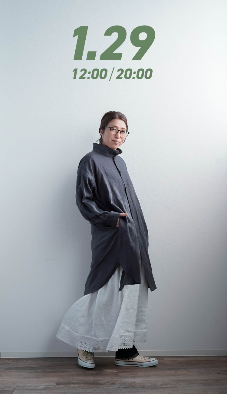 1/29.12時~受注開始!【リネンドレス】結べば凛と、垂らせばラフに。スキッパー ワンピース / 空五倍子色(うつぶしいろ) a029c-ubs1