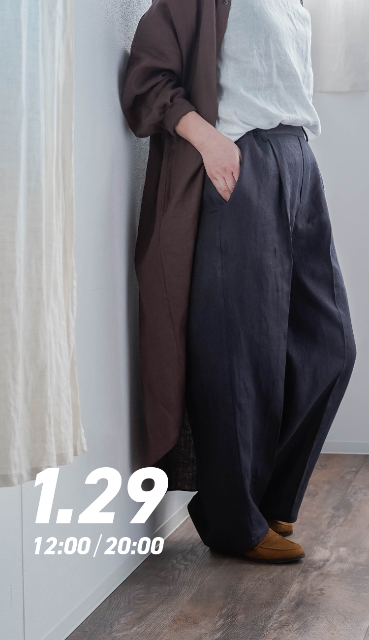 1/29.12時~受注開始!【プレミアム】リネンパンツ ストンと一直線に落ちる、大人のためのプレミアム ワイドパンツ / ショードロンプラス b019f-cdn3