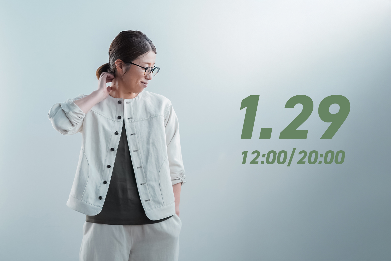 1/29.12時~受注再開!【リネンデニムジャケット】凛とした存在感をまとう ノーカラージャケット / ナチュラル h028b-ntn2