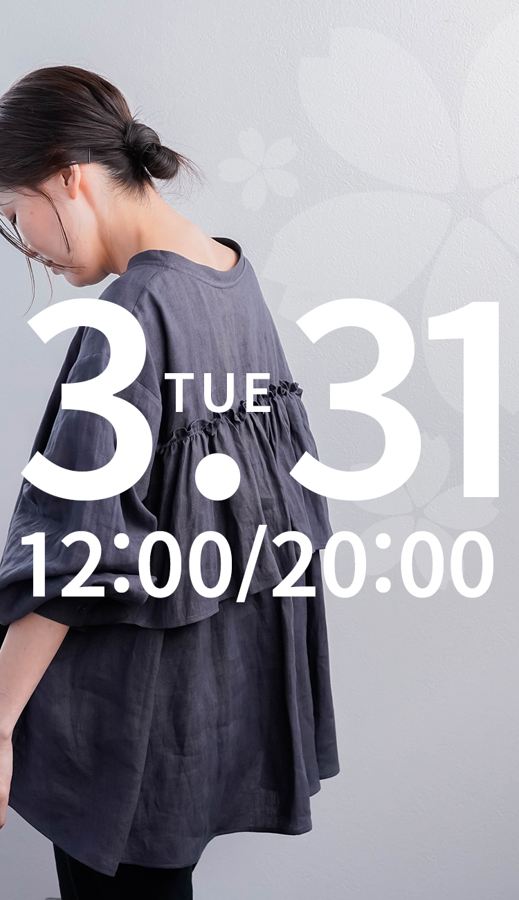 3/31.12時~受注開始!【リネントップス】やみつきになる快適さ。袖くしゅリネントップス / 灰桜 t002u-hzk1