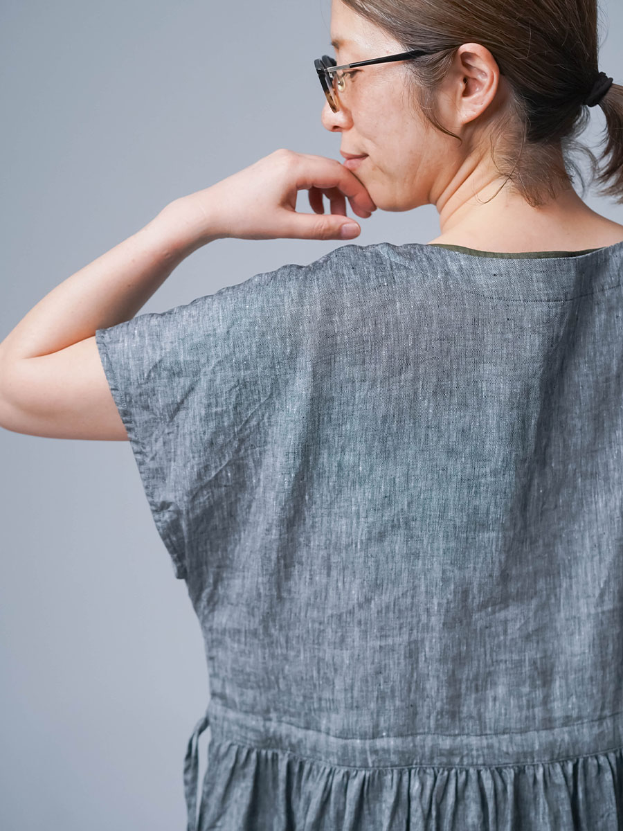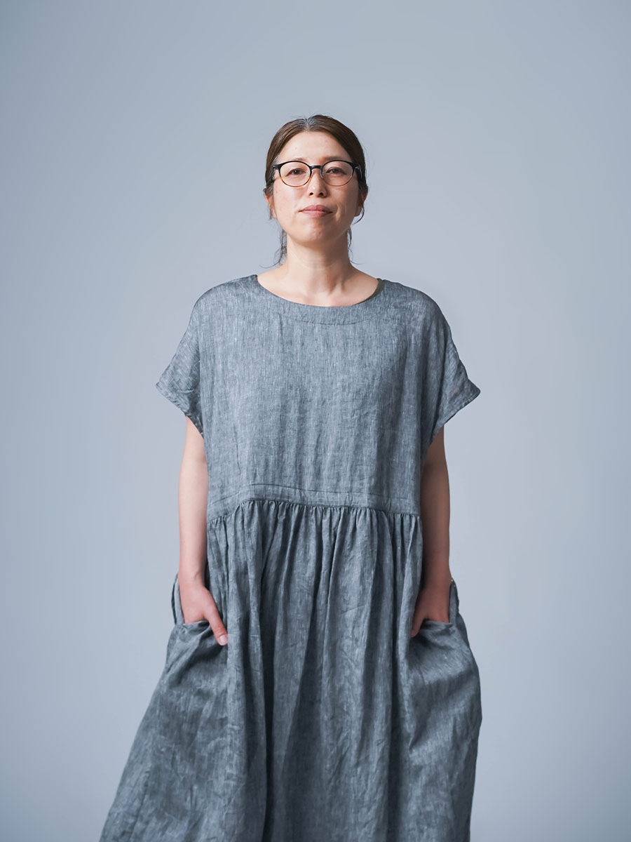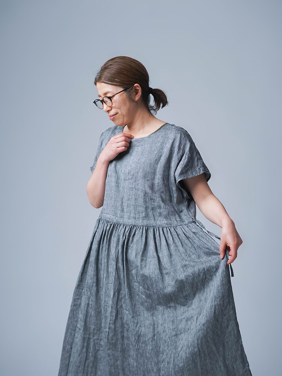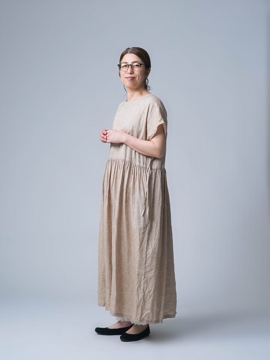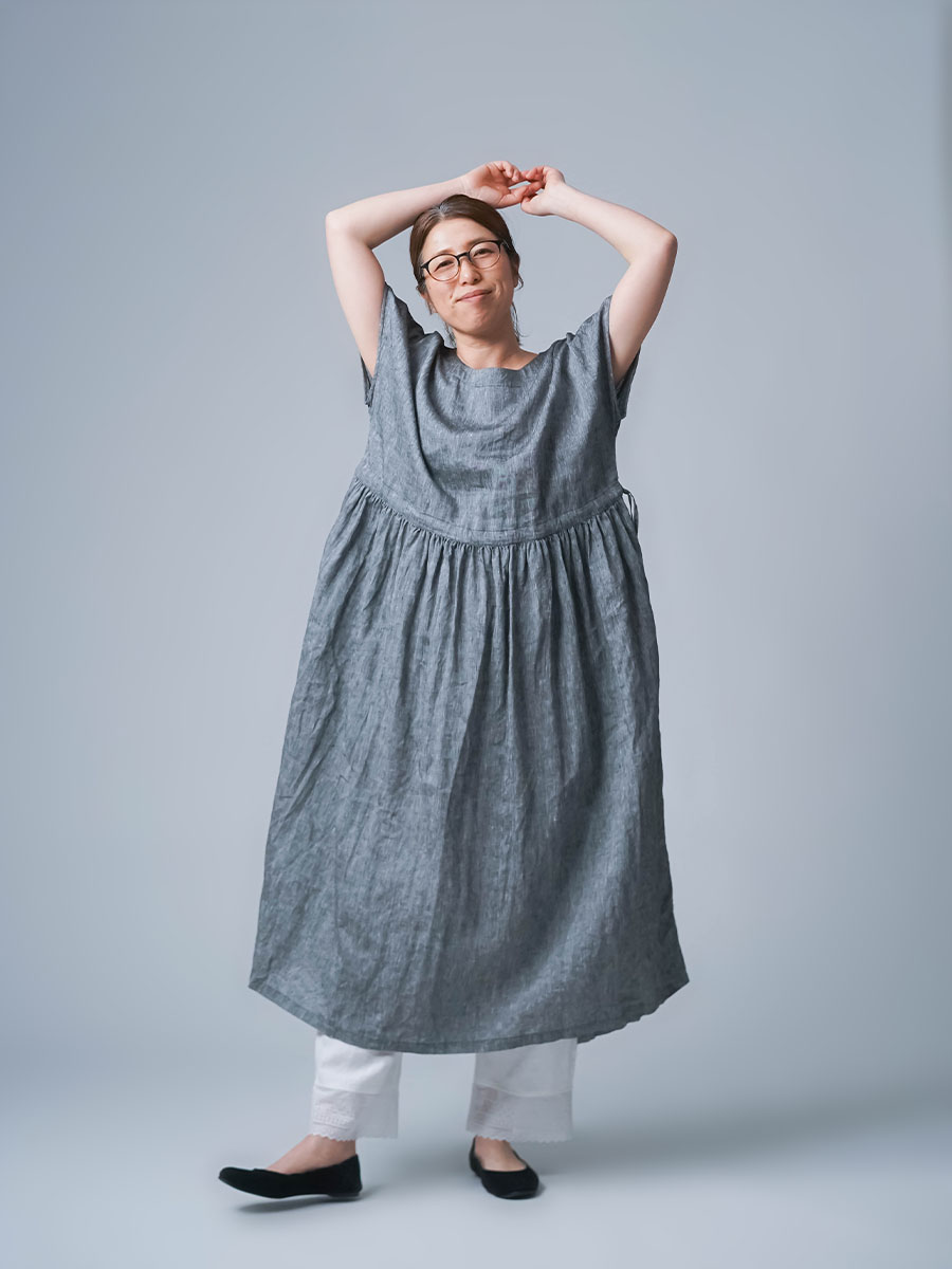 さらに、切り替えから入ったギャザーが、シルエットにやわらかな動きをつくります。