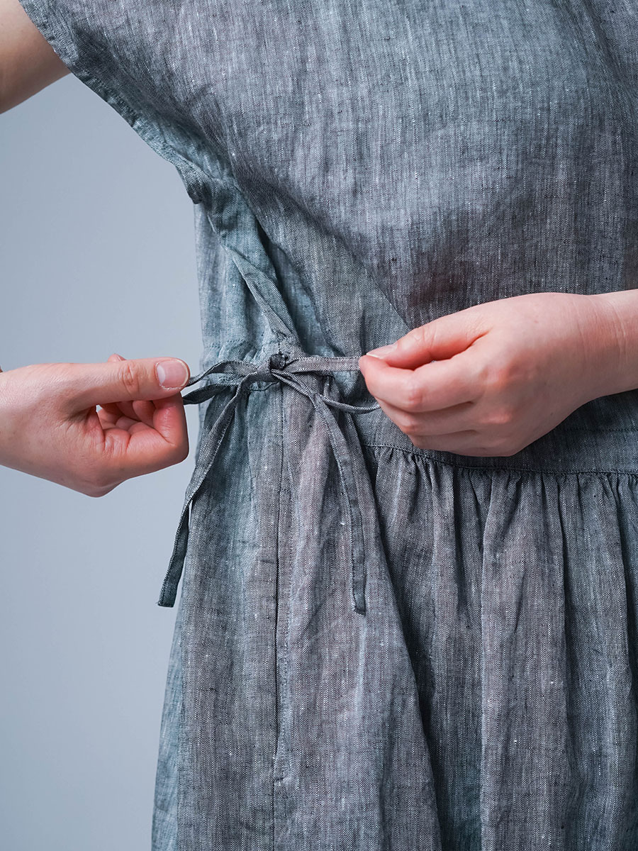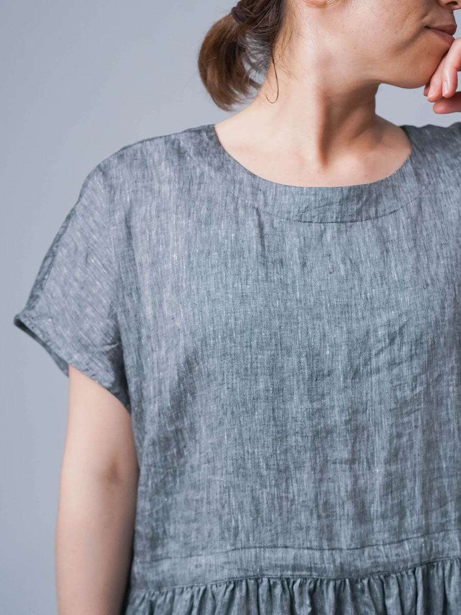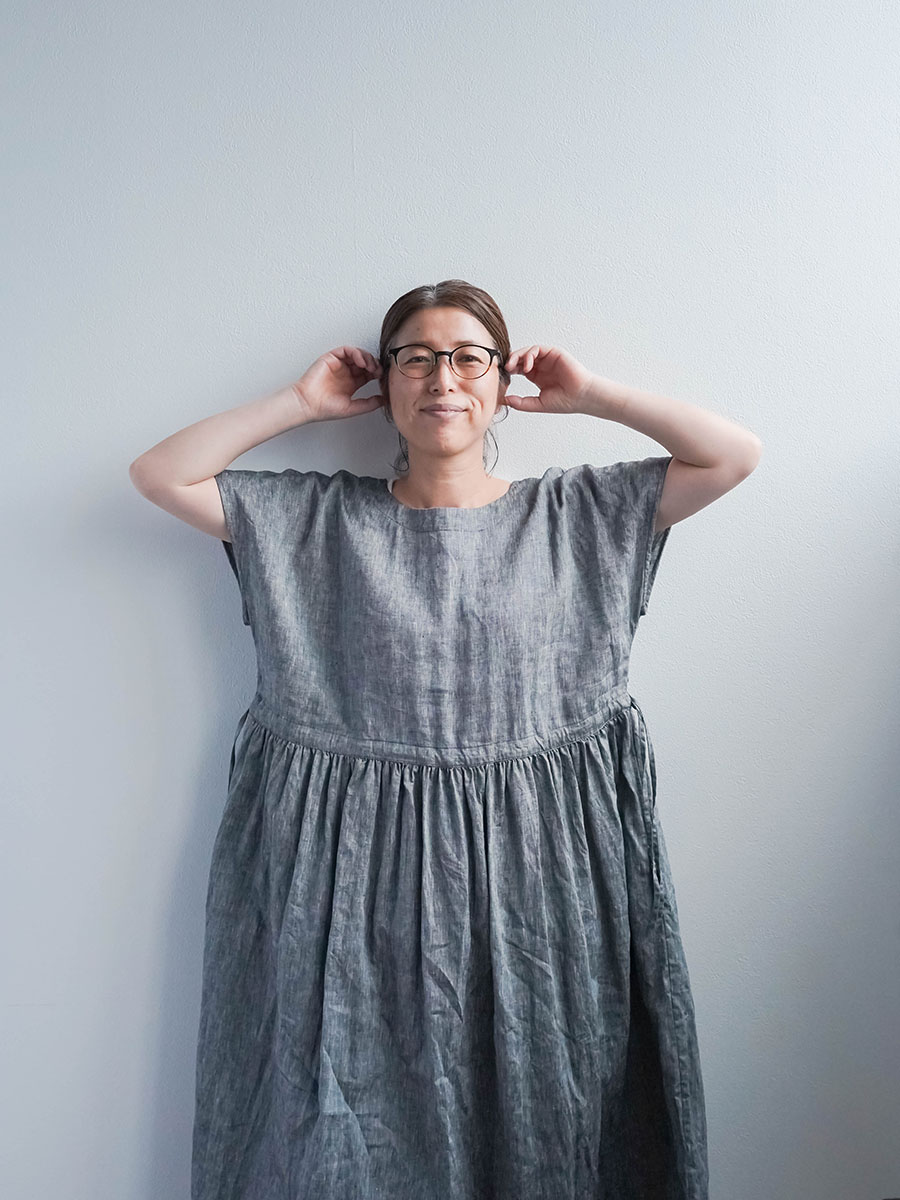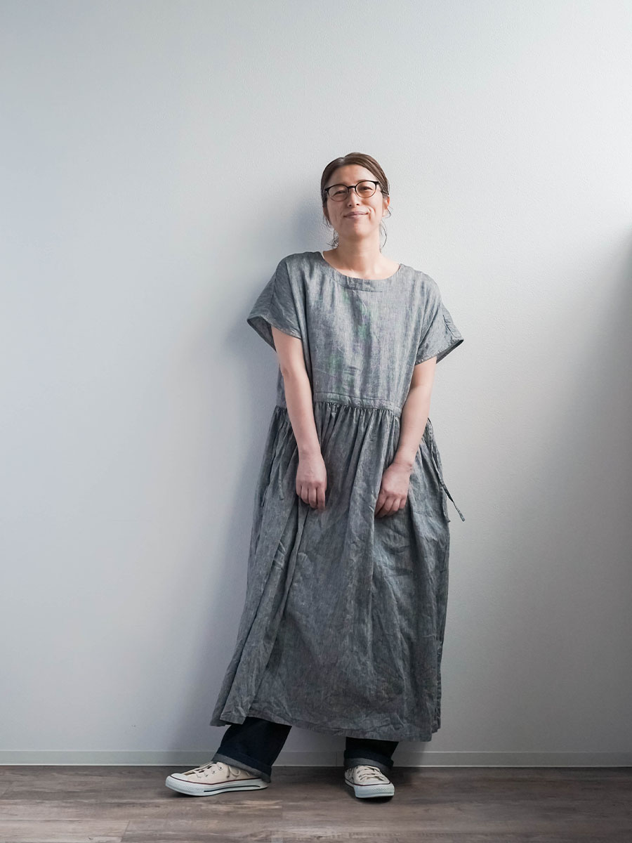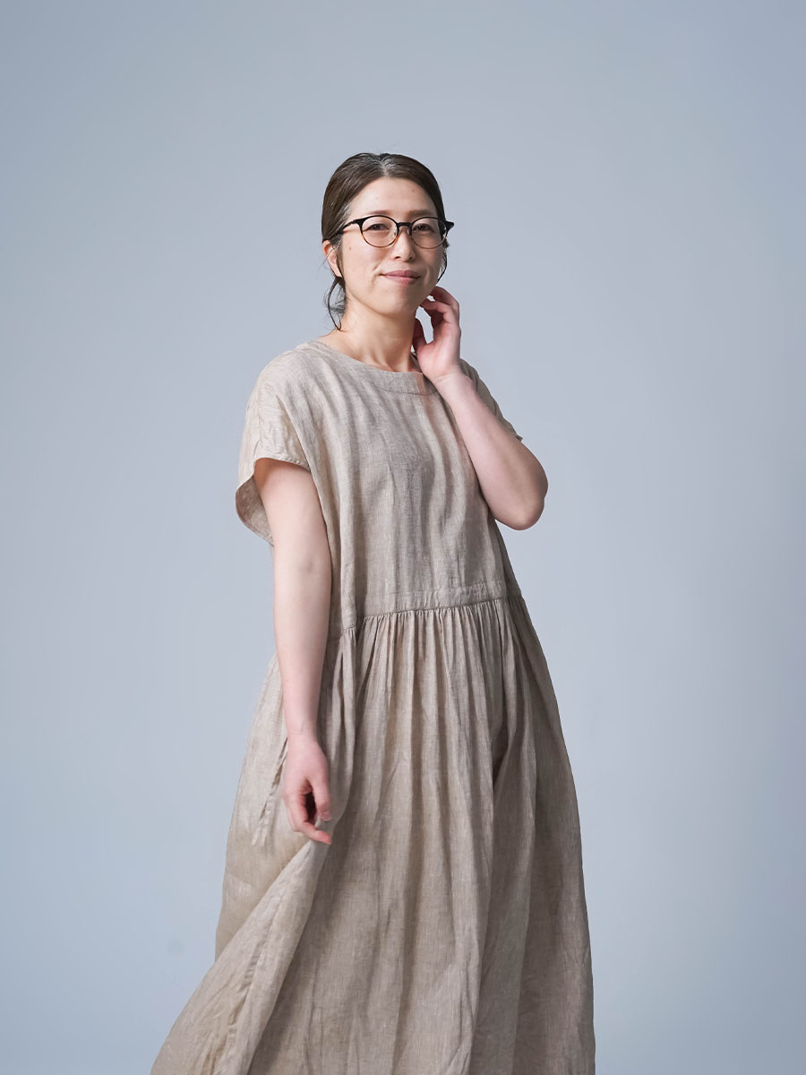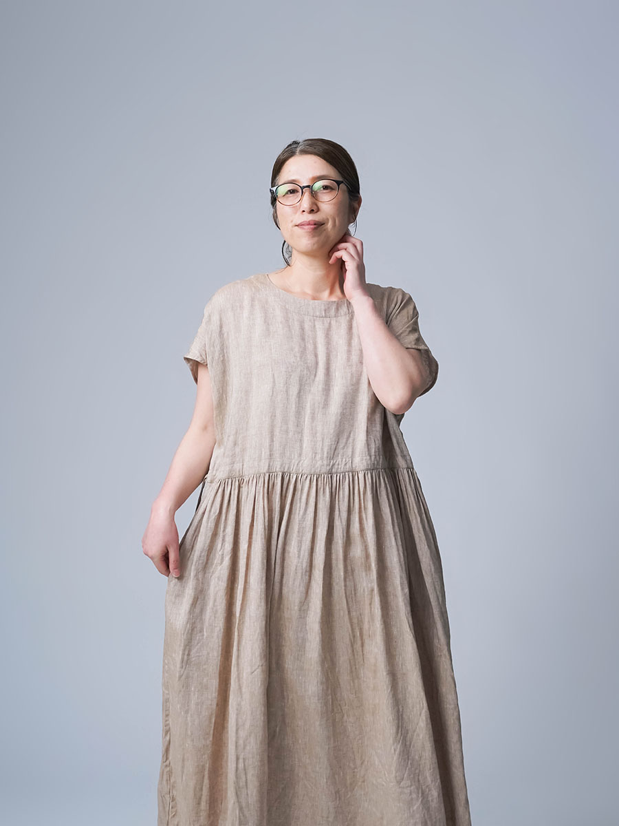 さらに、切り替えから入ったギャザーが、シルエットにやわらかな動きをつくります。
