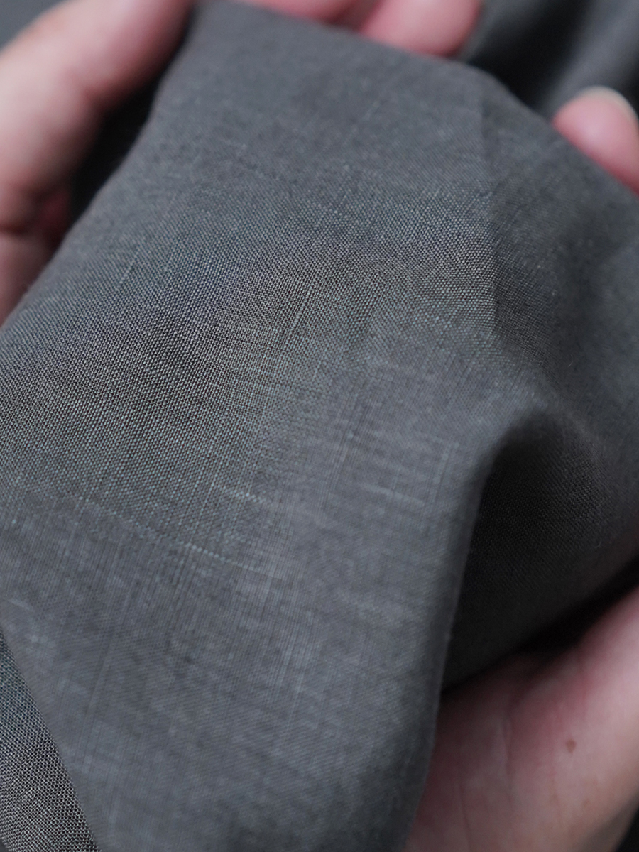 - ※生地工場の生産時期によって色味の濃淡が出ることがございます。セットアップでの着用の場合はご相談下さい。カラーリネンは最初色落ちや生地の性質上、毛羽落ちがある場合がございます。落ち着くまで数回は単品でのお洗濯を。最初は水通しをおすすめします。表面の毛羽立ちがとれて、肌への刺激が極端に少なくなります。リネン特有のネップ、節がございます。