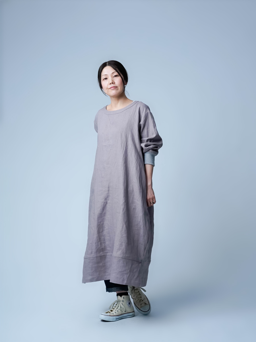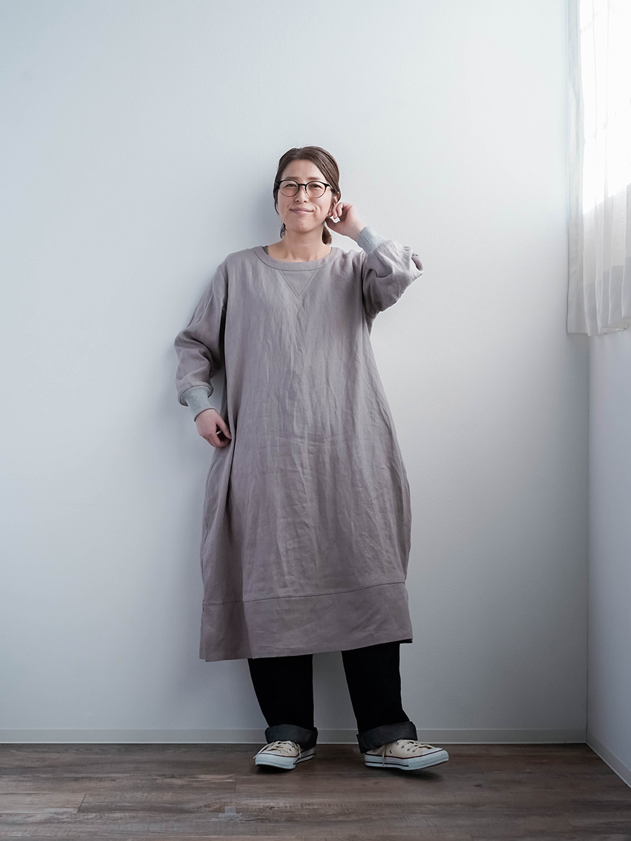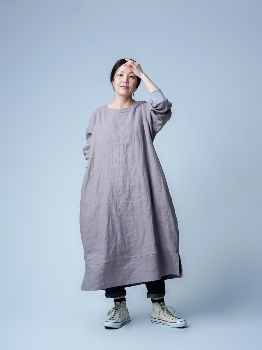 中厚地で仕立てた、スウェット型ワンピース。