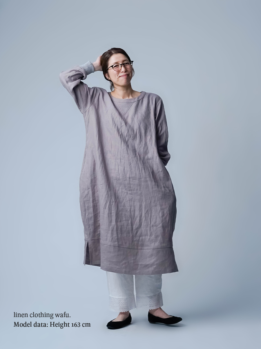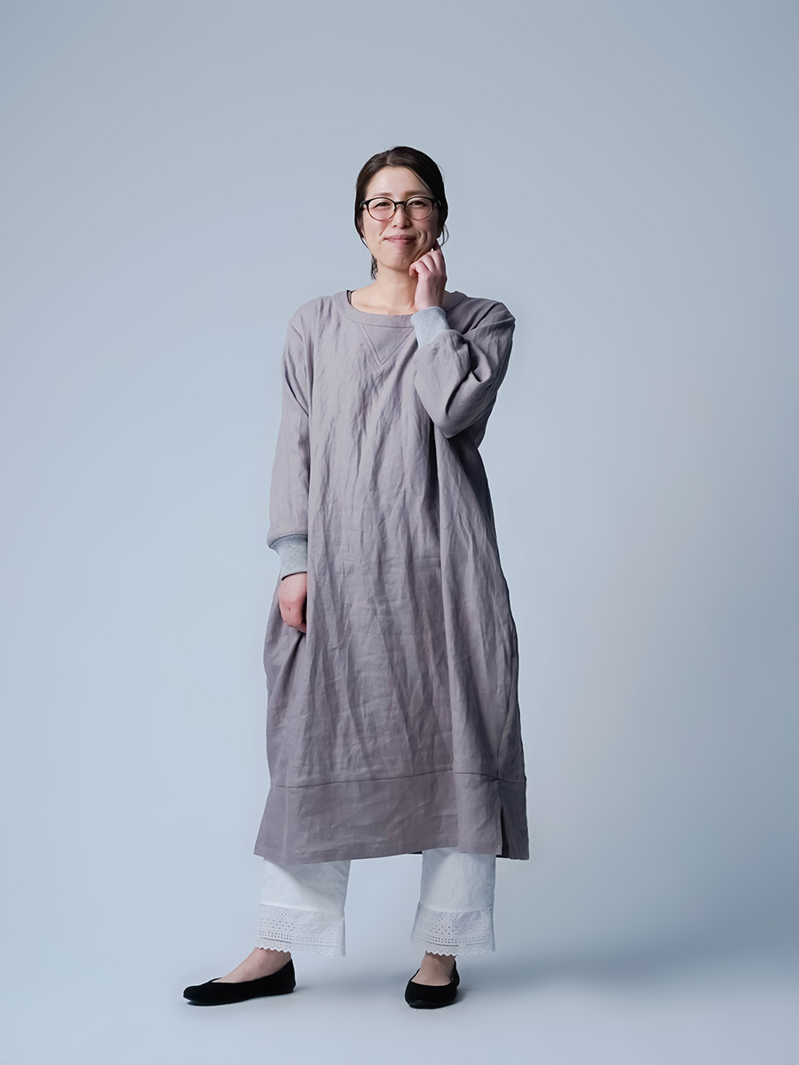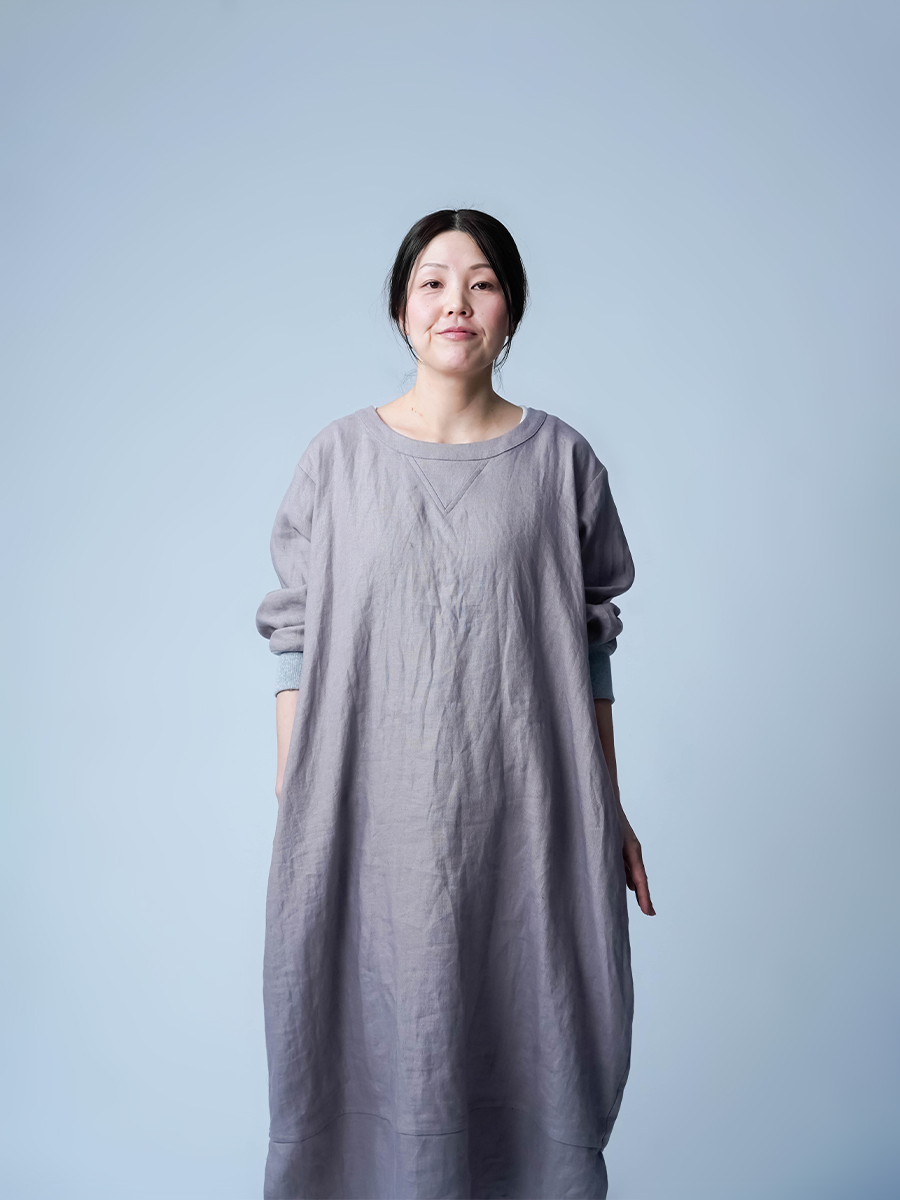 中厚地で仕立てた、スウェット型ワンピース。