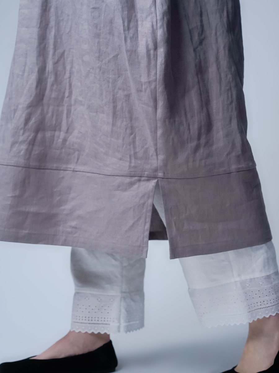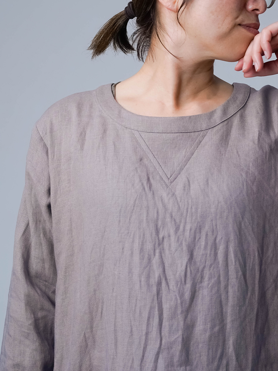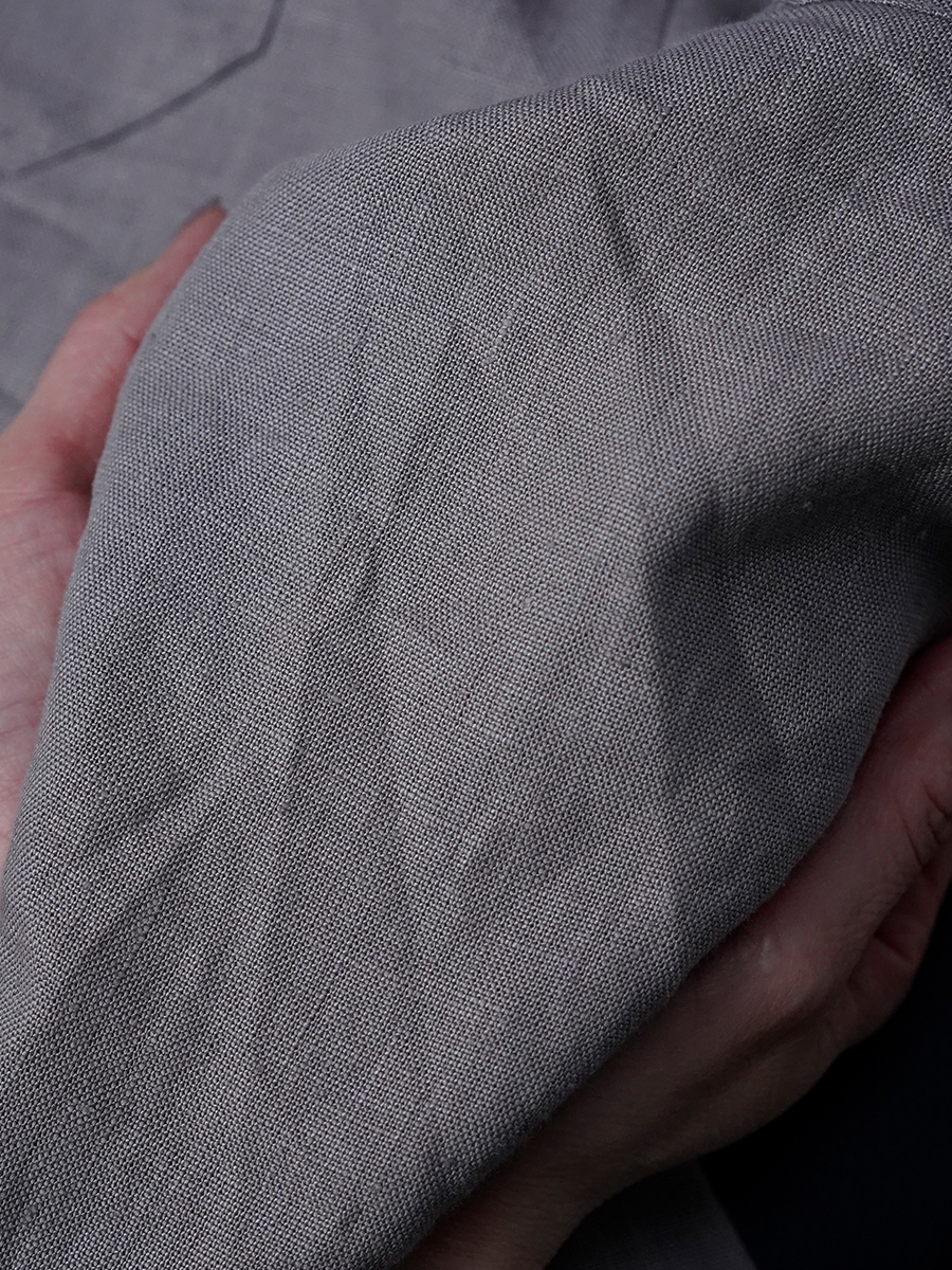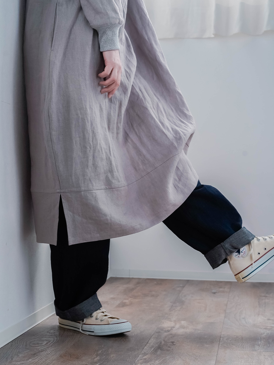 - ※生地工場の生産時期によって色味の濃淡が出ることがございます。セットアップでの着用の場合はご相談下さい。カラーリネンは最初色落ちや生地の性質上、毛羽落ちがある場合がございます。落ち着くまで数回は単品でのお洗濯を。最初は水通しをおすすめします。表面の毛羽立ちがとれて、肌への刺激が極端に少なくなります。リネン特有のネップ、節がございます。