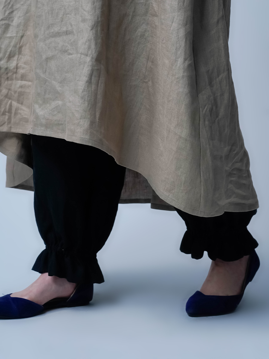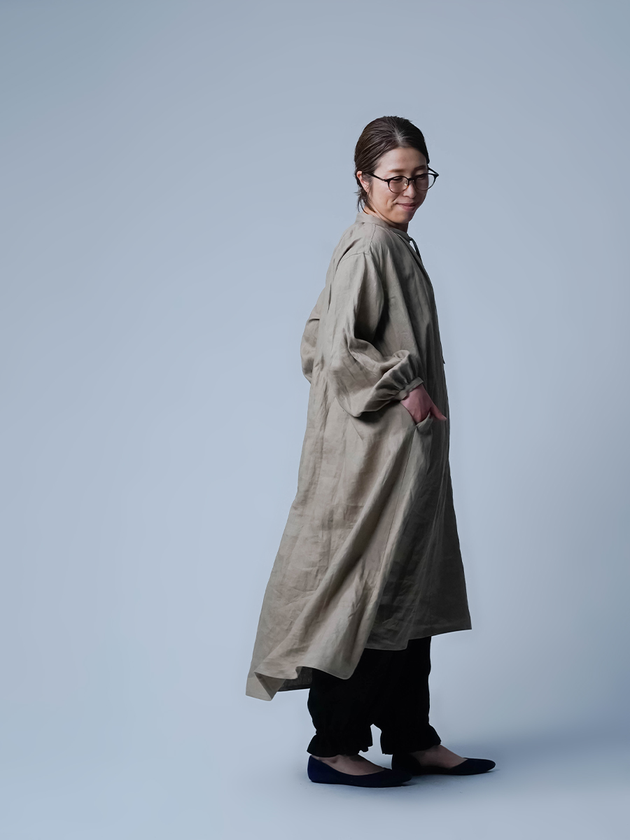 - ※生地工場の生産時期によって色味の濃淡が出ることがございます。セットアップでの着用の場合はご相談下さい。カラーリネンは最初色落ちや生地の性質上、毛羽落ちがある場合がございます。落ち着くまで数回は単品でのお洗濯を。最初は水通しをおすすめします。表面の毛羽立ちがとれて、肌への刺激が極端に少なくなります。リネン特有のネップ、節がございます。