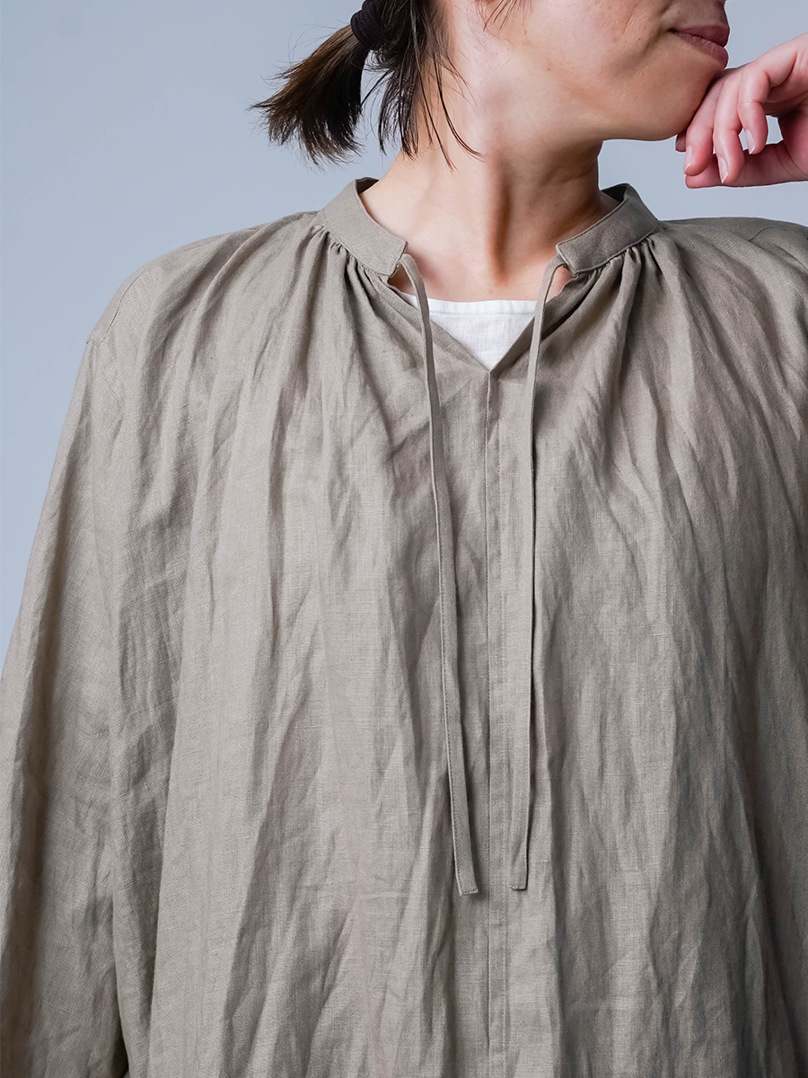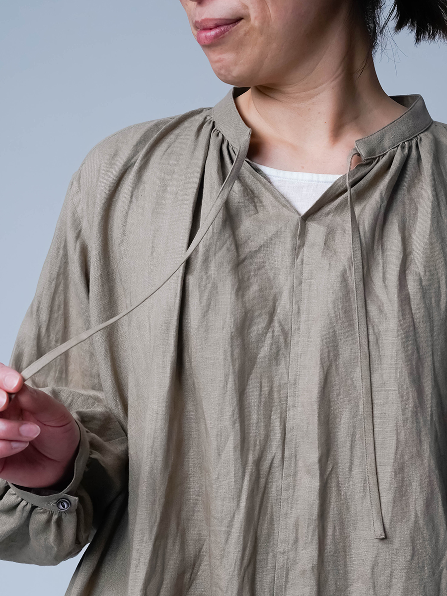 襟元から伸びるギャザーが自然な陰影を作って立体感を出してくれます。