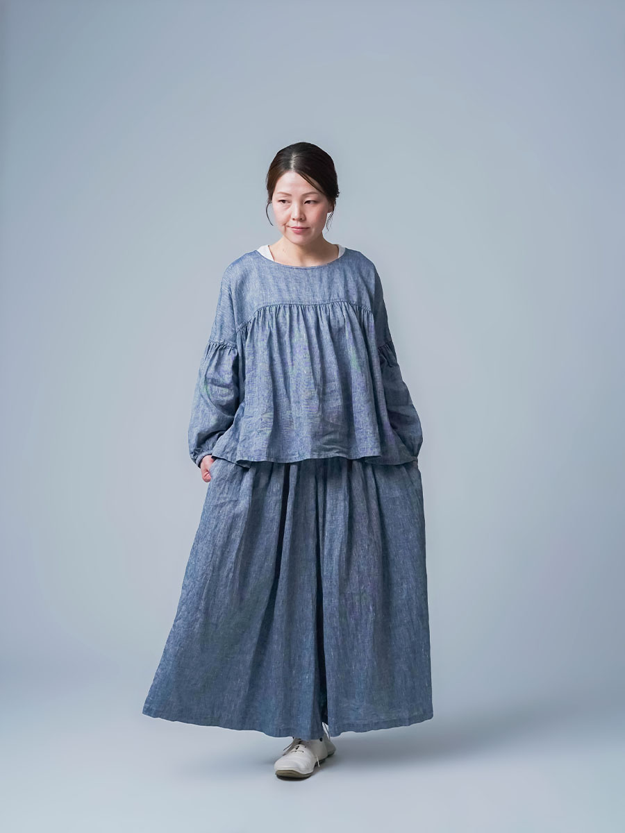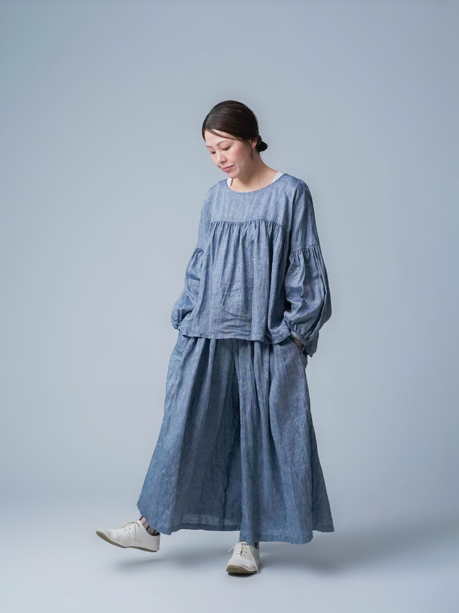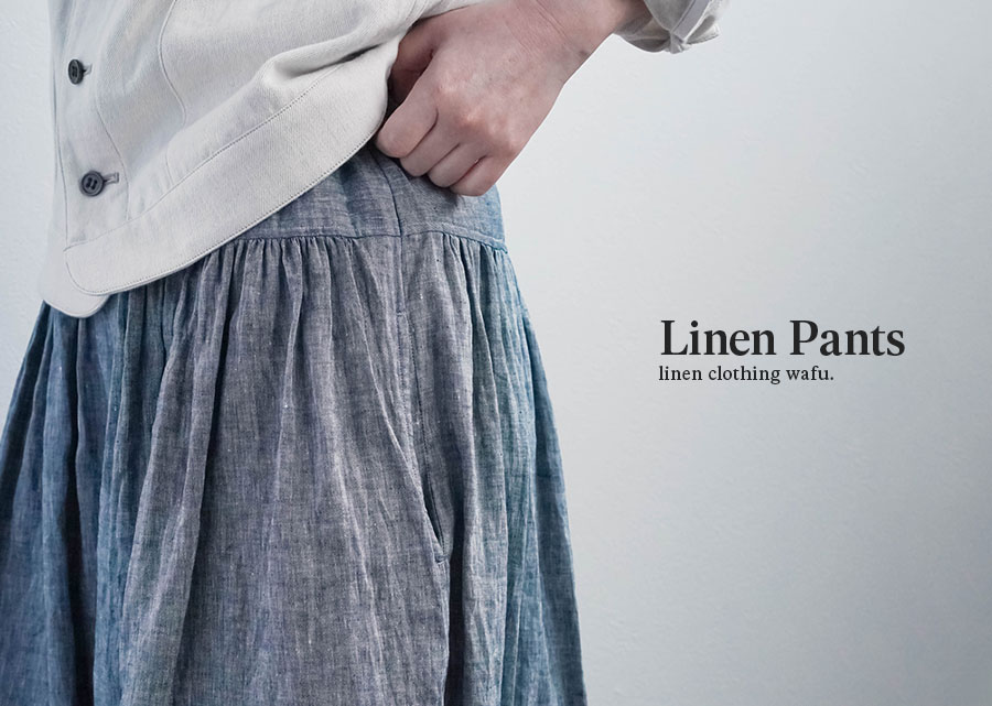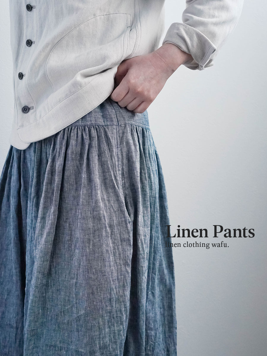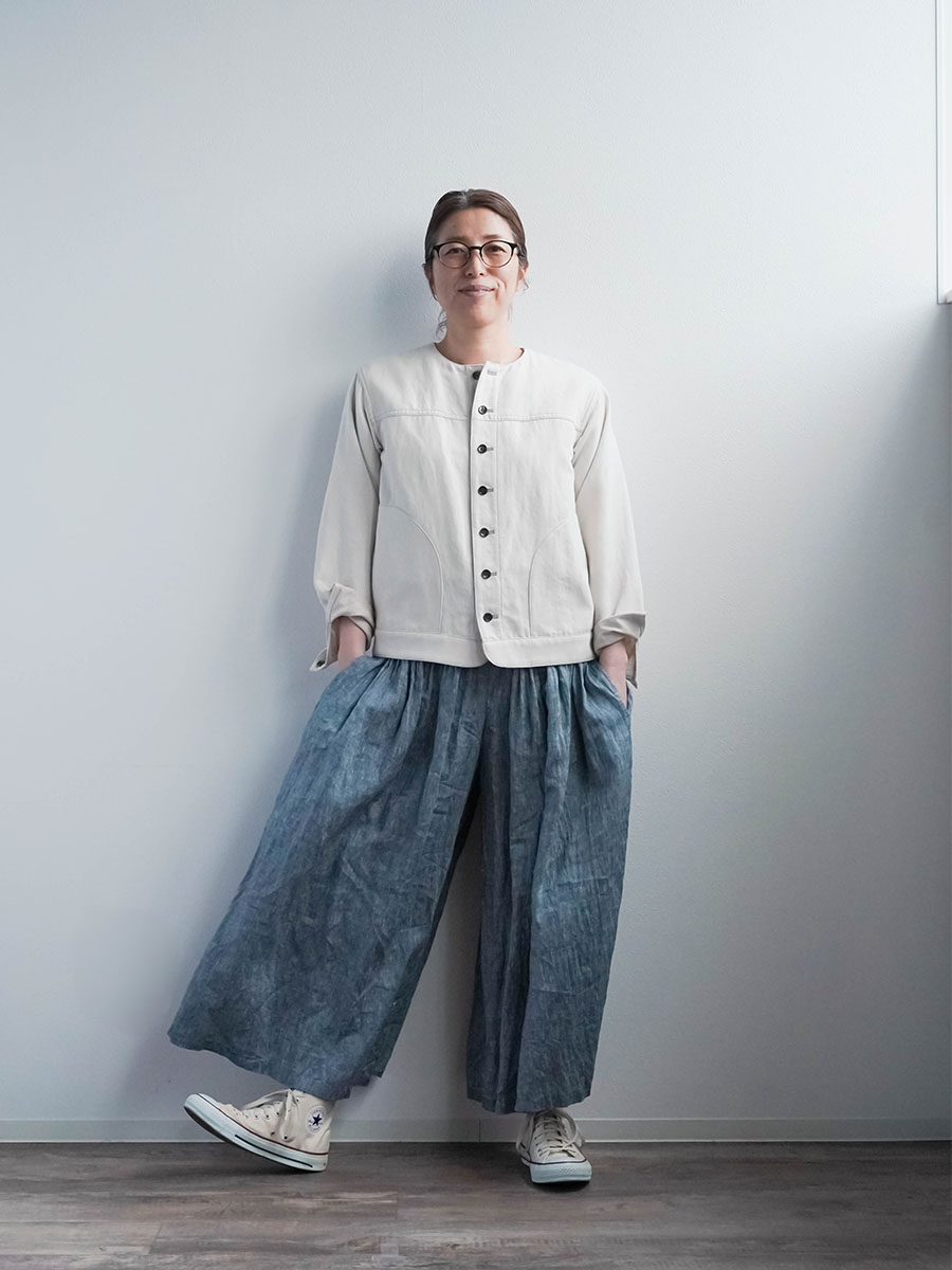 - ※生地工場の生産時期によって色味の濃淡が出ることがございます。セットアップでの着用の場合はご相談下さい。カラーリネンは最初色落ちや生地の性質上、毛羽落ちがある場合がございます。落ち着くまで数回は単品でのお洗濯を。最初は水通しをおすすめします。表面の毛羽立ちがとれて、肌への刺激が極端に少なくなります。リネン特有のネップ、節がございます。