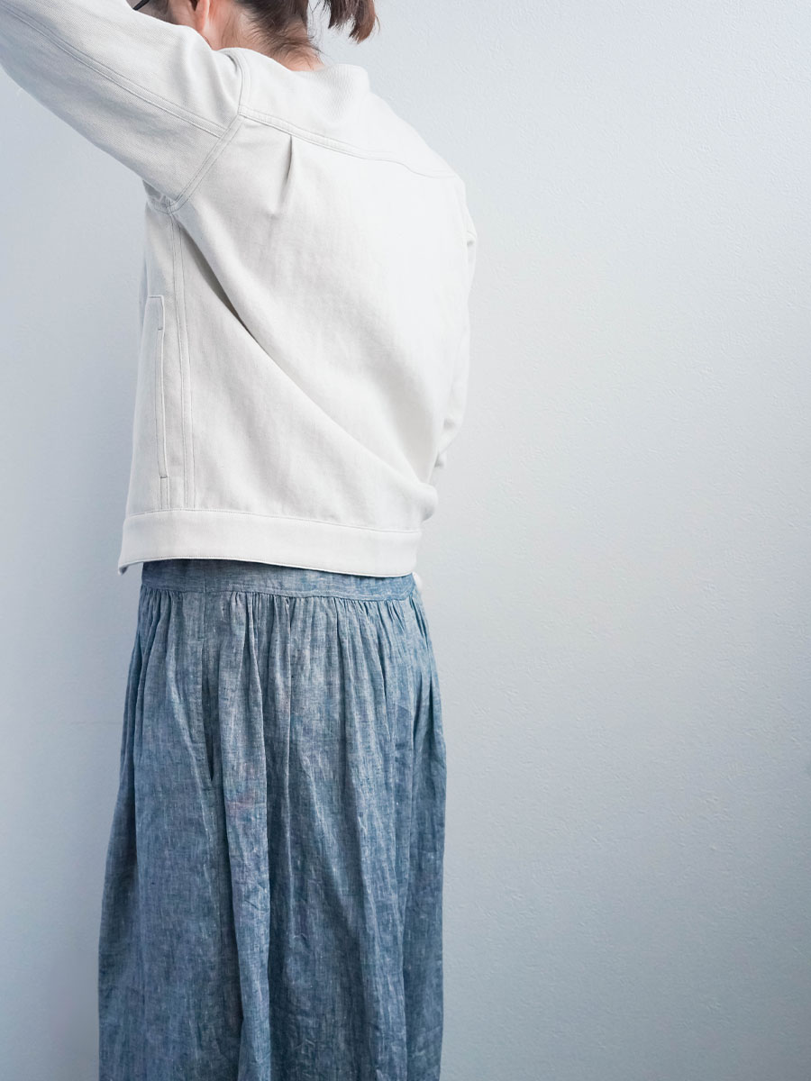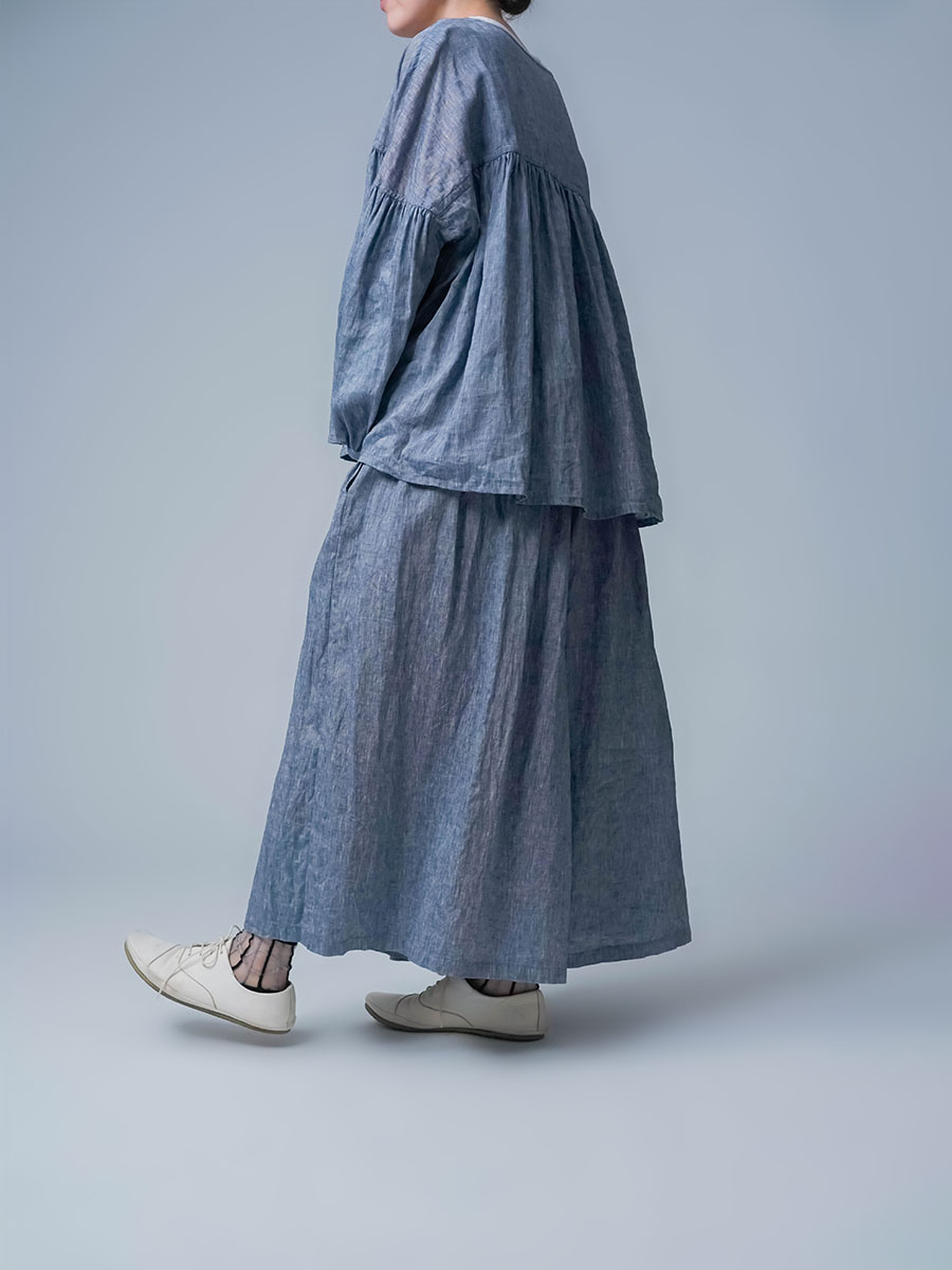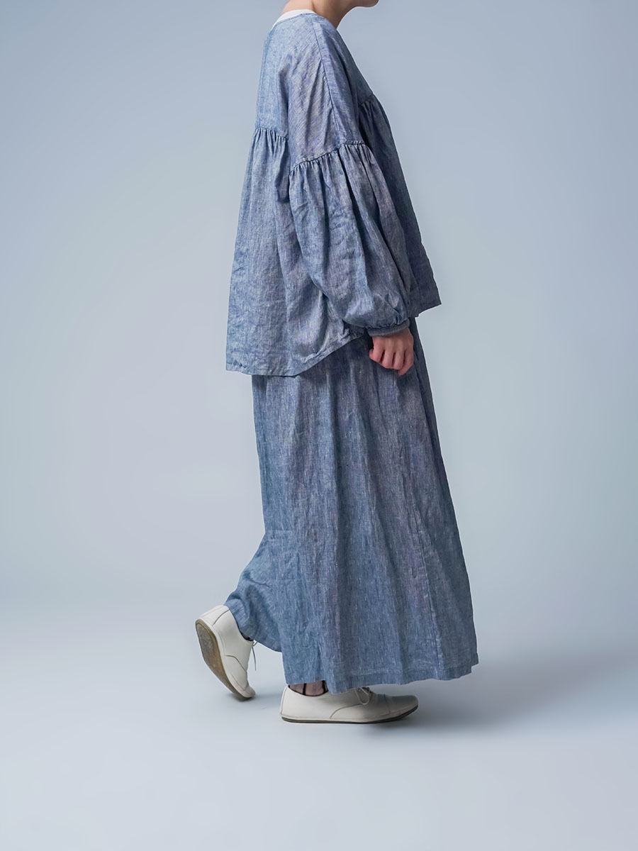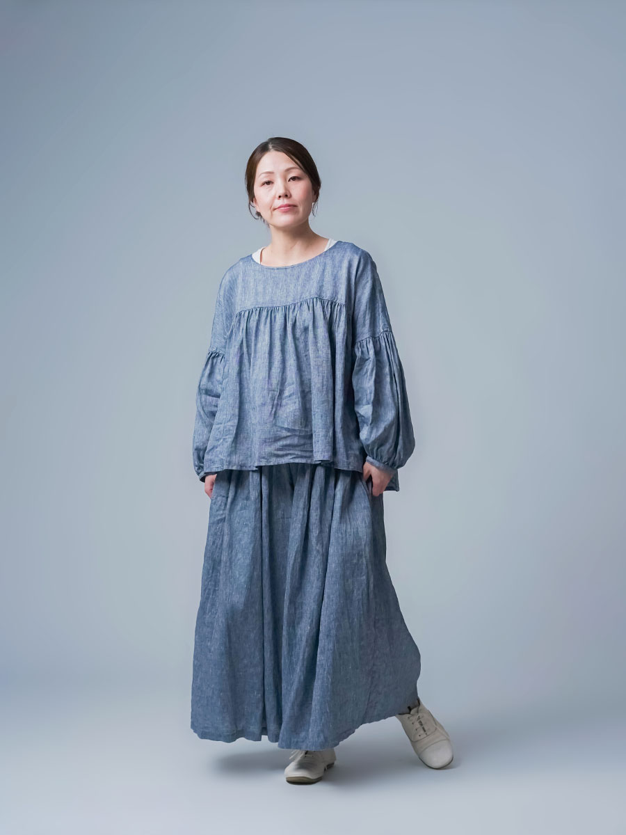 - ※生地工場の生産時期によって色味の濃淡が出ることがございます。セットアップでの着用の場合はご相談下さい。カラーリネンは最初色落ちや生地の性質上、毛羽落ちがある場合がございます。落ち着くまで数回は単品でのお洗濯を。最初は水通しをおすすめします。表面の毛羽立ちがとれて、肌への刺激が極端に少なくなります。リネン特有のネップ、節がございます。