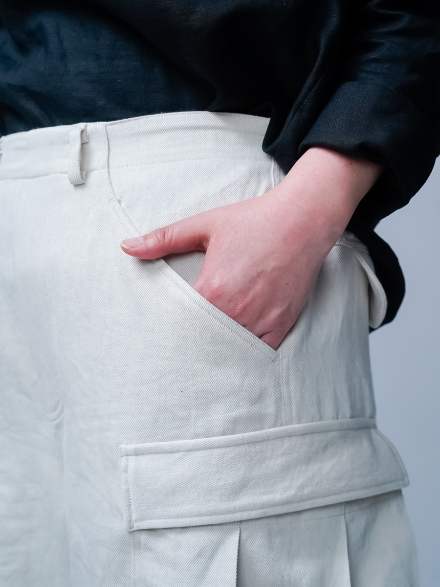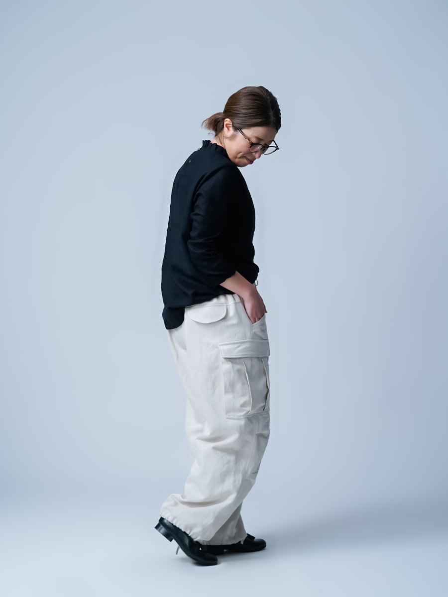 - ※生地工場の生産時期によって色味の濃淡が出ることがございます。セットアップでの着用の場合はご相談下さい。カラーリネンは最初色落ちや生地の性質上、毛羽落ちがある場合がございます。落ち着くまで数回は単品でのお洗濯を。最初は水通しをおすすめします。表面の毛羽立ちがとれて、肌への刺激が極端に少なくなります。リネン特有のネップ、節がございます。