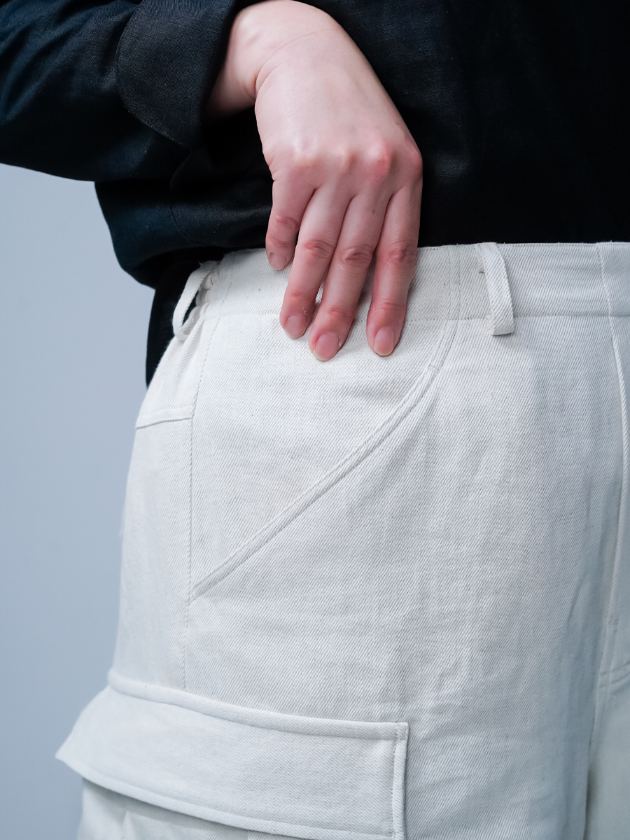 ナチュラルデニムで仕立てた瞬間、カーゴは「強面」から「洒落者」へ。