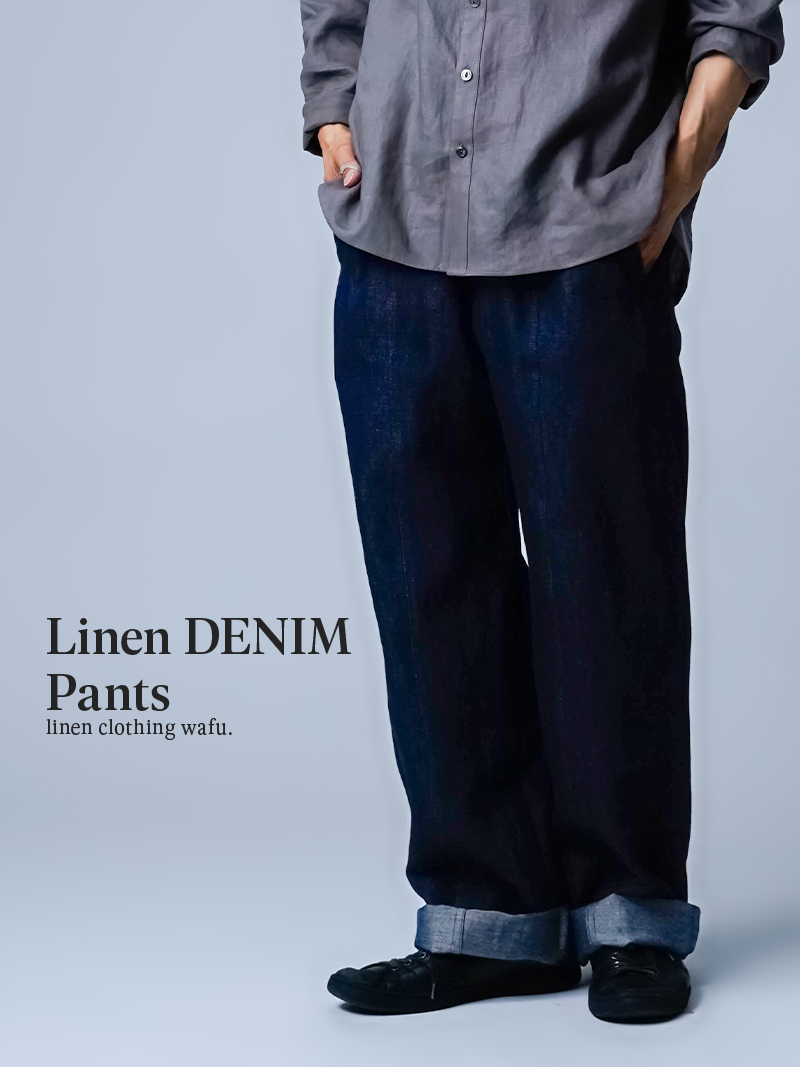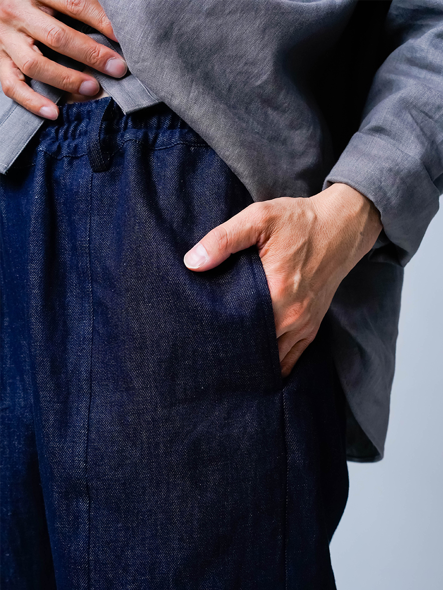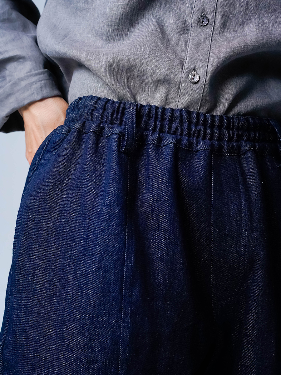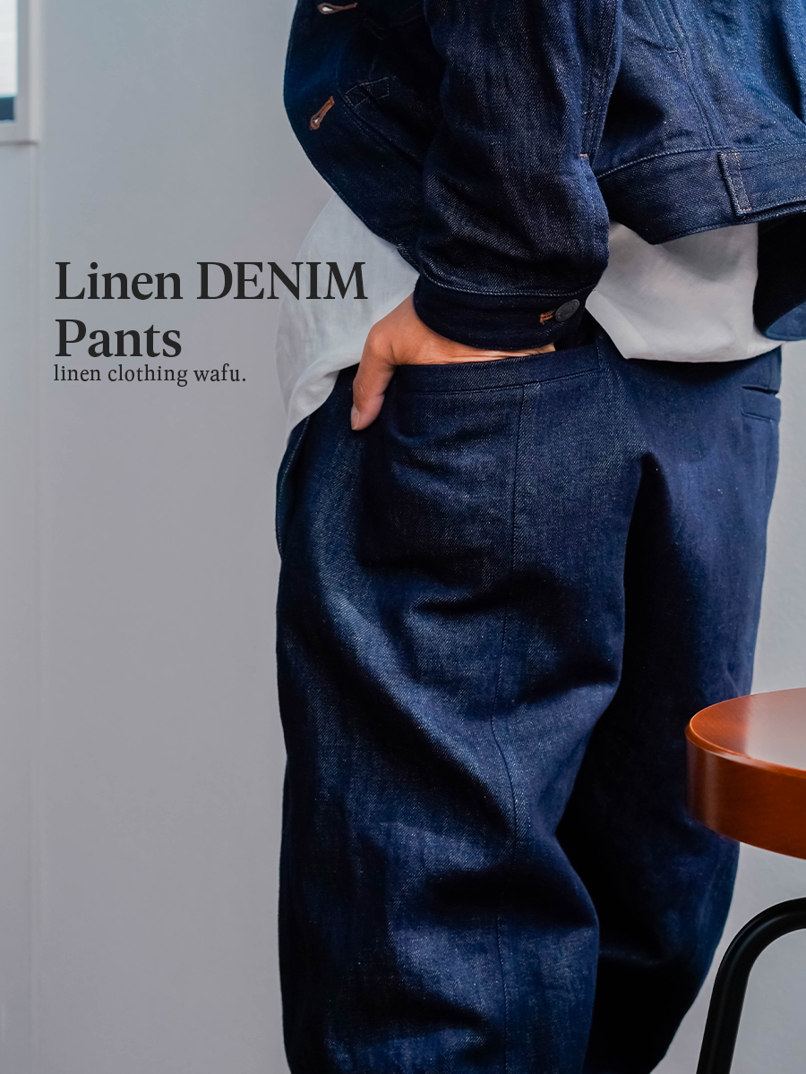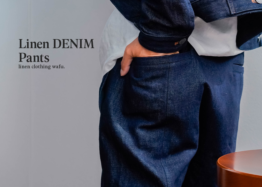 また、リネンデニムはお洗濯の環境によって2cm~4cmほどの縮みがございます。