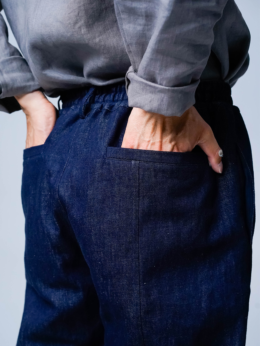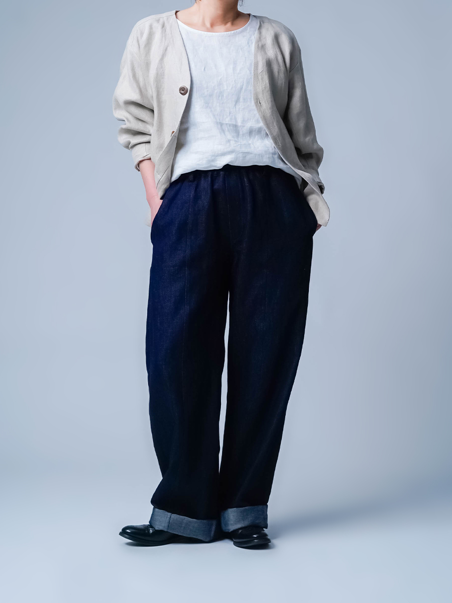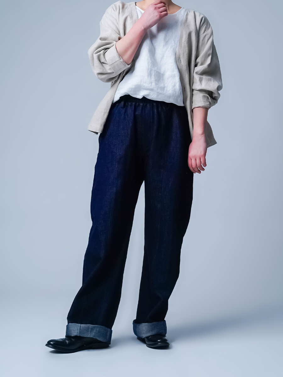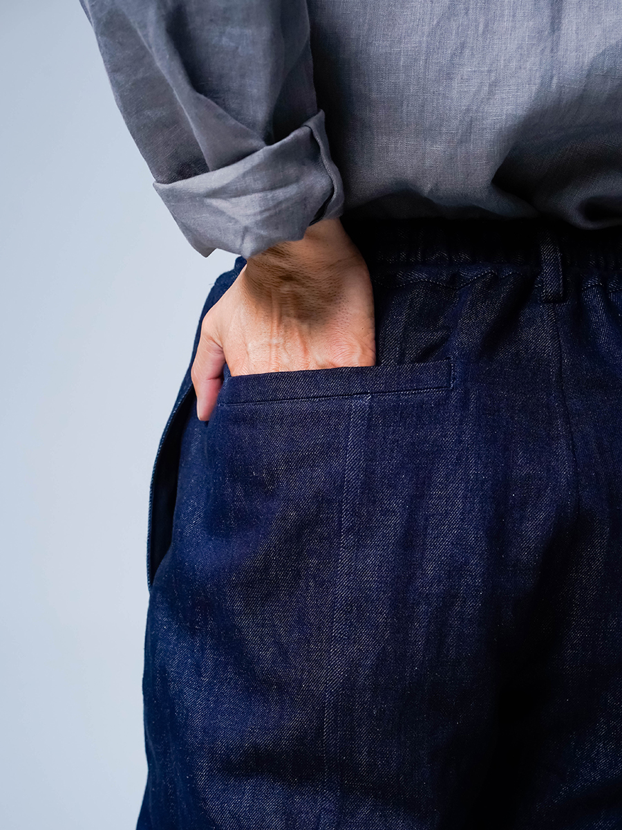 また、リネンデニムはお洗濯の環境によって2cm~4cmほどの縮みがございます。