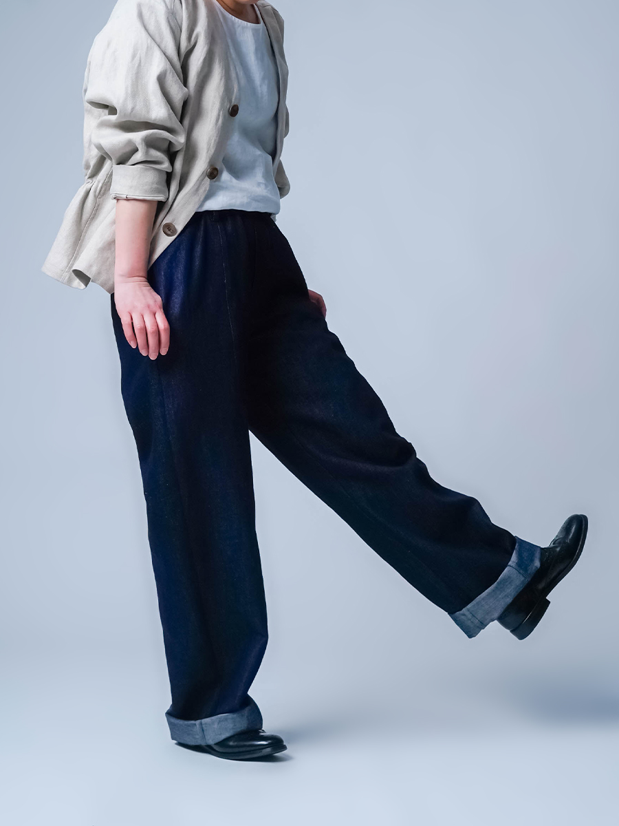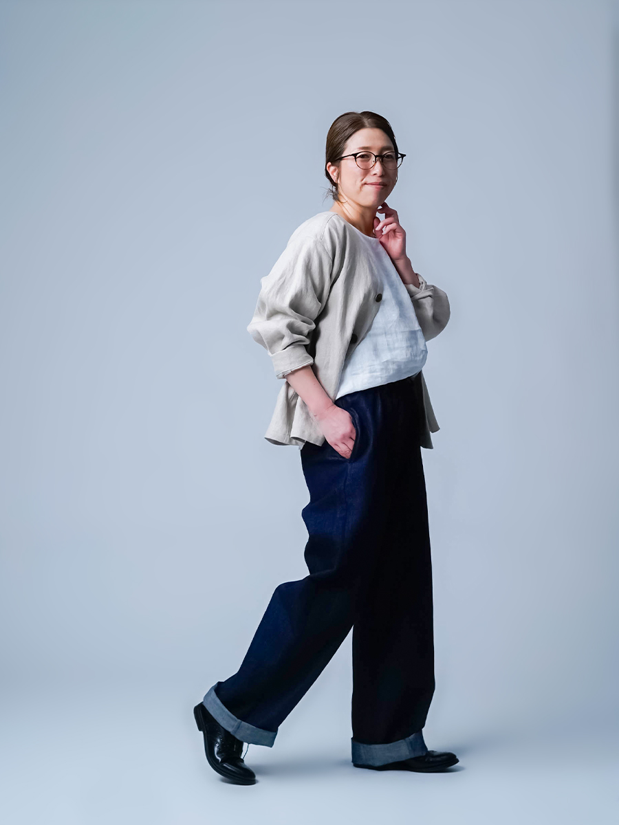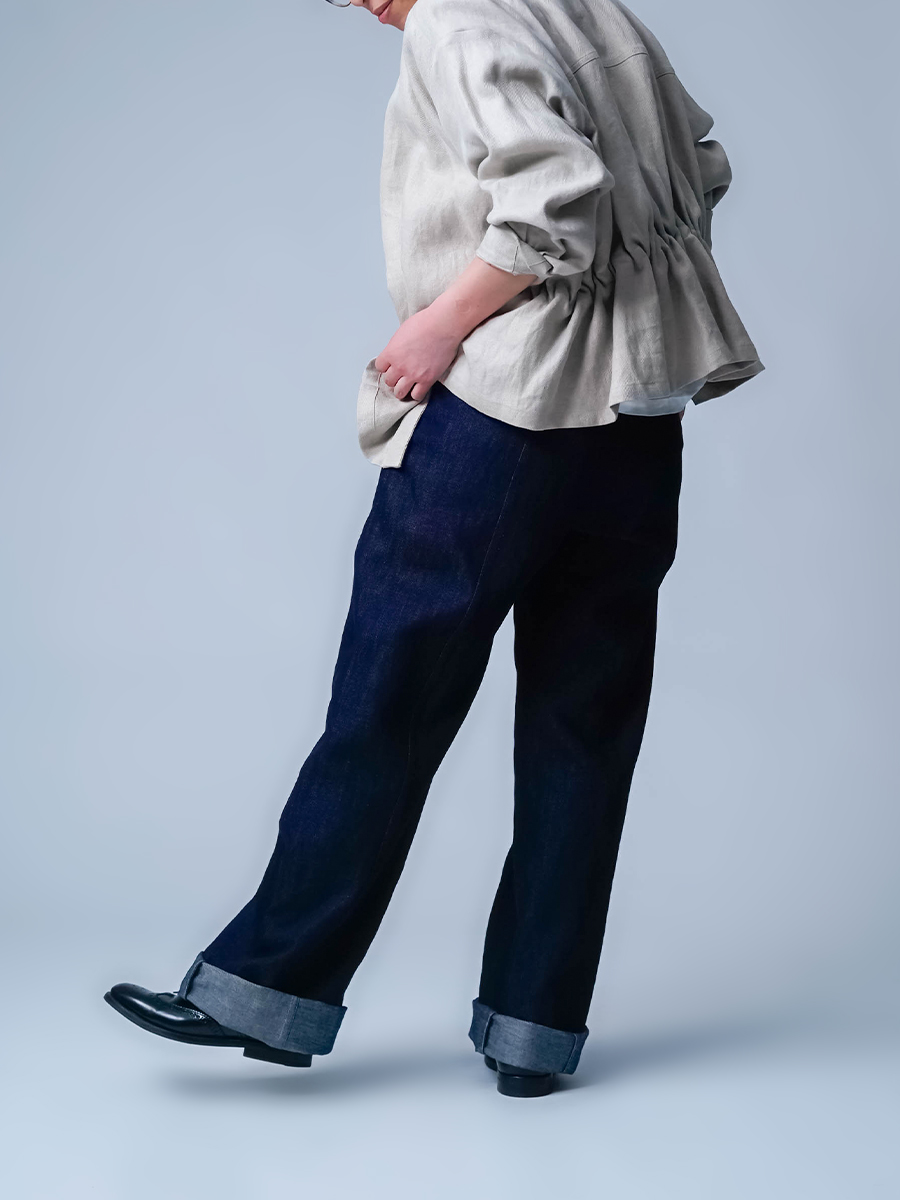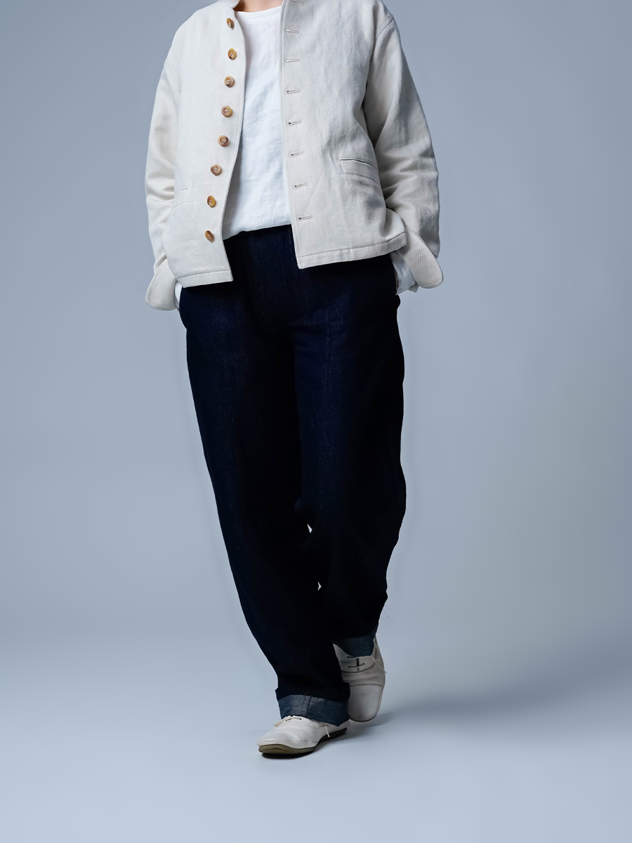 また、リネンデニムはお洗濯の環境によって2cm~4cmほどの縮みがございます。