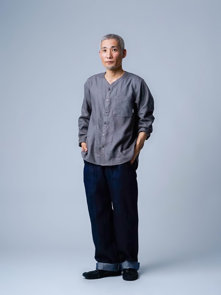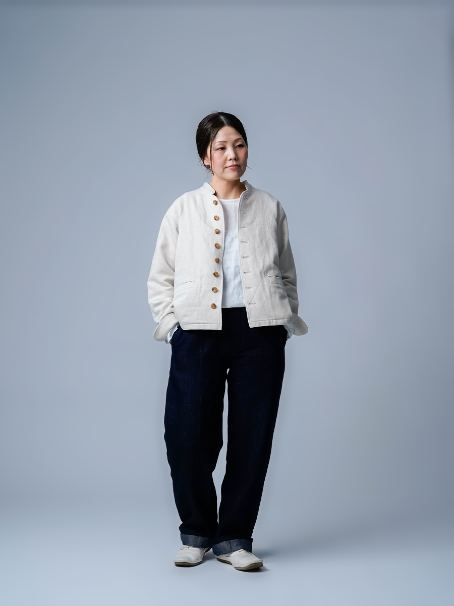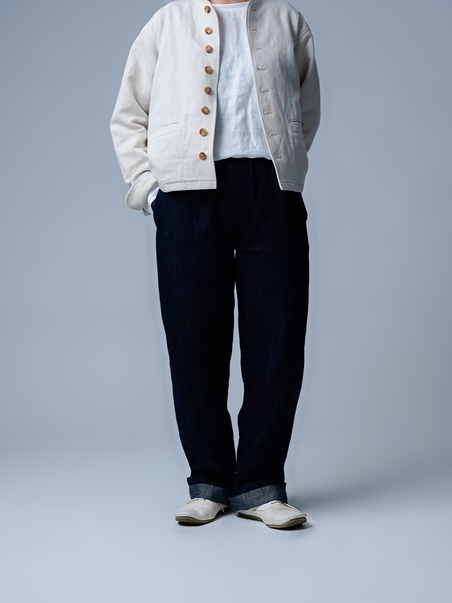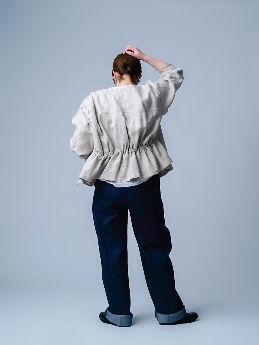- ※生地工場の生産時期によって色味の濃淡が出ることがございます。セットアップでの着用の場合はご相談下さい。カラーリネンは最初色落ちや生地の性質上、毛羽落ちがある場合がございます。落ち着くまで数回は単品でのお洗濯を。最初は水通しをおすすめします。表面の毛羽立ちがとれて、肌への刺激が極端に少なくなります。リネン特有のネップ、節がございます。