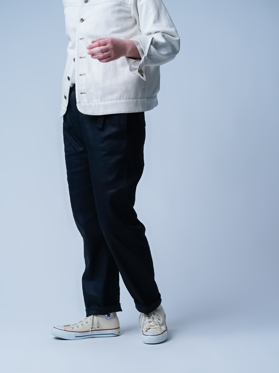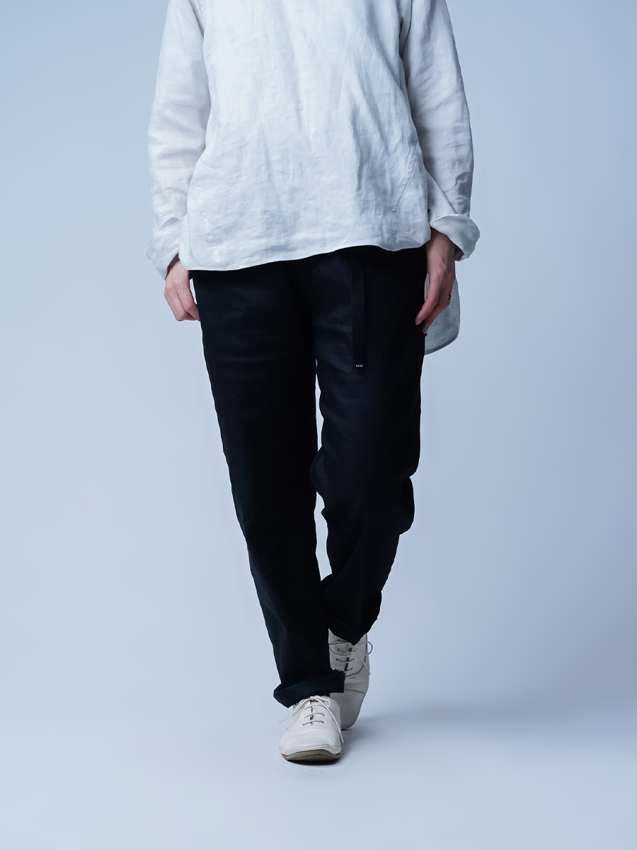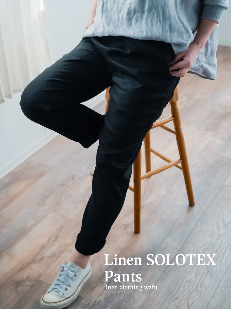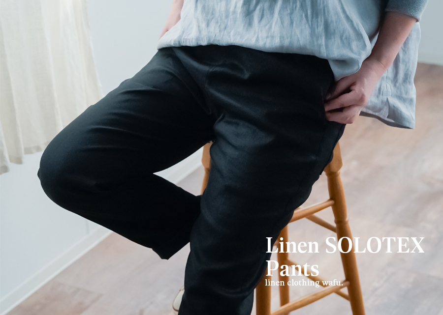 リネンの質感とストレッチ素材の機能性を一体化させたリネンソロテックスのパンツです。