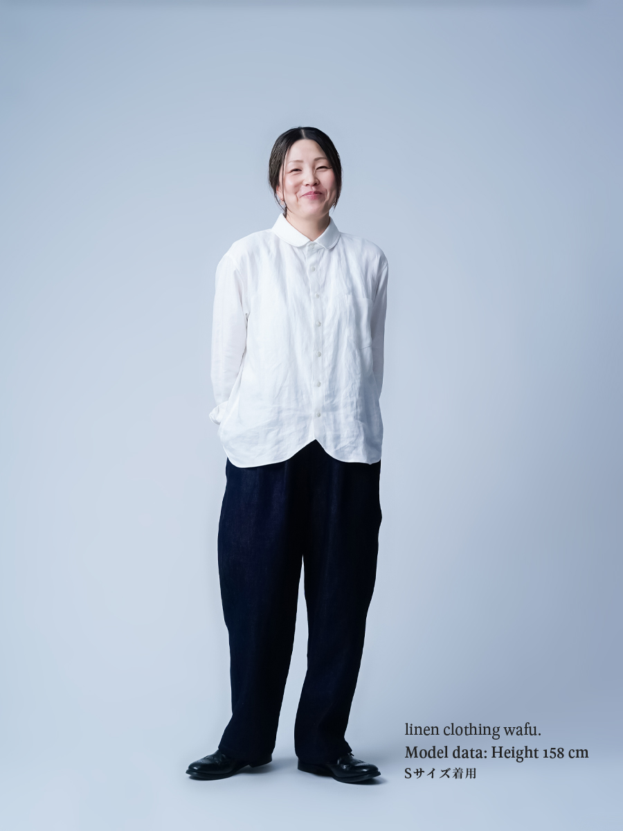 - ※生地工場の生産時期によって色味の濃淡が出ることがございます。セットアップでの着用の場合はご相談下さい。カラーリネンは最初色落ちや生地の性質上、毛羽落ちがある場合がございます。落ち着くまで数回は単品でのお洗濯を。最初は水通しをおすすめします。表面の毛羽立ちがとれて、肌への刺激が極端に少なくなります。リネン特有のネップ、節がございます。