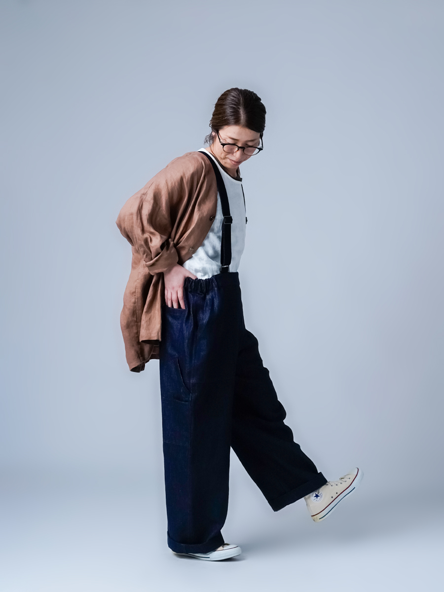 リネンデニムならではの軽やかさと柔らかさは、一日中着ていても気楽。