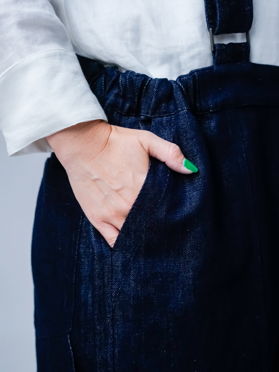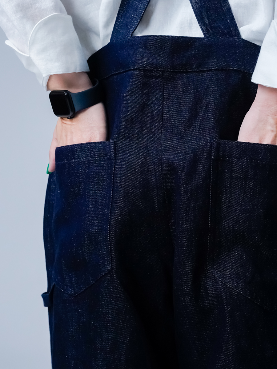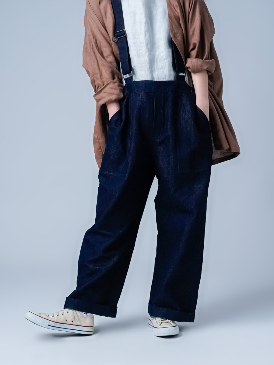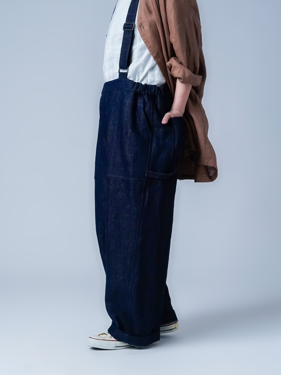 その二つを同時にまとえるのが、このリネンデニムのサロペットです。