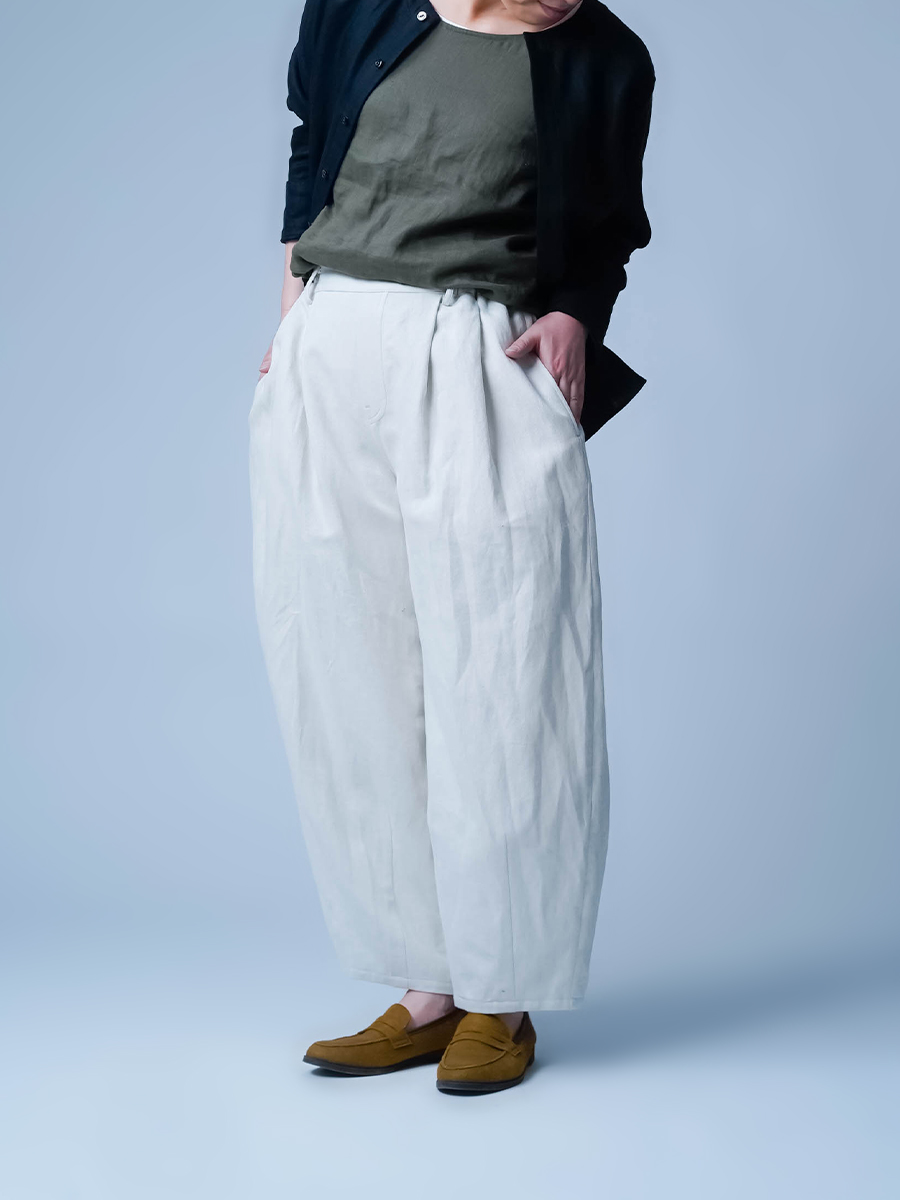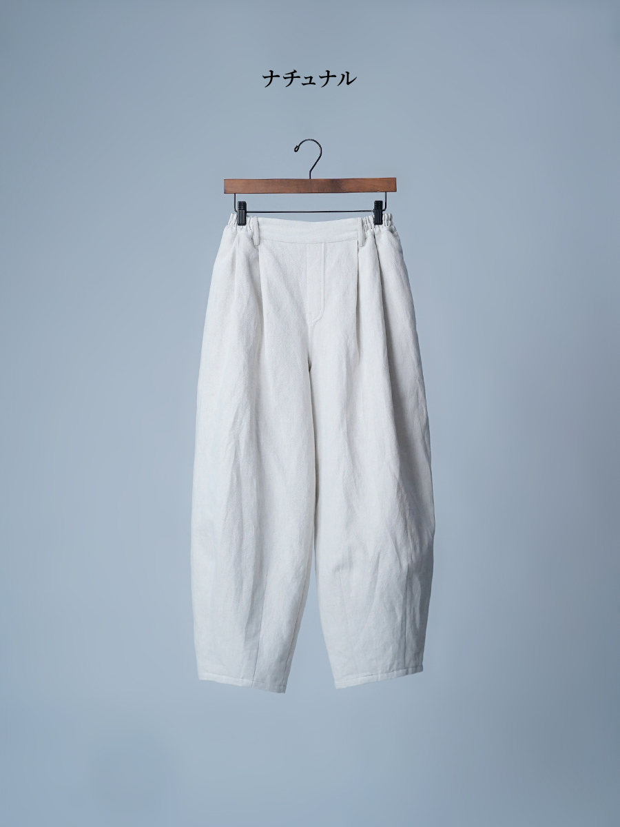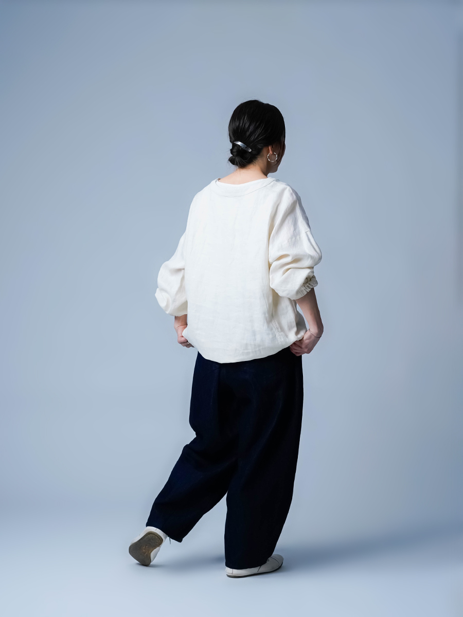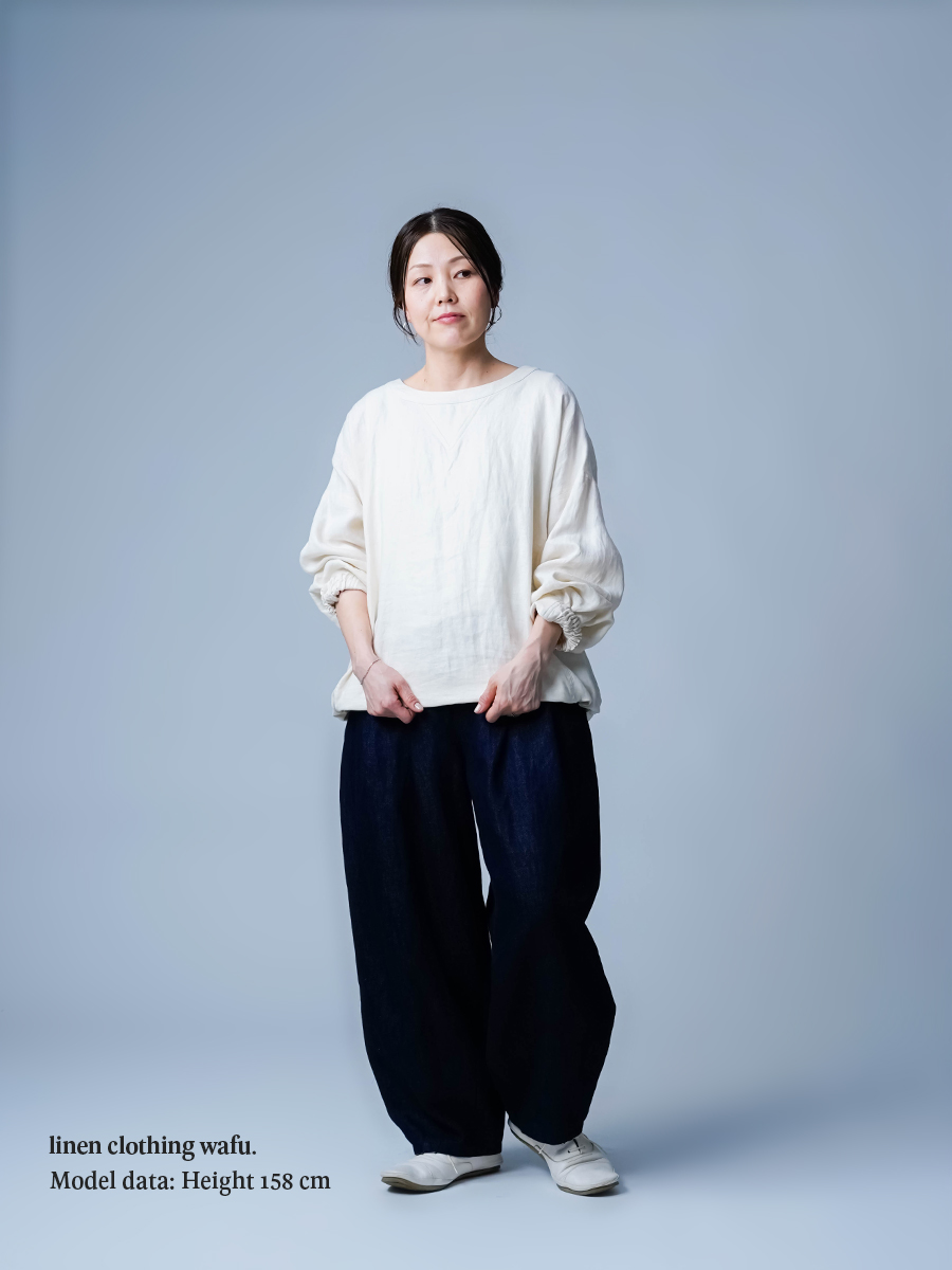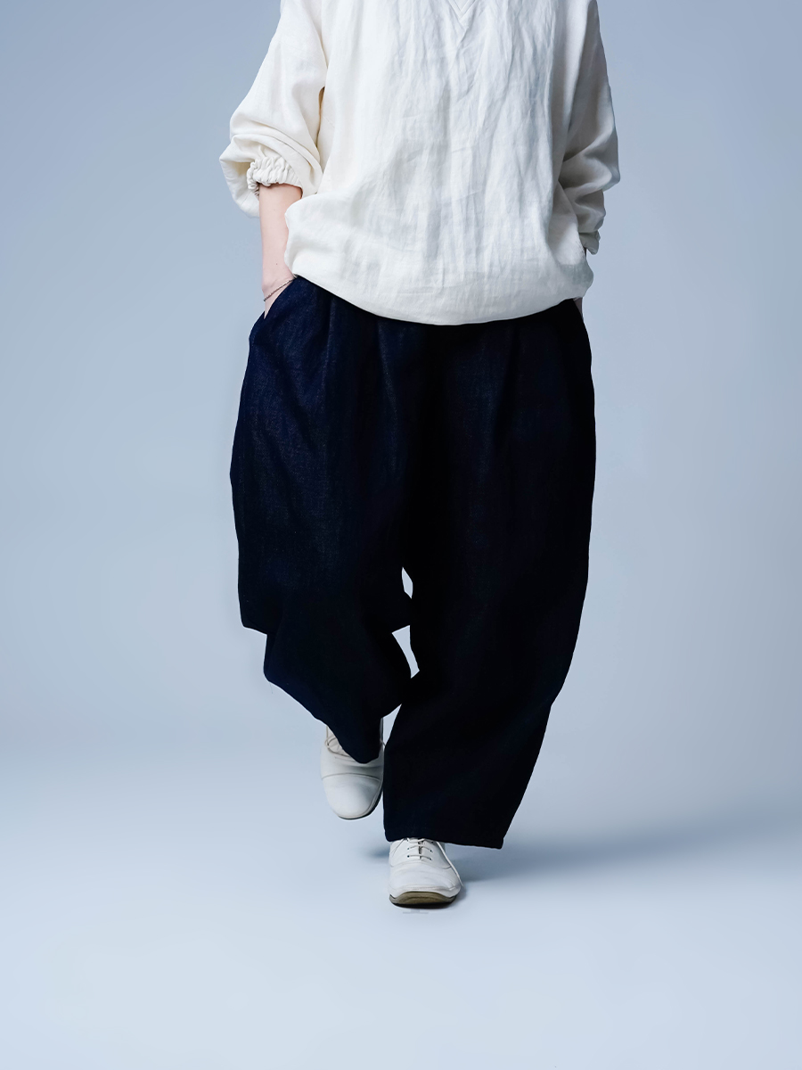 - ※生地工場の生産時期によって色味の濃淡が出ることがございます。セットアップでの着用の場合はご相談下さい。カラーリネンは最初色落ちや生地の性質上、毛羽落ちがある場合がございます。落ち着くまで数回は単品でのお洗濯を。最初は水通しをおすすめします。表面の毛羽立ちがとれて、肌への刺激が極端に少なくなります。リネン特有のネップ、節がございます。