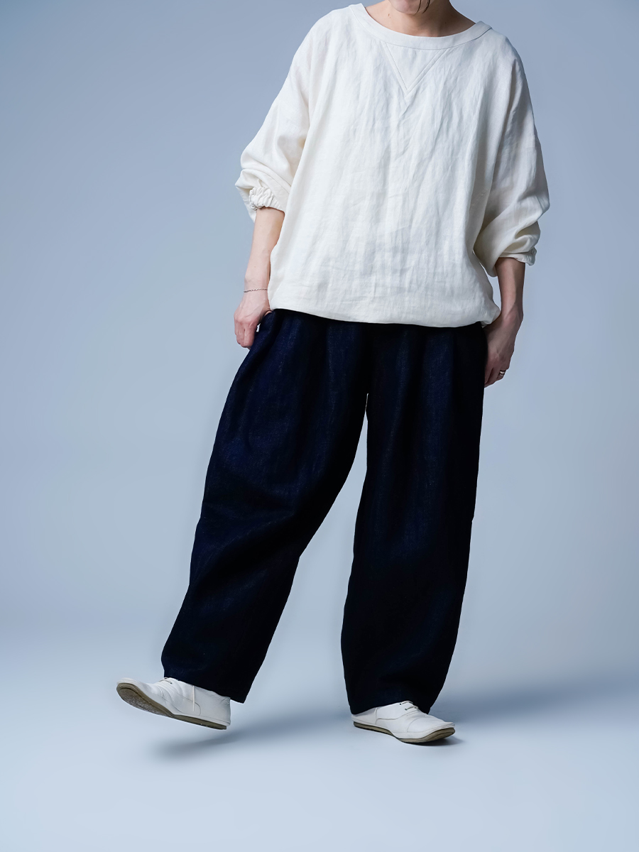 でも、リネンデニムが持つ「凛とした骨格」があるから