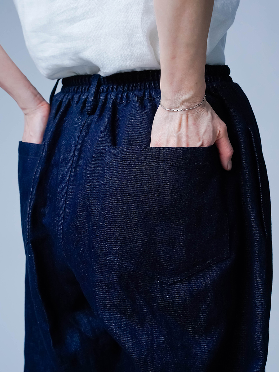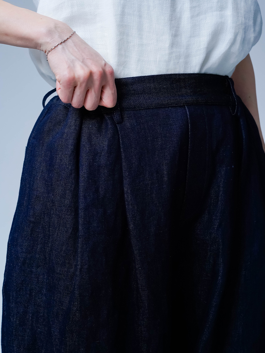 また、リネンデニムはお洗濯の環境によって2cm~4cmほどの縮みがございます。