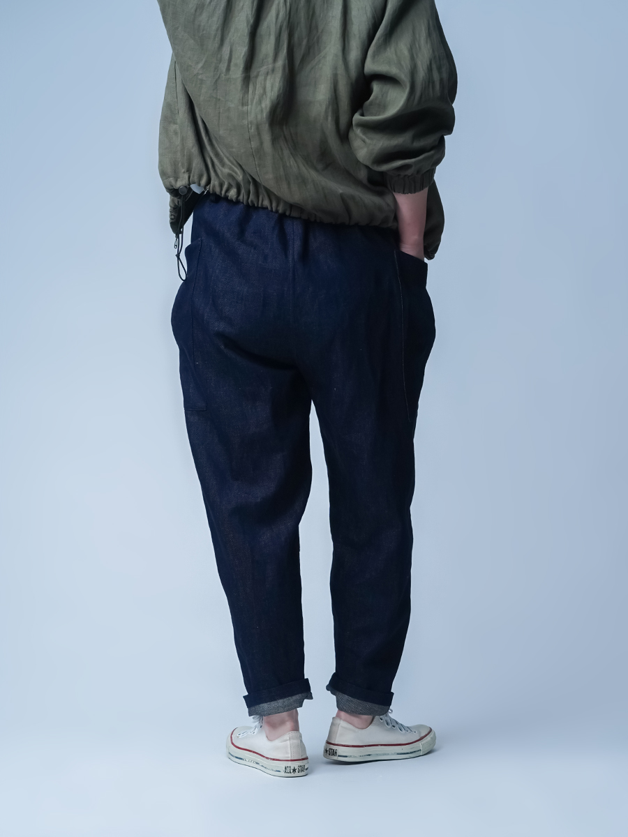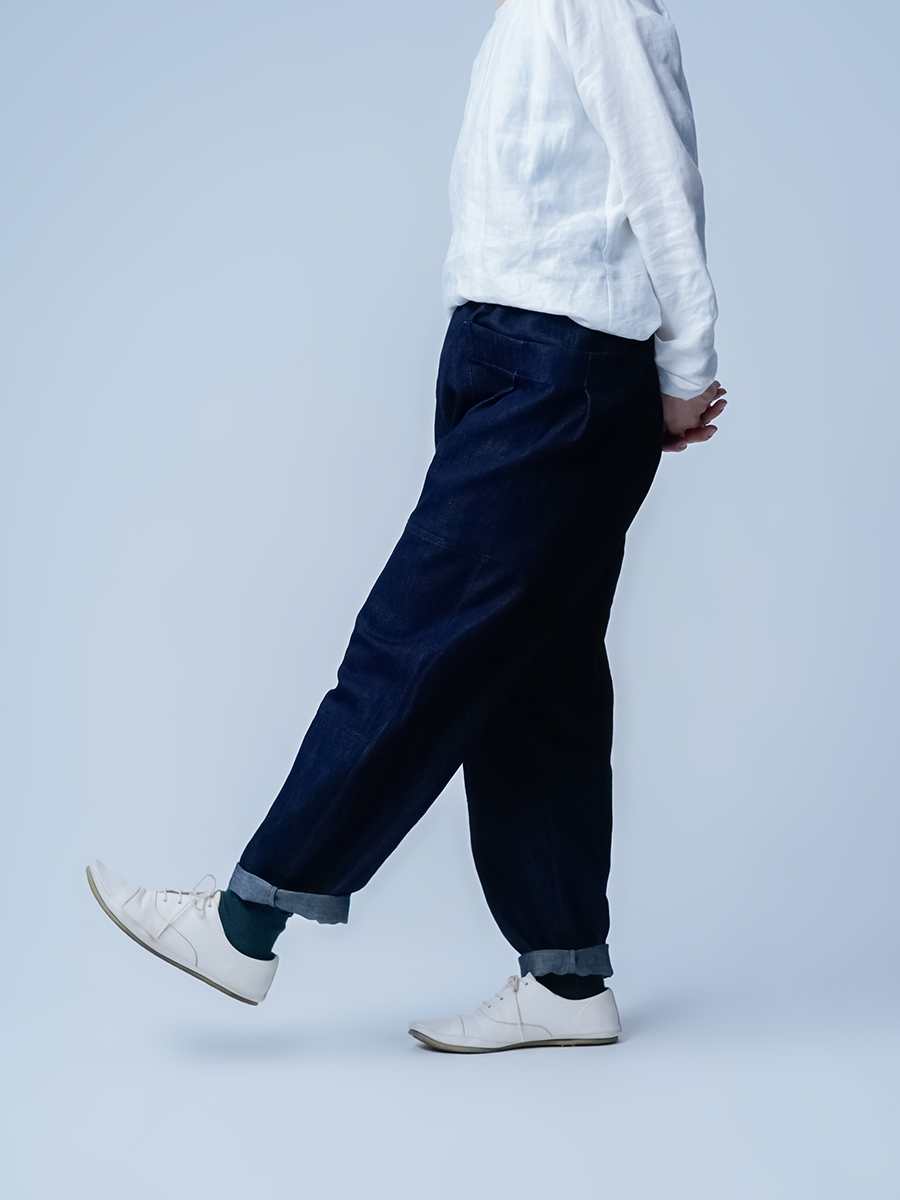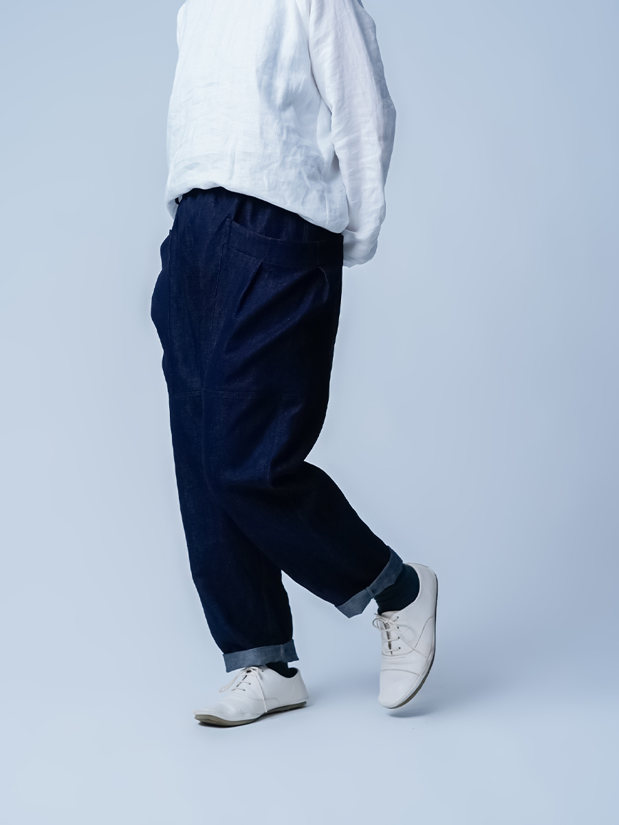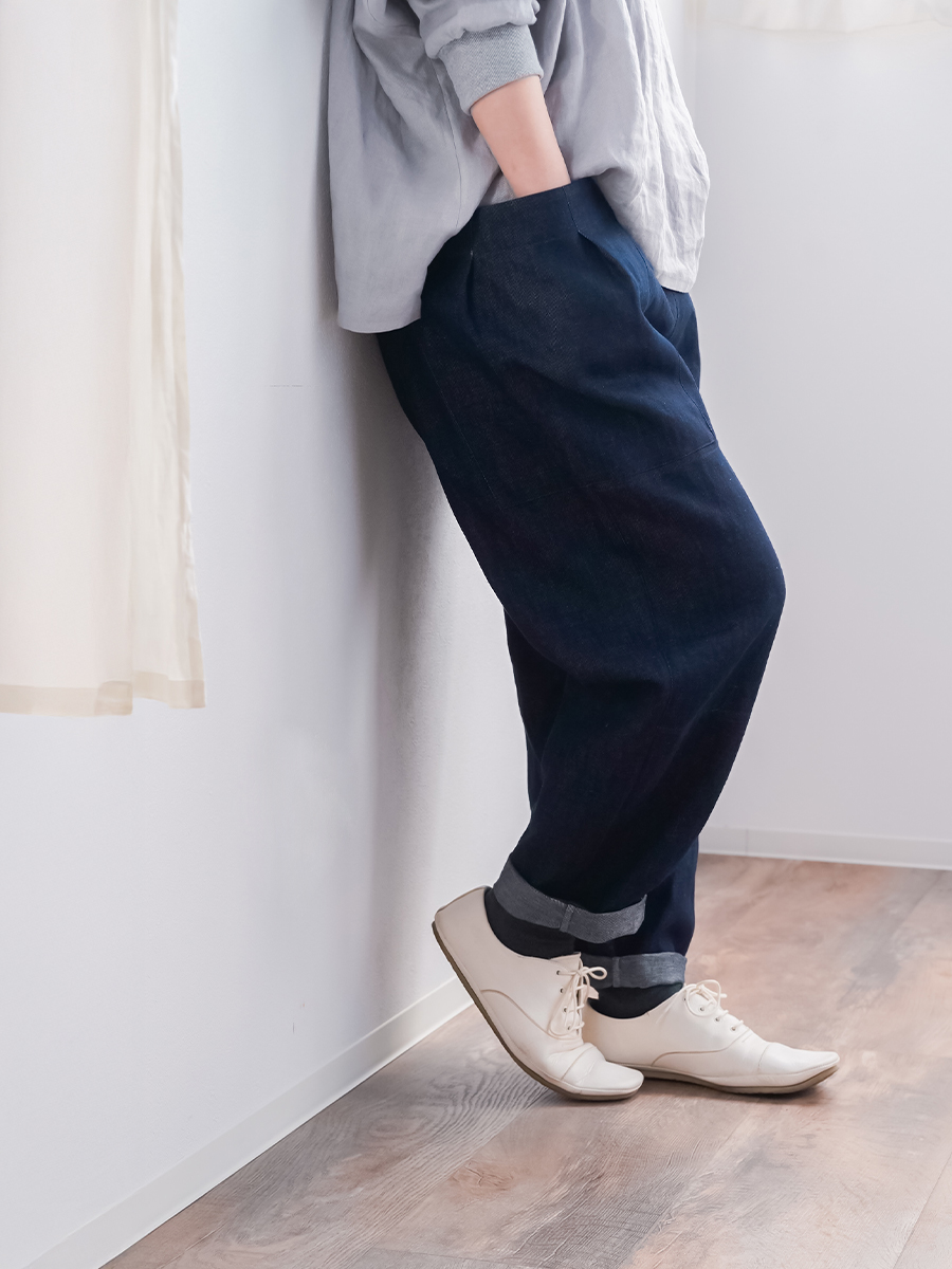 腰まわりはゆったり、裾に向かって自然に細くなるテーパード。