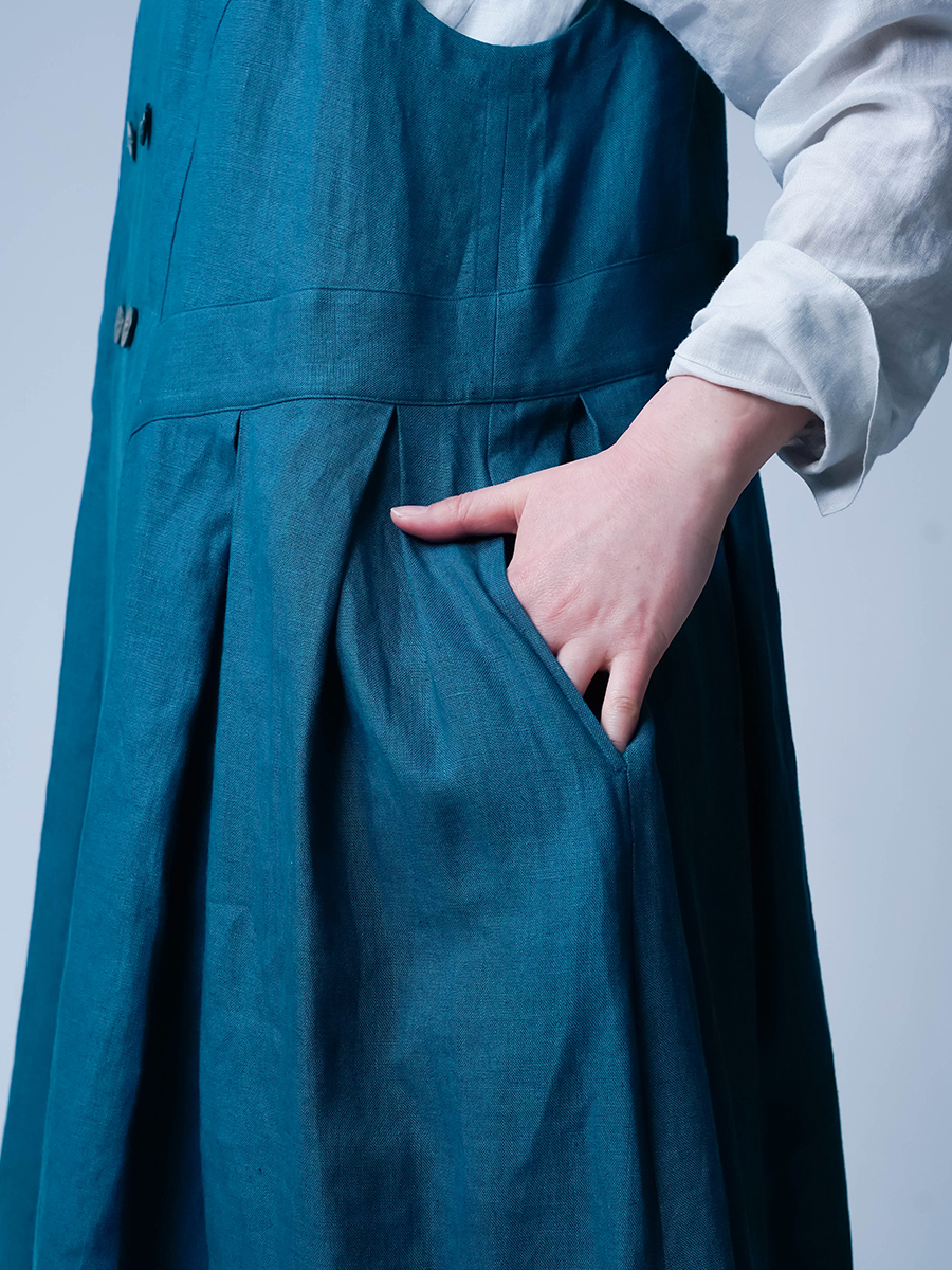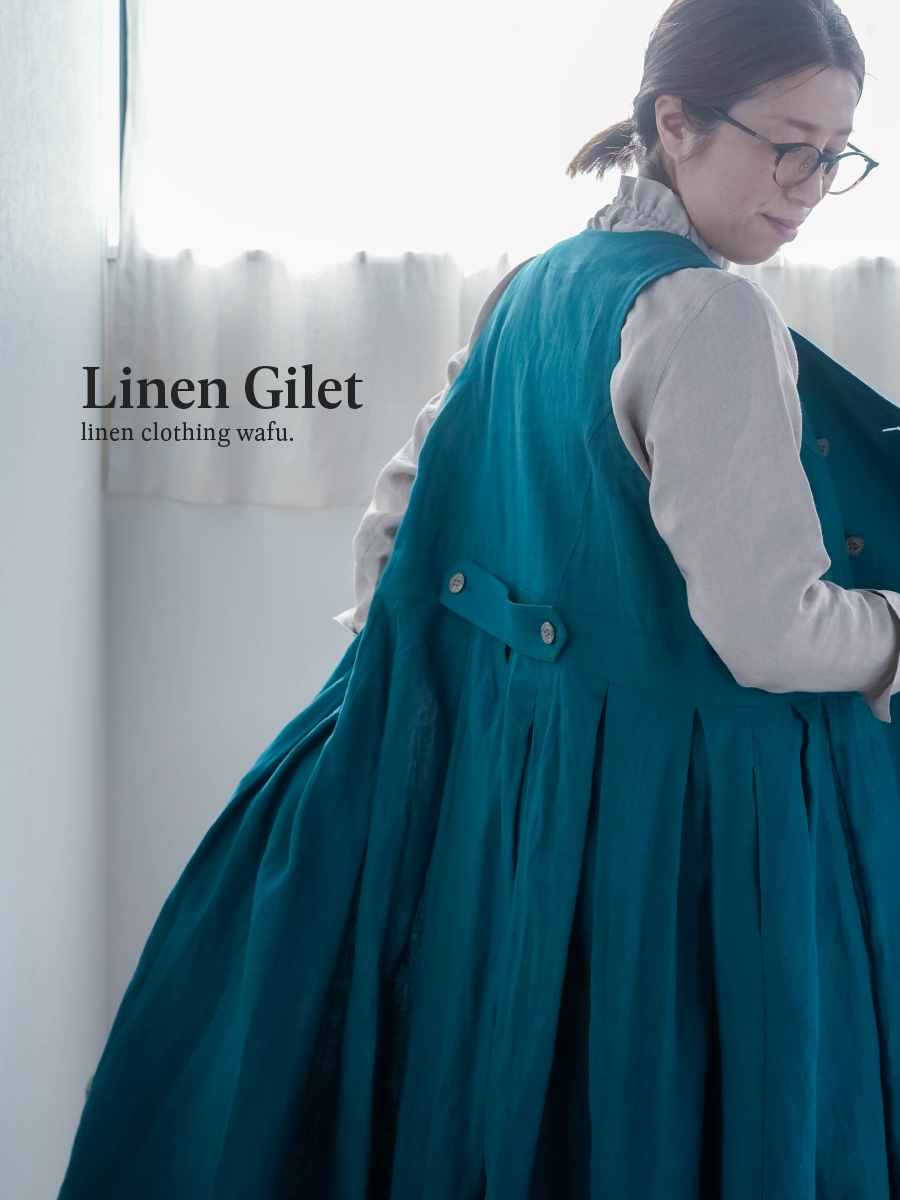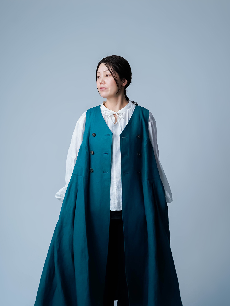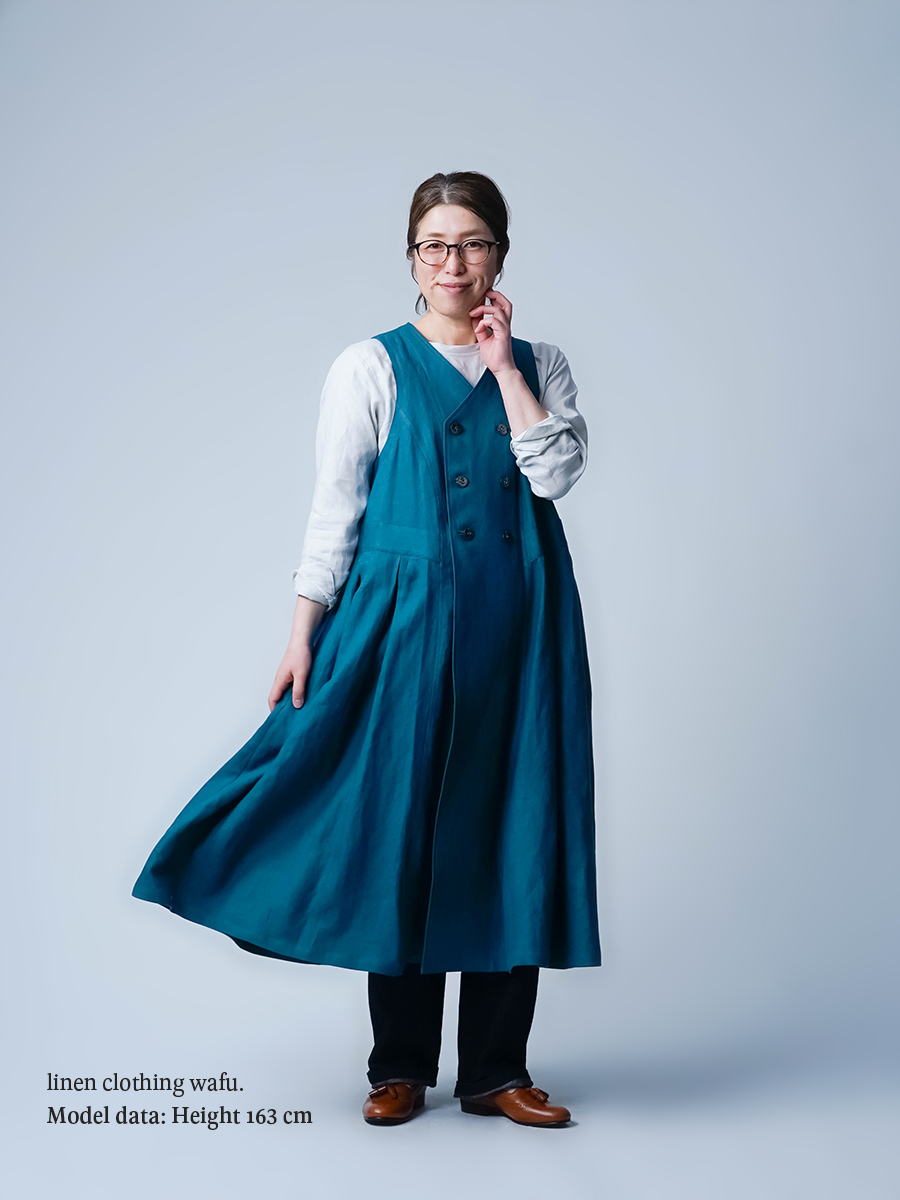 - ※生地工場の生産時期によって色味の濃淡が出ることがございます。セットアップでの着用の場合はご相談下さい。カラーリネンは最初色落ちや生地の性質上、毛羽落ちがある場合がございます。落ち着くまで数回は単品でのお洗濯を。最初は水通しをおすすめします。表面の毛羽立ちがとれて、肌への刺激が極端に少なくなります。リネン特有のネップ、節がございます。