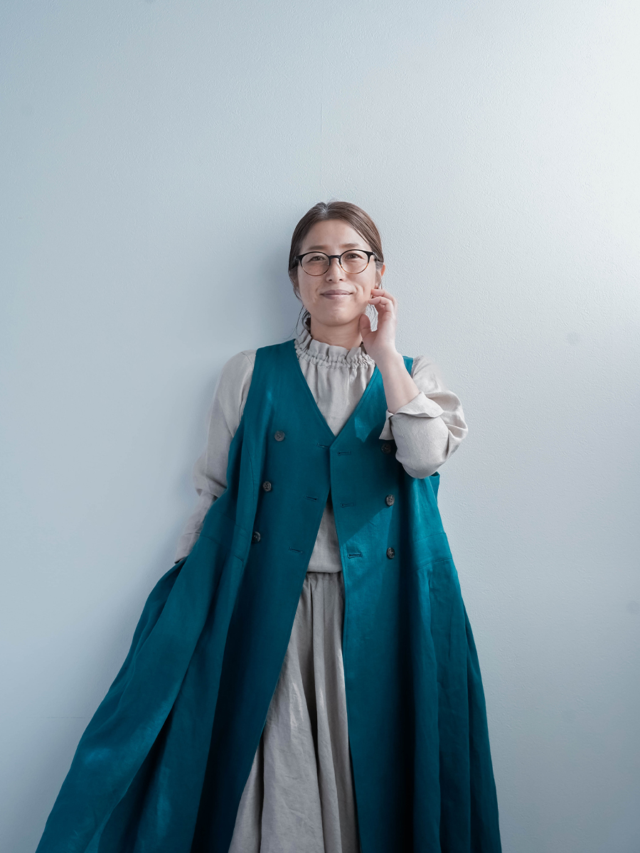 羽織るだけで縦のラインを作って、全身の印象をスッと整えます。