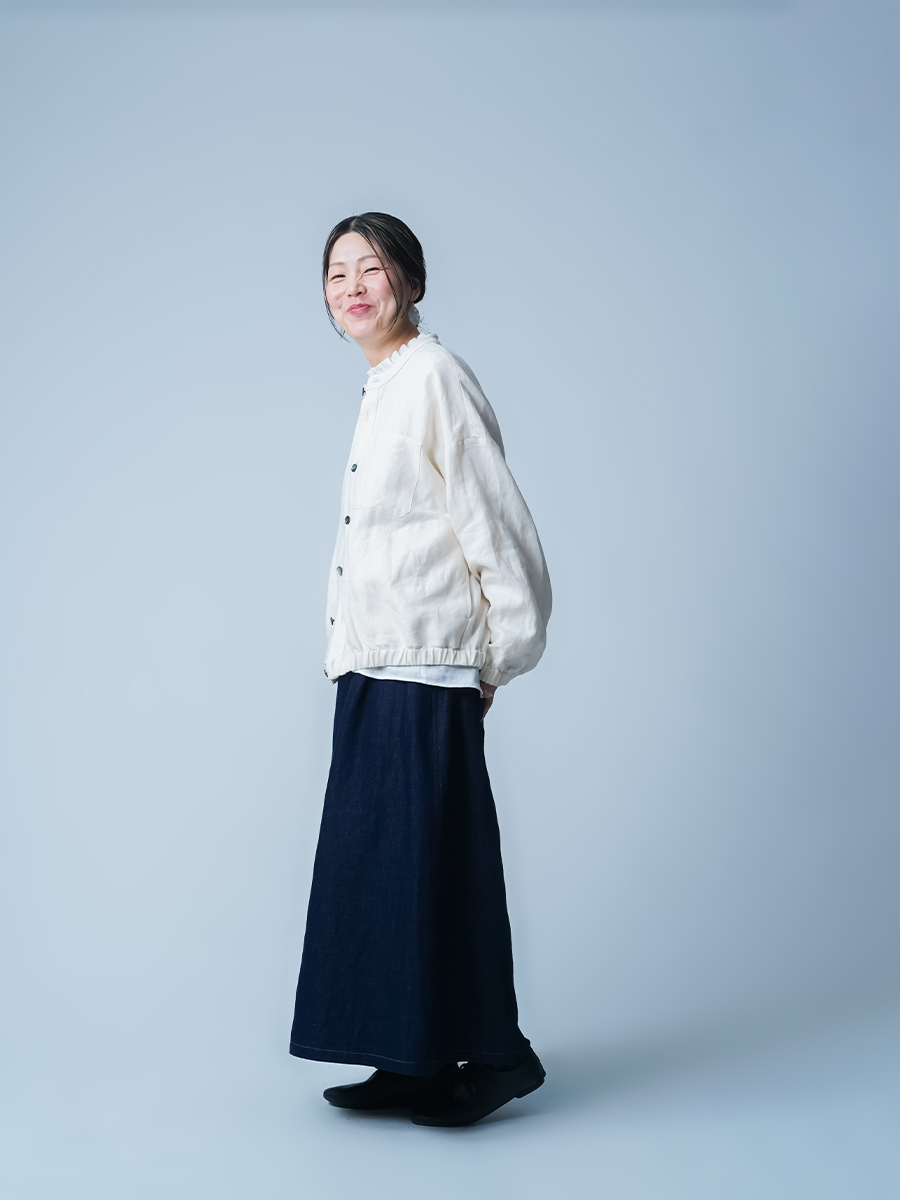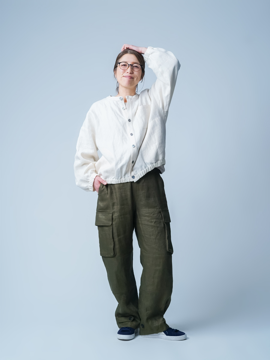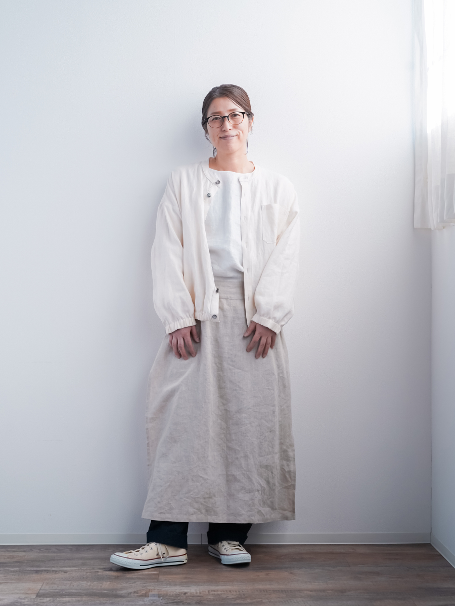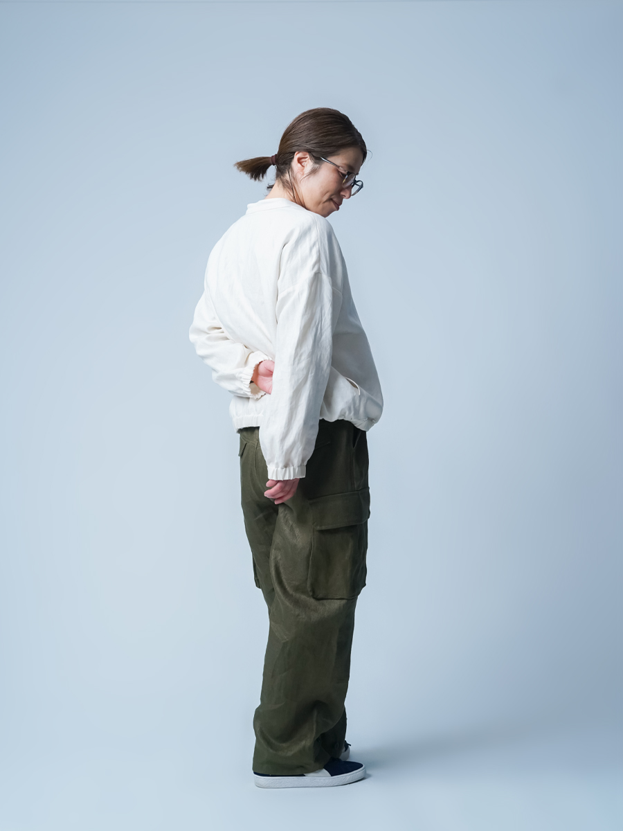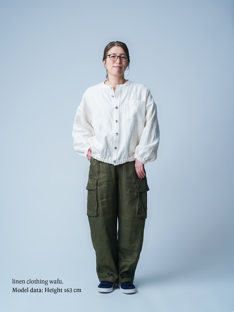 - ※生地工場の生産時期によって色味の濃淡が出ることがございます。セットアップでの着用の場合はご相談下さい。カラーリネンは最初色落ちや生地の性質上、毛羽落ちがある場合がございます。落ち着くまで数回は単品でのお洗濯を。最初は水通しをおすすめします。表面の毛羽立ちがとれて、肌への刺激が極端に少なくなります。リネン特有のネップ、節がございます。