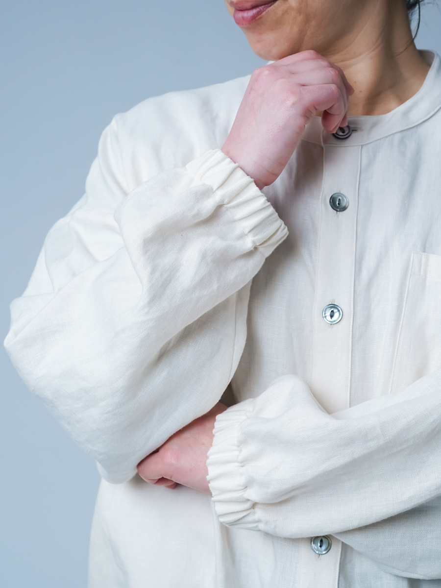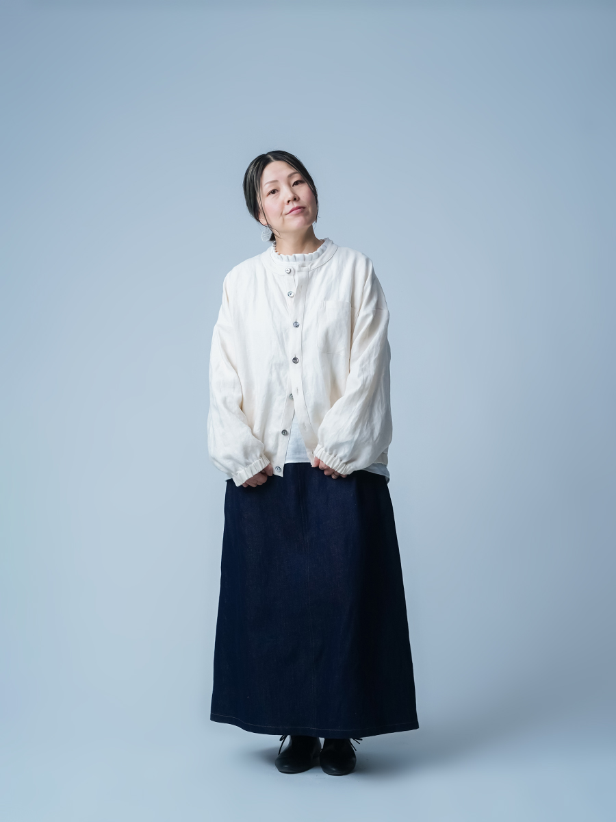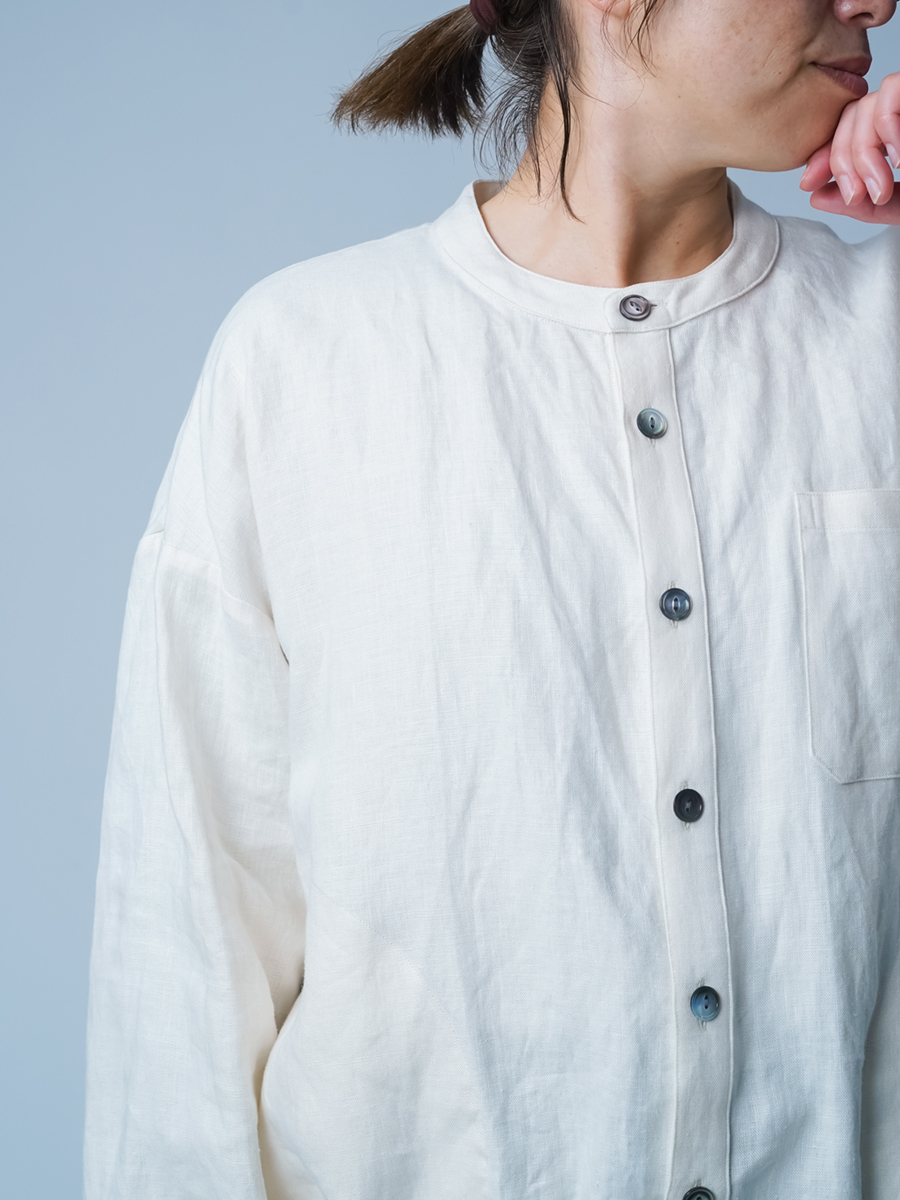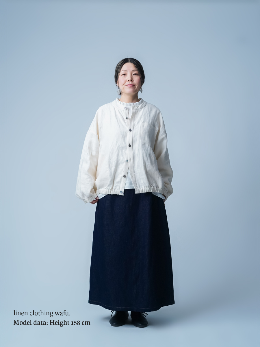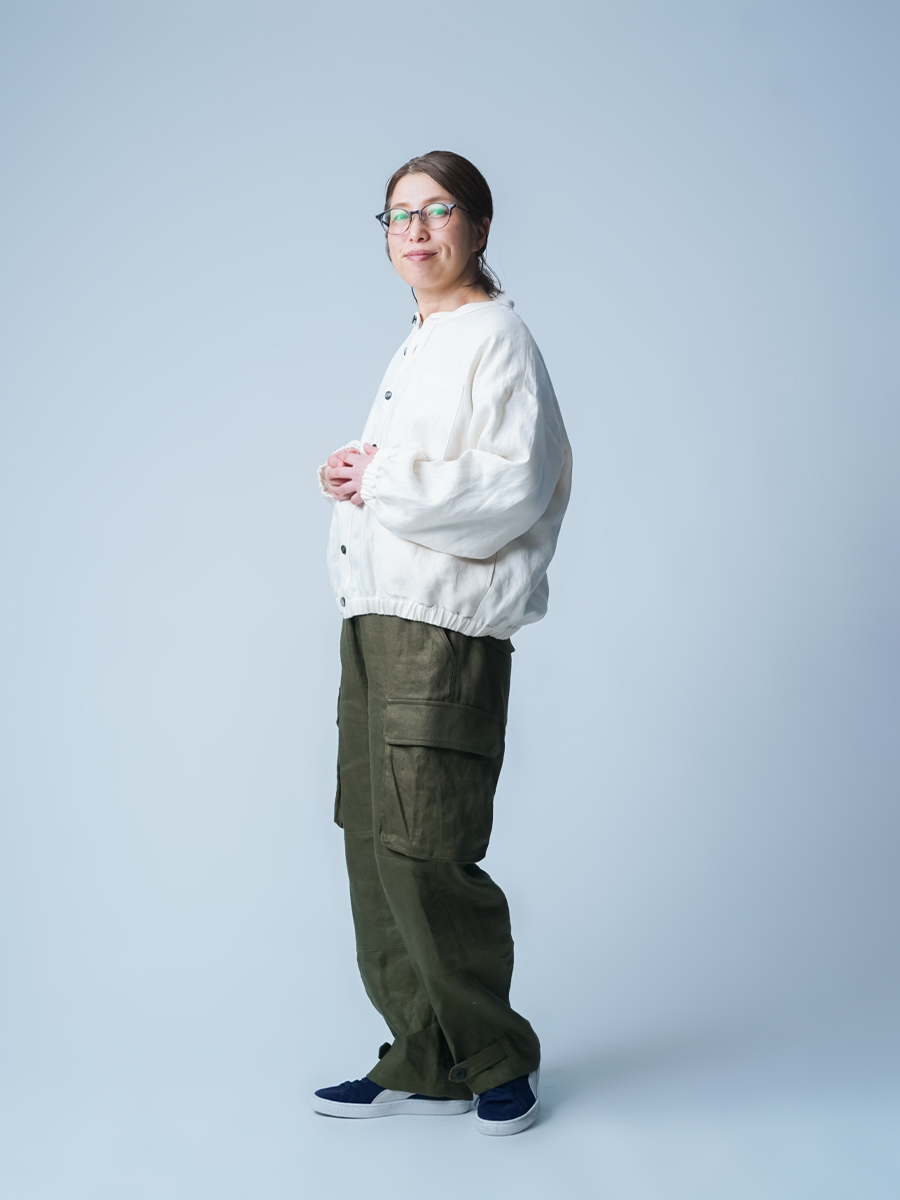 - ※生地工場の生産時期によって色味の濃淡が出ることがございます。セットアップでの着用の場合はご相談下さい。カラーリネンは最初色落ちや生地の性質上、毛羽落ちがある場合がございます。落ち着くまで数回は単品でのお洗濯を。最初は水通しをおすすめします。表面の毛羽立ちがとれて、肌への刺激が極端に少なくなります。リネン特有のネップ、節がございます。