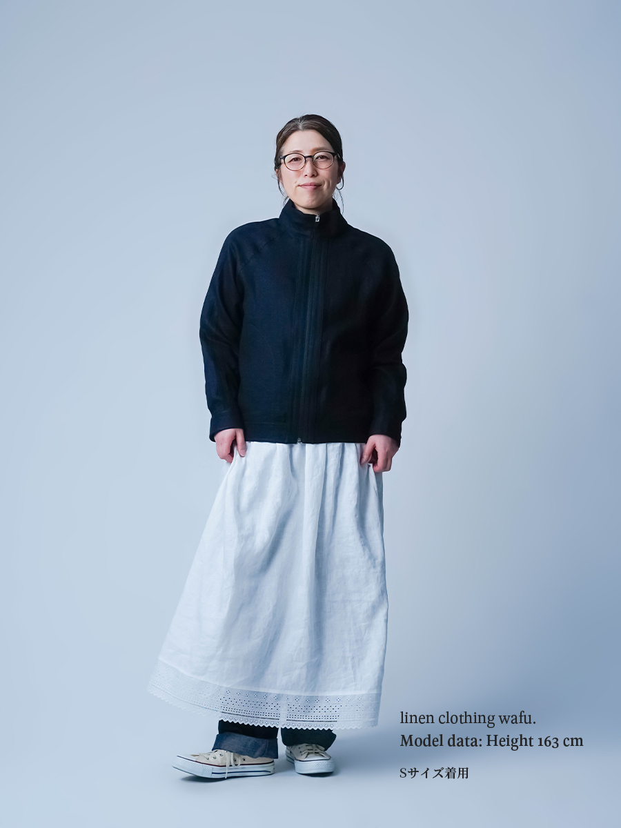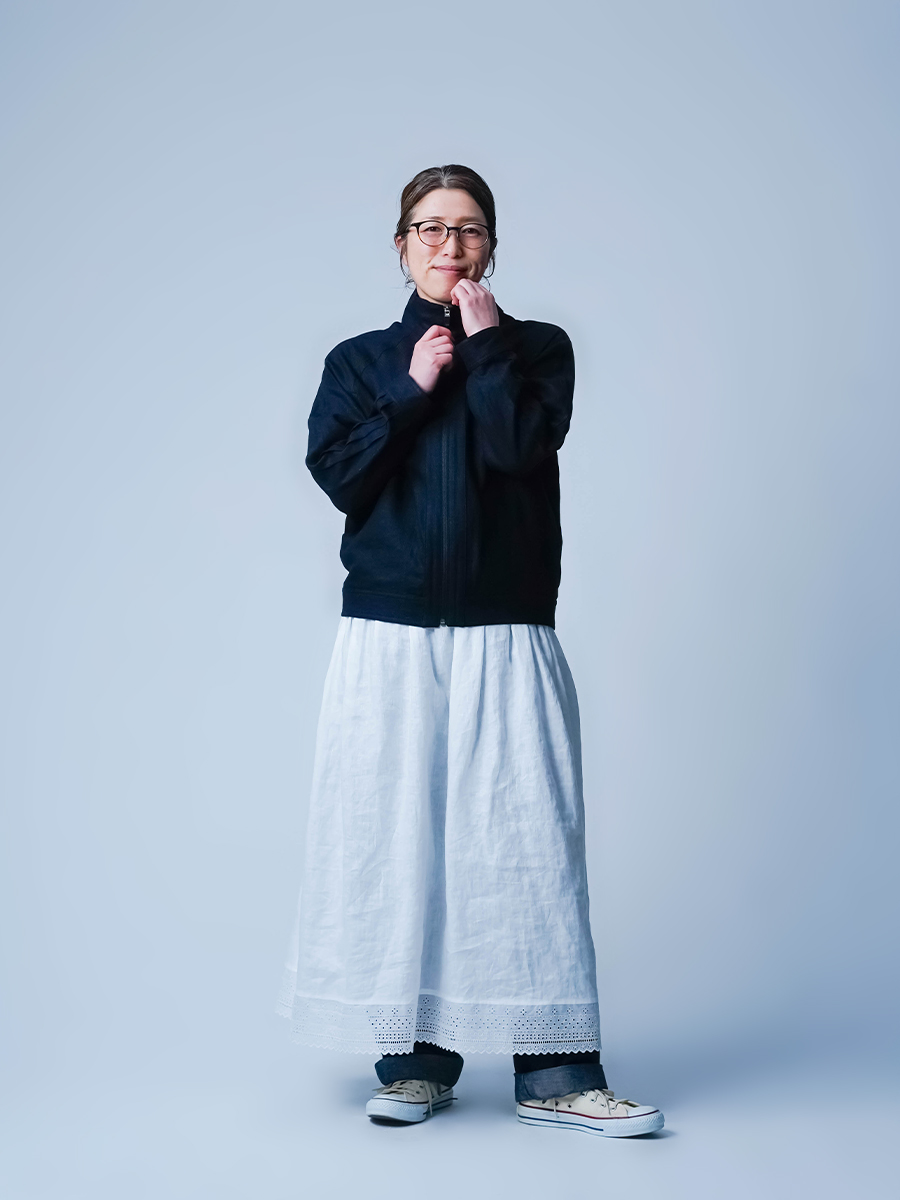 私はSサイズです。大人が胸を張って着られる究極のリネンジャージです。歳を重ねて本気のジャージを着ると、どうしても部屋着感出てしまいがちですが、ワディダスは鏡の中の自分に「YES」と言えます。背筋を伸ばしてどこへでも出かけられる。まさに、大人のための救世主です。無理をせず、でも遊び心は忘れない。懐かしの形を、最高に贅沢なリネンで作ってくれてありがとう社長。着丈は脚の付け根、袖丈は手の甲に掛かるくらい。