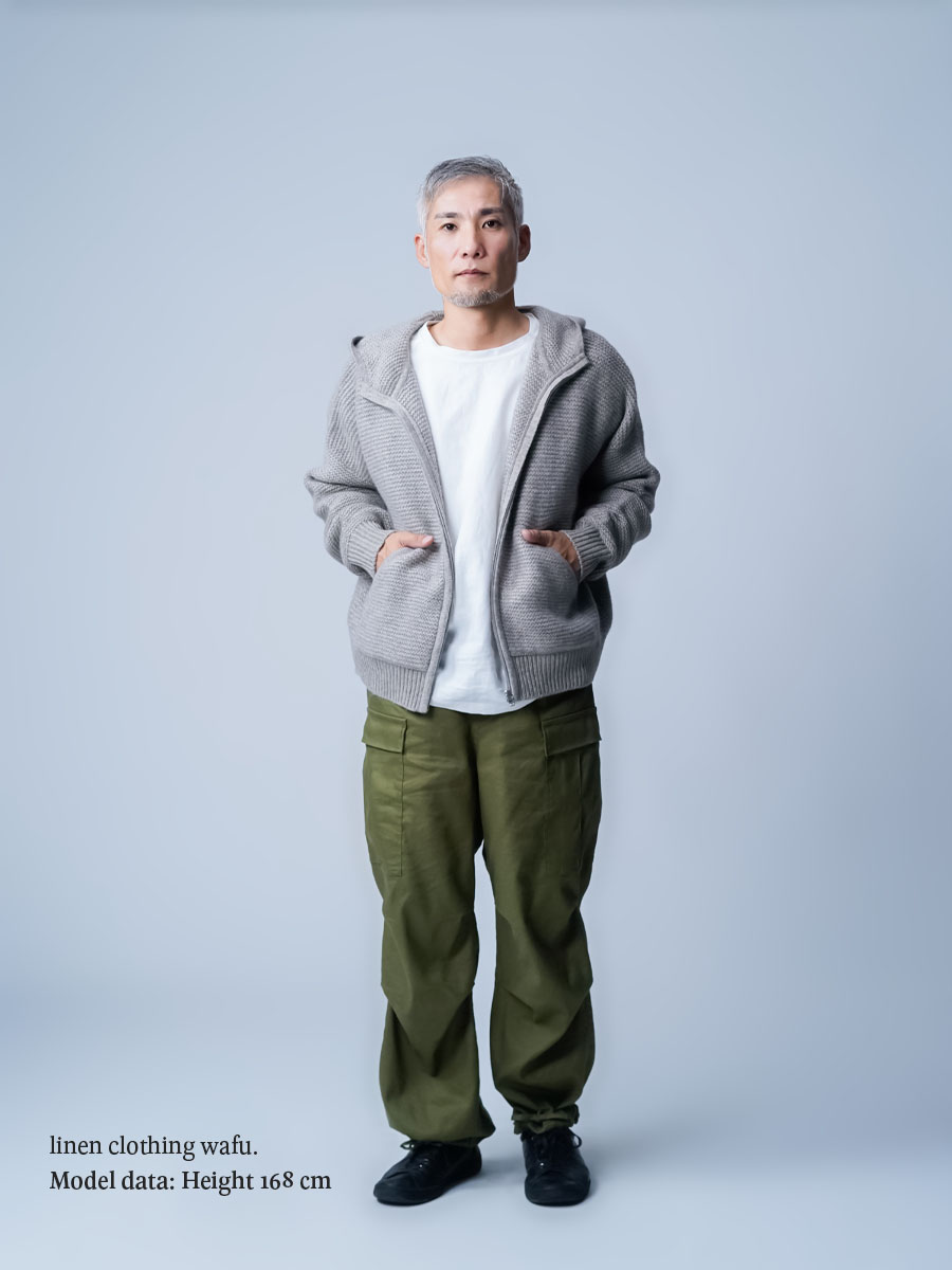 - ※生地工場の生産時期によって色味の濃淡が出ることがございます。セットアップでの着用の場合はご相談下さい。カラーリネンは最初色落ちや生地の性質上、毛羽落ちがある場合がございます。落ち着くまで数回は単品でのお洗濯を。最初は水通しをおすすめします。表面の毛羽立ちがとれて、肌への刺激が極端に少なくなります。リネン特有のネップ、節がございます。