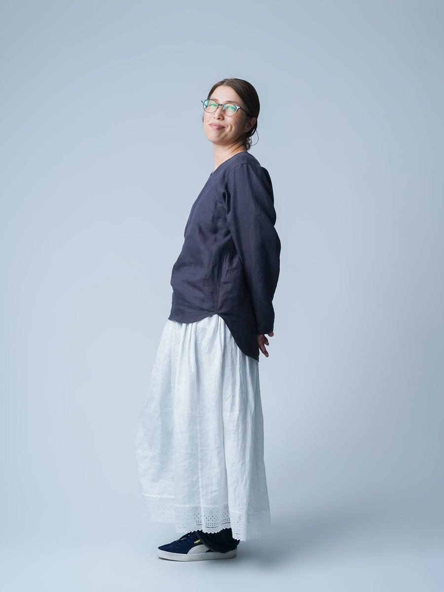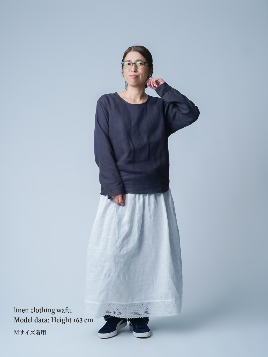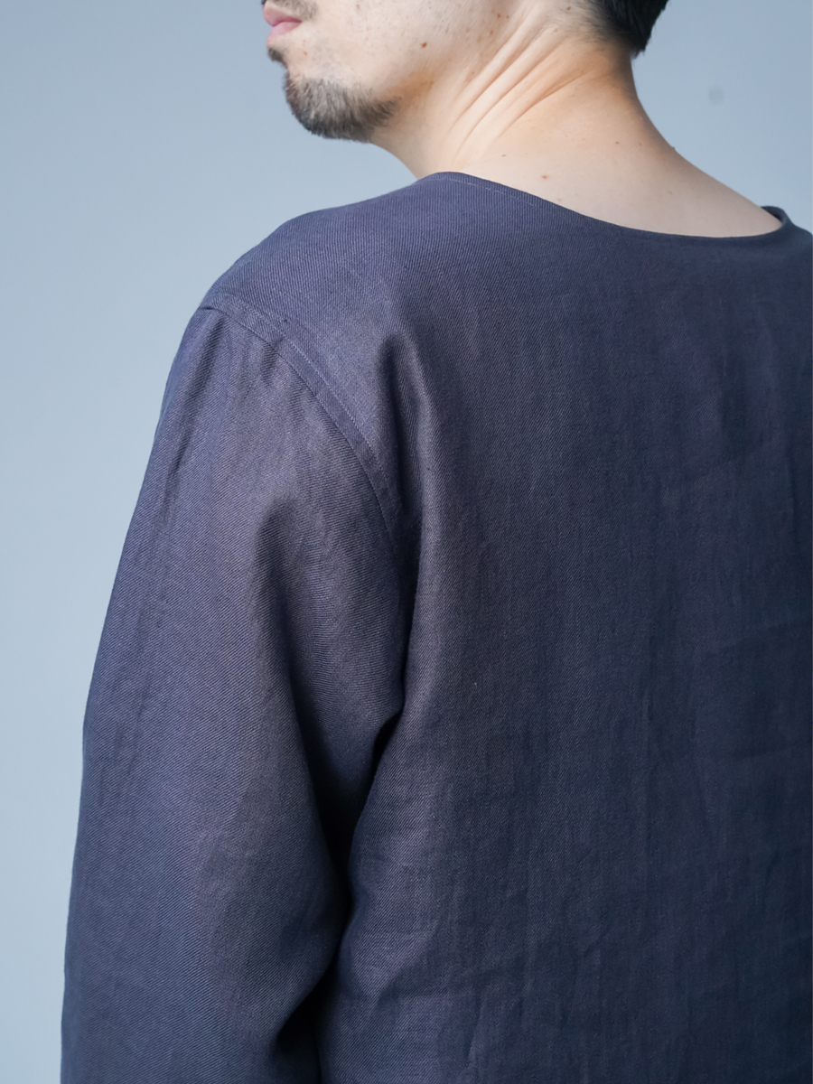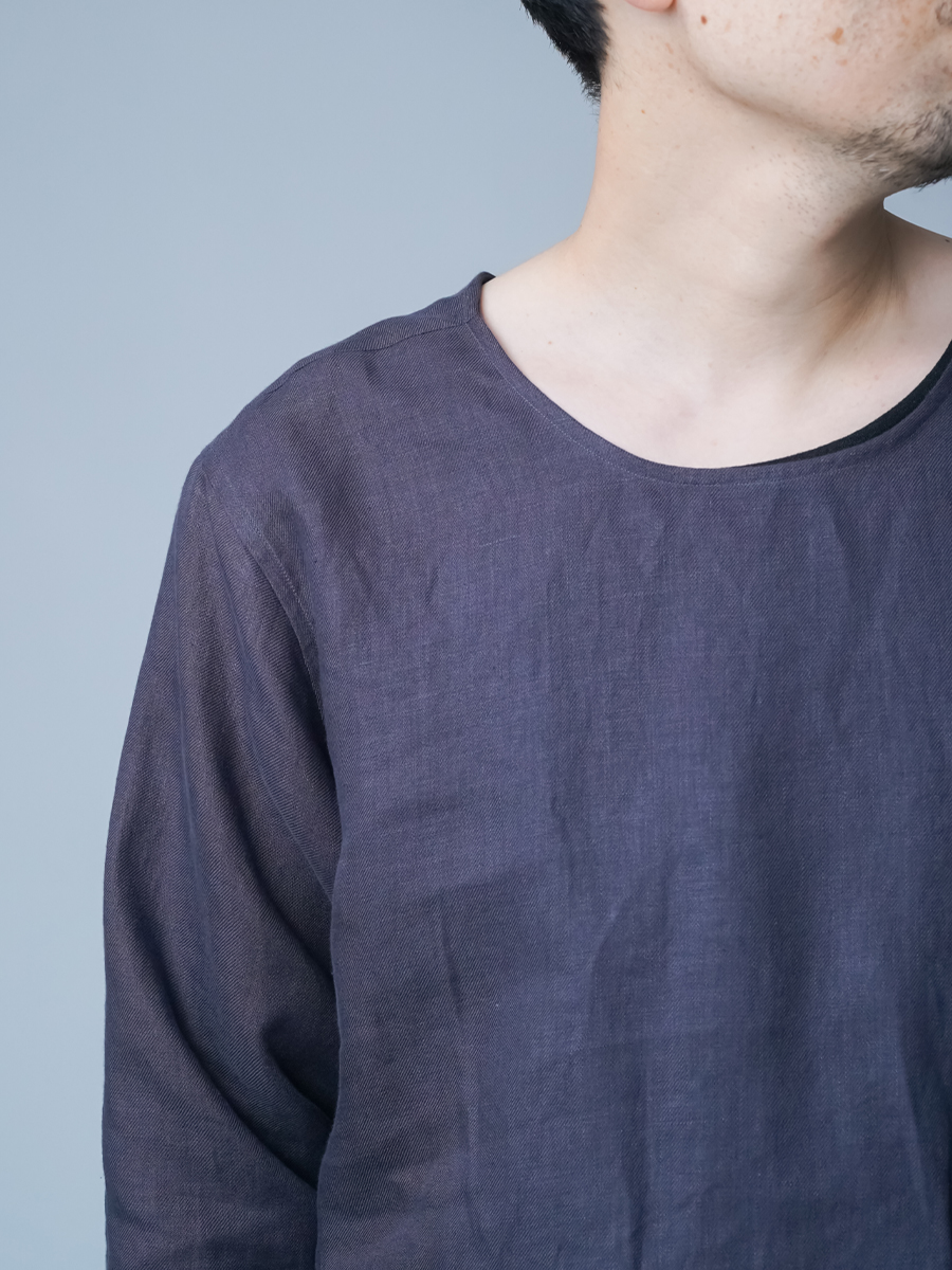 - ※生地工場の生産時期によって色味の濃淡が出ることがございます。セットアップでの着用の場合はご相談下さい。カラーリネンは最初色落ちや生地の性質上、毛羽落ちがある場合がございます。落ち着くまで数回は単品でのお洗濯を。最初は水通しをおすすめします。表面の毛羽立ちがとれて、肌への刺激が極端に少なくなります。リネン特有のネップ、節がございます。