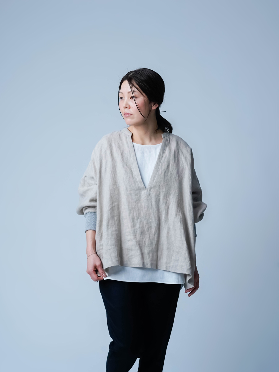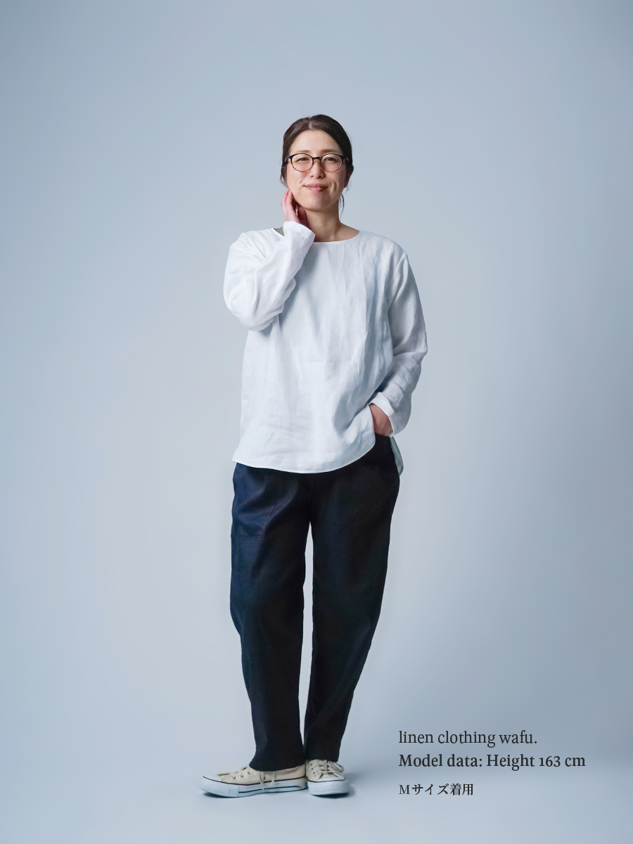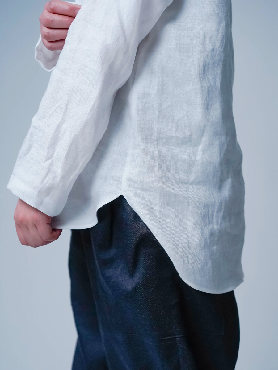 - ※生地工場の生産時期によって色味の濃淡が出ることがございます。セットアップでの着用の場合はご相談下さい。カラーリネンは最初色落ちや生地の性質上、毛羽落ちがある場合がございます。落ち着くまで数回は単品でのお洗濯を。最初は水通しをおすすめします。表面の毛羽立ちがとれて、肌への刺激が極端に少なくなります。リネン特有のネップ、節がございます。