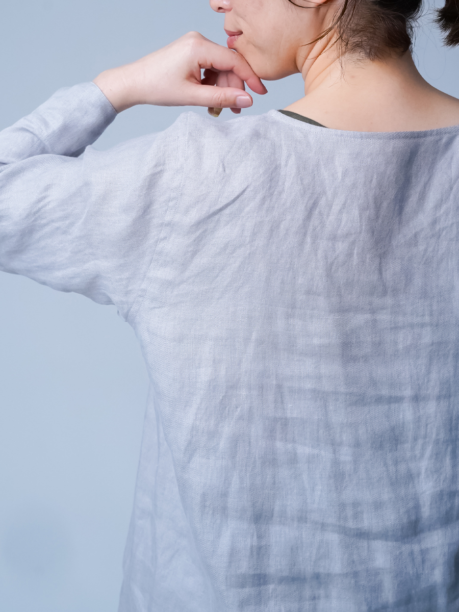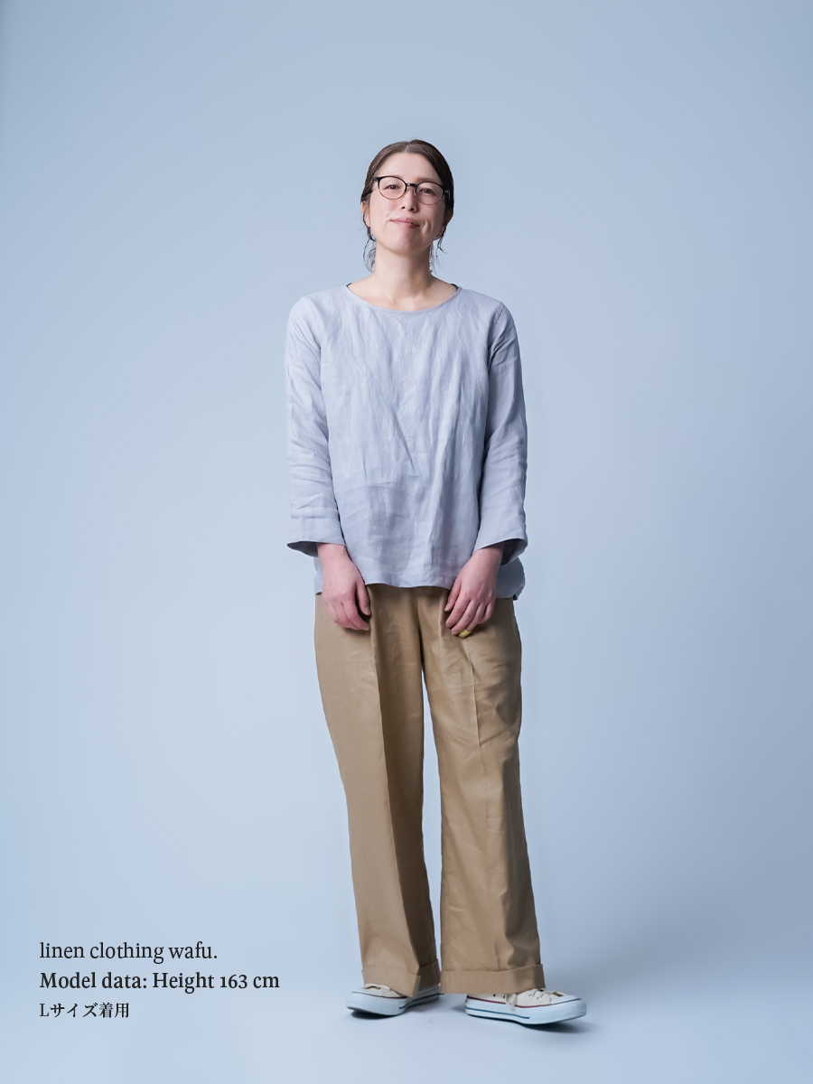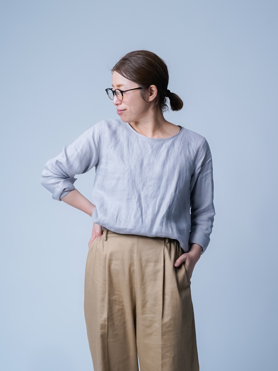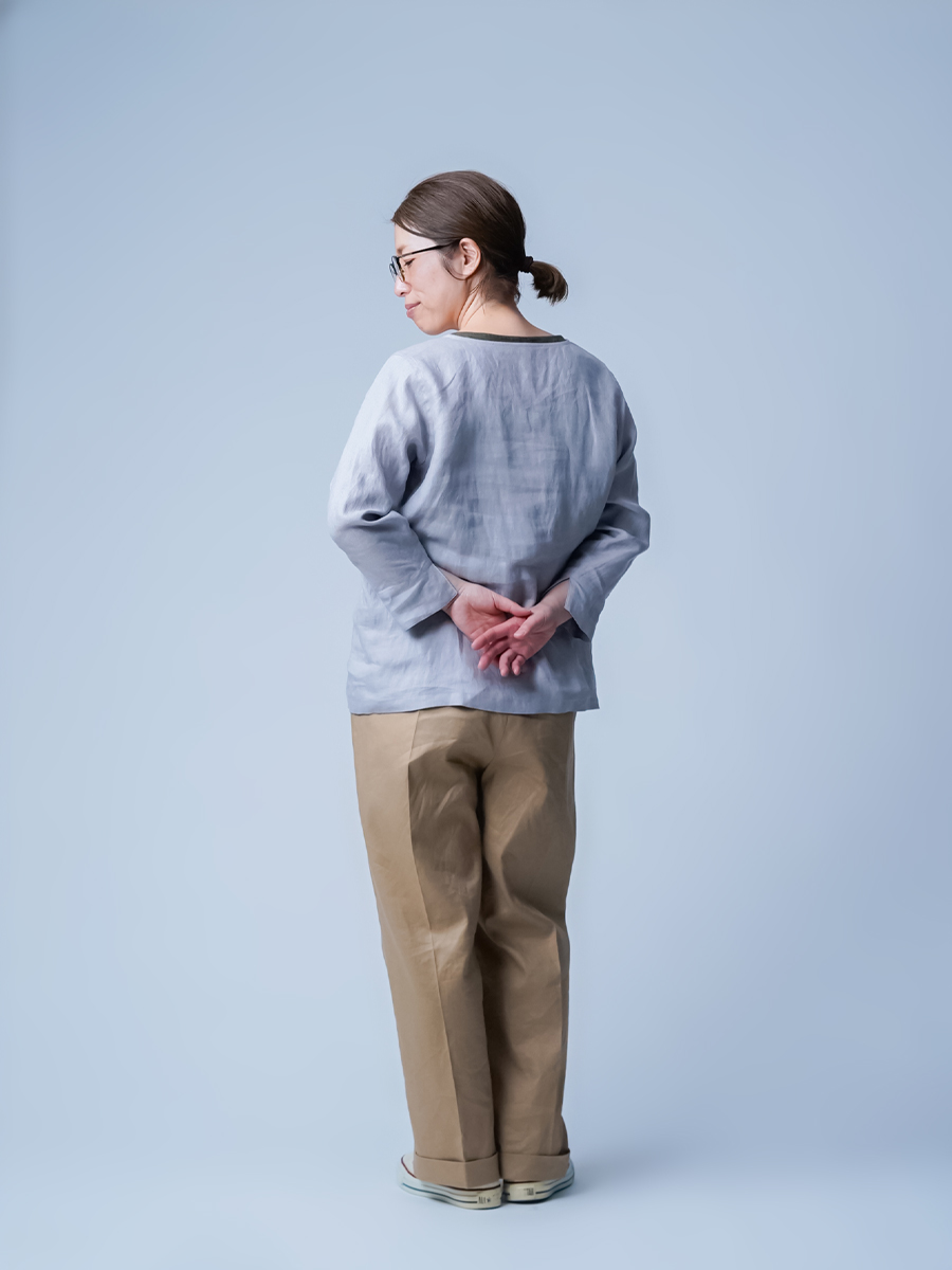 - ※生地工場の生産時期によって色味の濃淡が出ることがございます。セットアップでの着用の場合はご相談下さい。カラーリネンは最初色落ちや生地の性質上、毛羽落ちがある場合がございます。落ち着くまで数回は単品でのお洗濯を。最初は水通しをおすすめします。表面の毛羽立ちがとれて、肌への刺激が極端に少なくなります。リネン特有のネップ、節がございます。