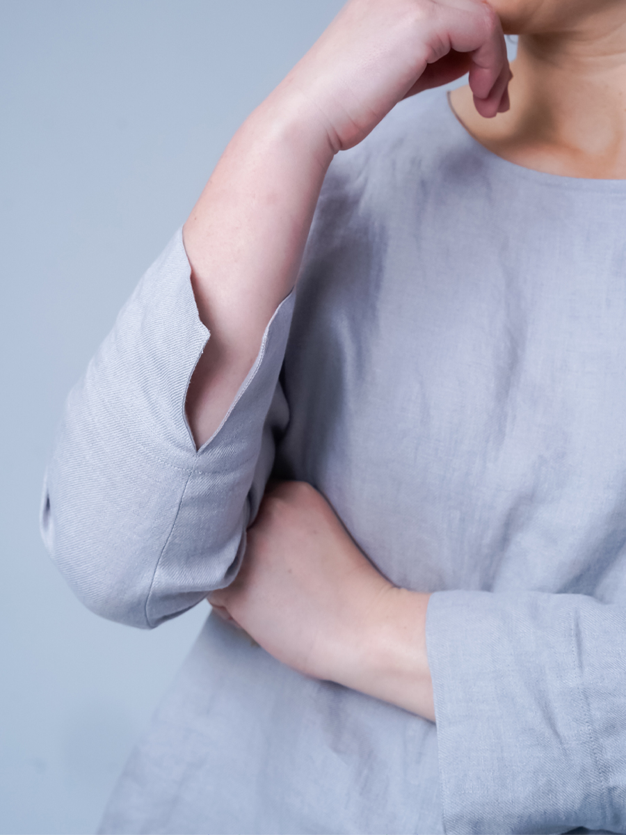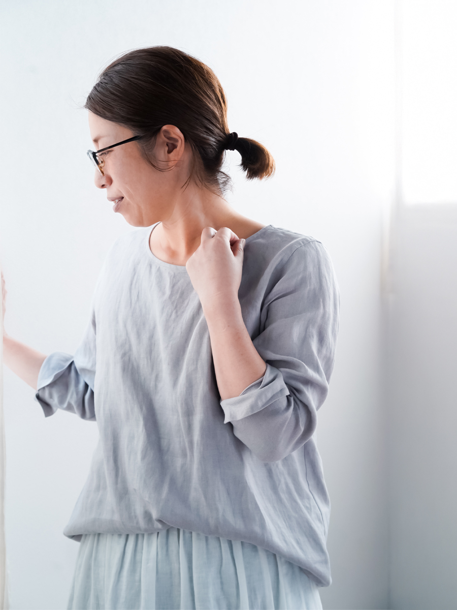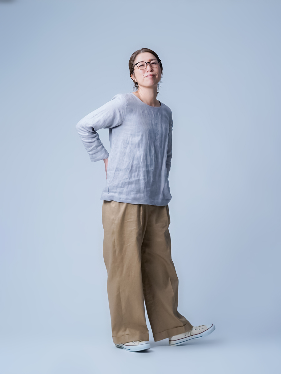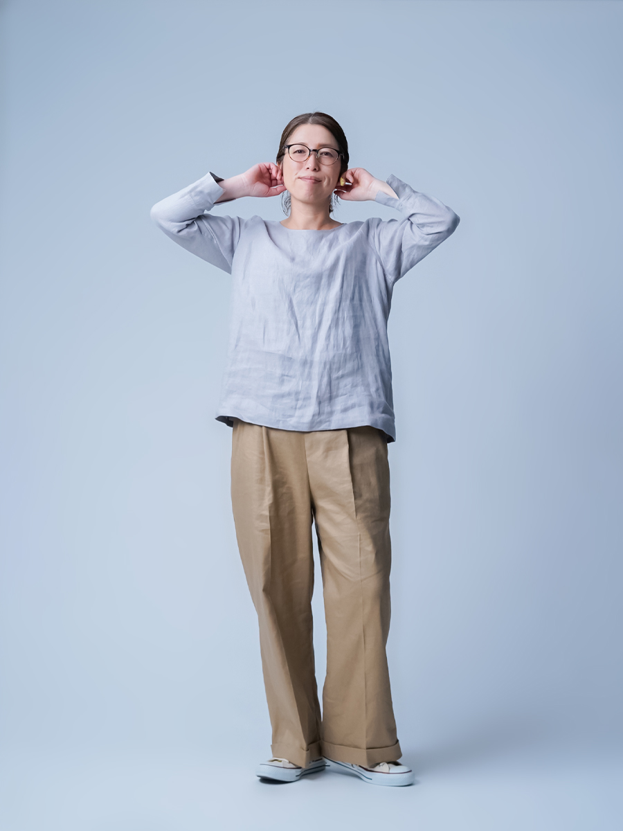 - ※生地工場の生産時期によって色味の濃淡が出ることがございます。セットアップでの着用の場合はご相談下さい。カラーリネンは最初色落ちや生地の性質上、毛羽落ちがある場合がございます。落ち着くまで数回は単品でのお洗濯を。最初は水通しをおすすめします。表面の毛羽立ちがとれて、肌への刺激が極端に少なくなります。リネン特有のネップ、節がございます。