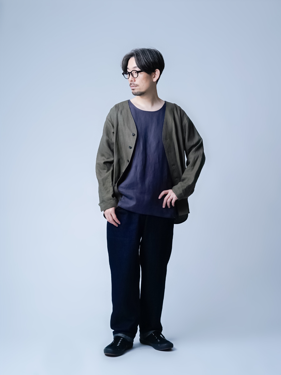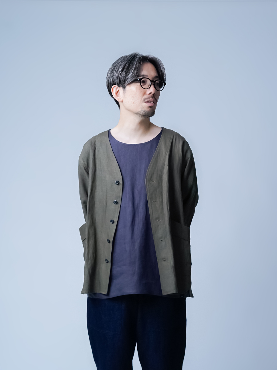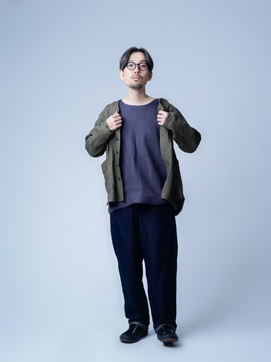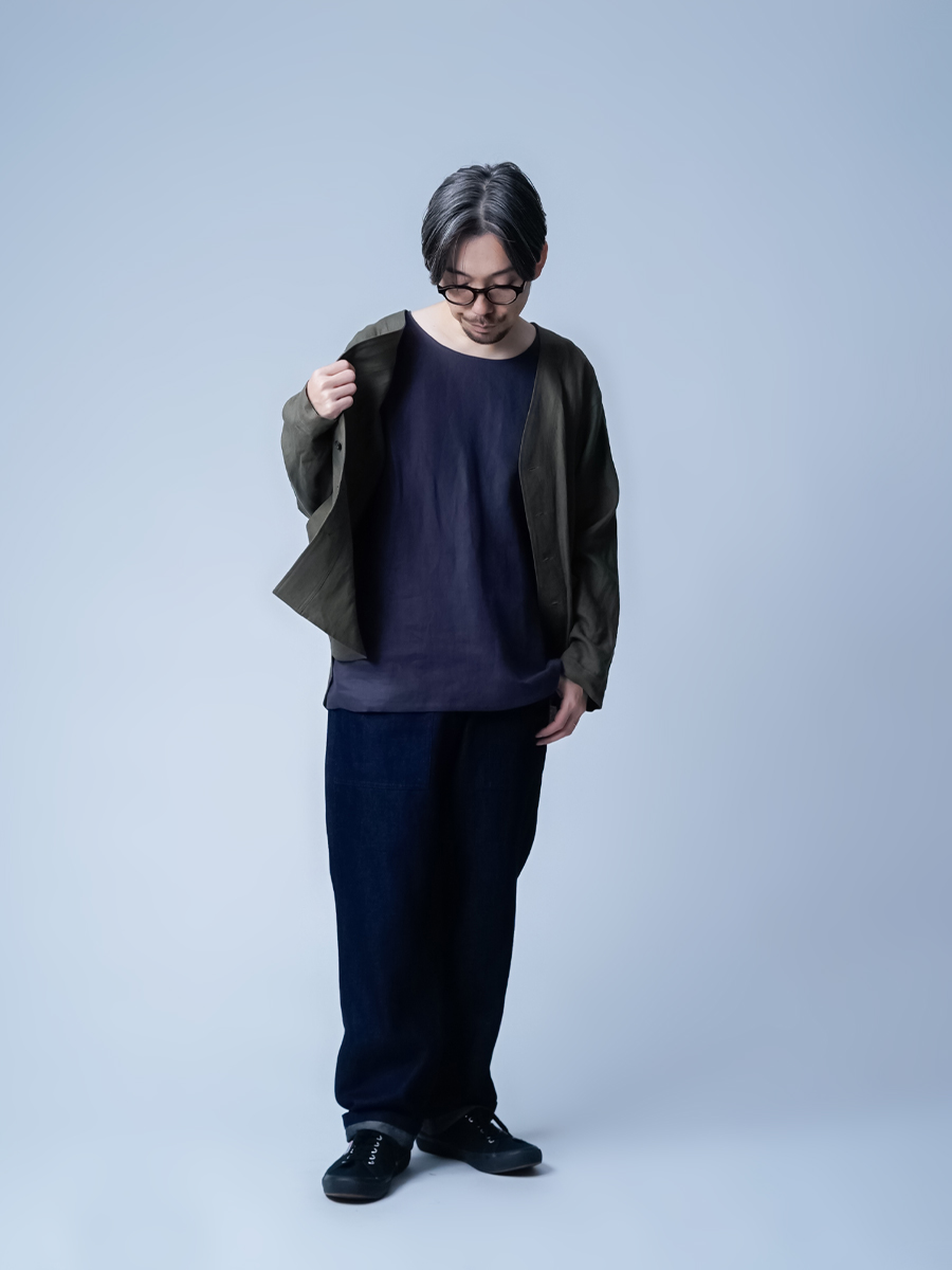 - ※生地工場の生産時期によって色味の濃淡が出ることがございます。セットアップでの着用の場合はご相談下さい。カラーリネンは最初色落ちや生地の性質上、毛羽落ちがある場合がございます。落ち着くまで数回は単品でのお洗濯を。最初は水通しをおすすめします。表面の毛羽立ちがとれて、肌への刺激が極端に少なくなります。リネン特有のネップ、節がございます。