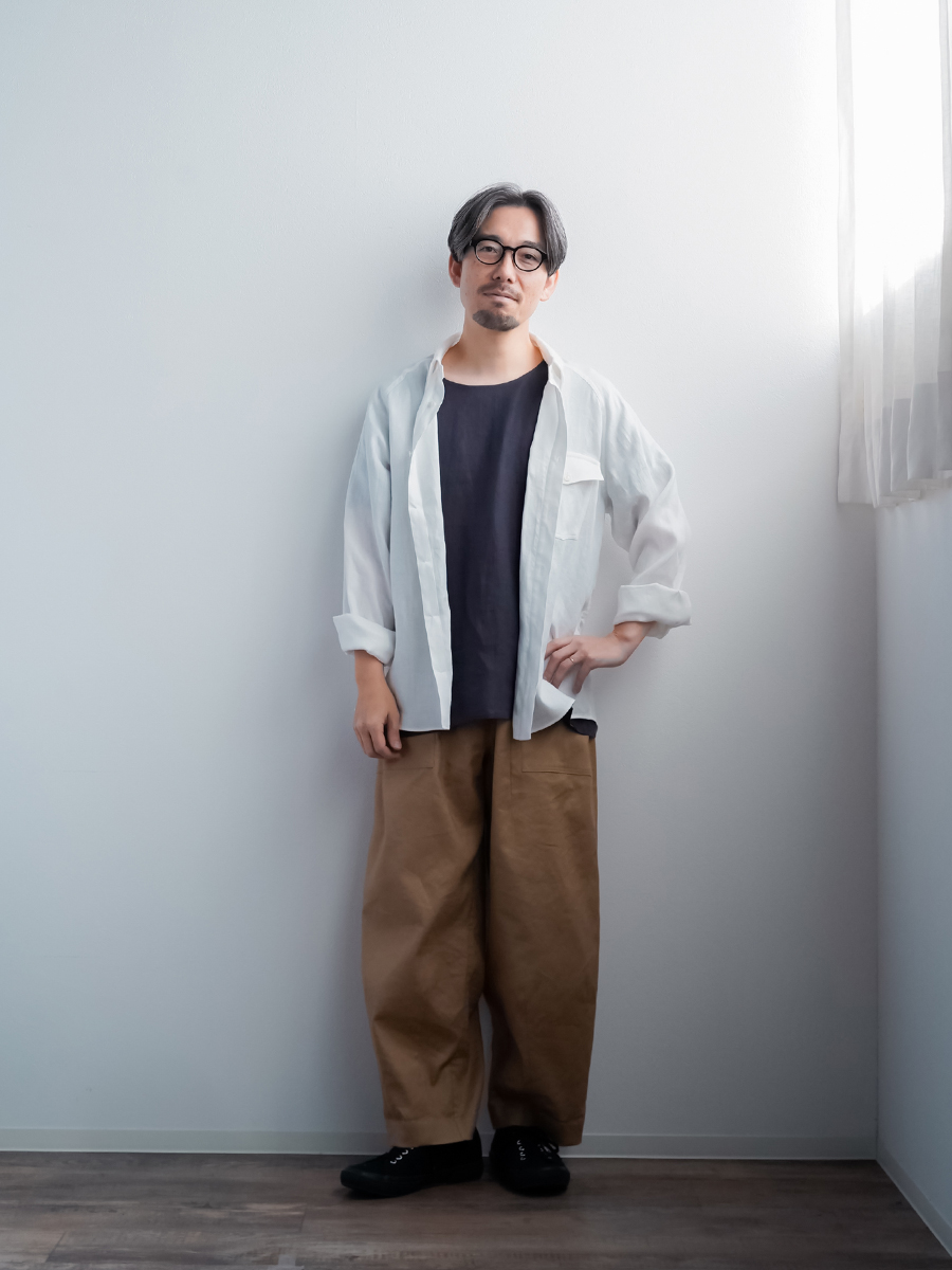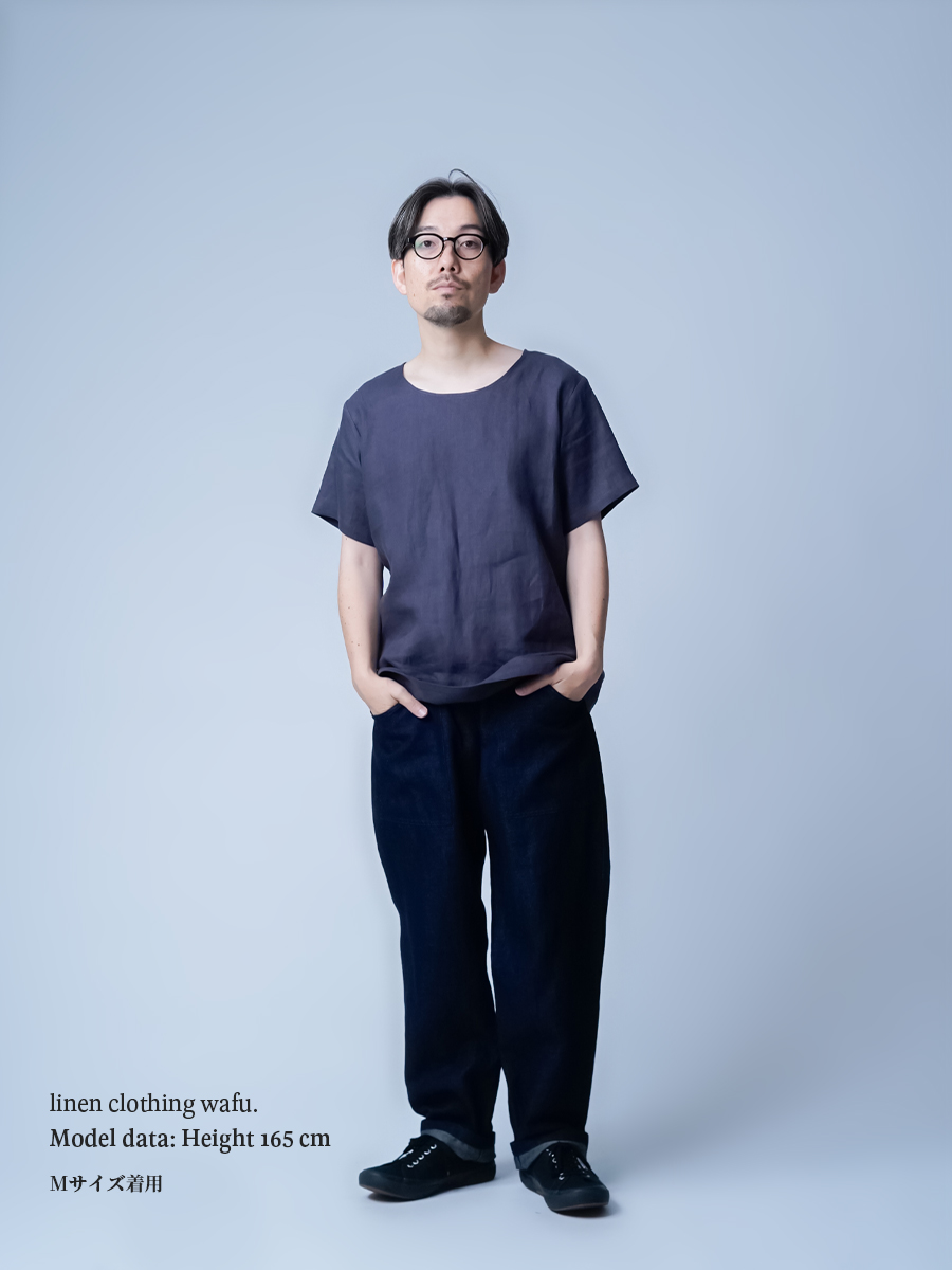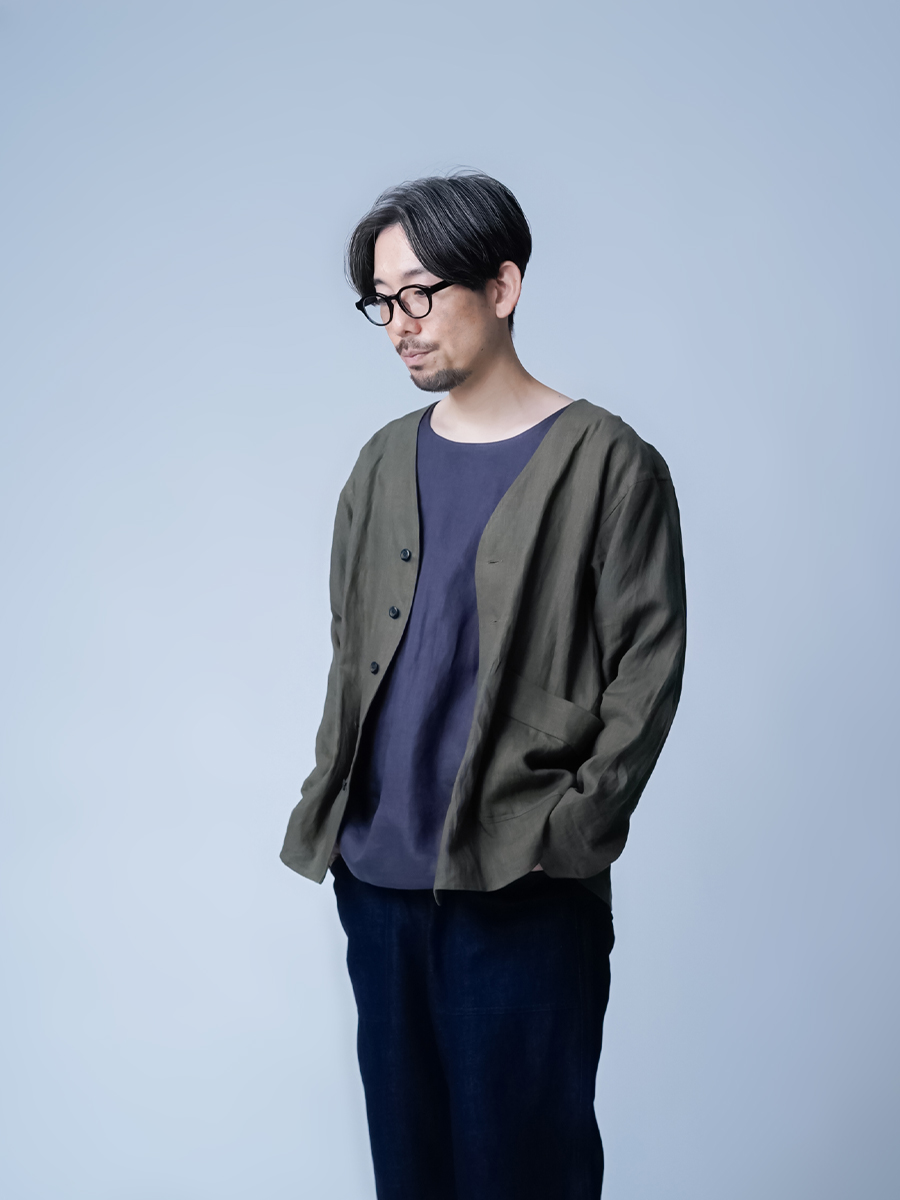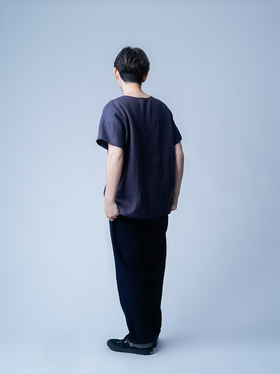 - ※生地工場の生産時期によって色味の濃淡が出ることがございます。セットアップでの着用の場合はご相談下さい。カラーリネンは最初色落ちや生地の性質上、毛羽落ちがある場合がございます。落ち着くまで数回は単品でのお洗濯を。最初は水通しをおすすめします。表面の毛羽立ちがとれて、肌への刺激が極端に少なくなります。リネン特有のネップ、節がございます。