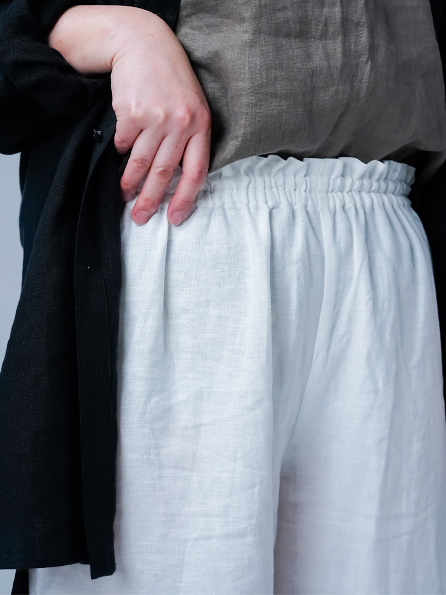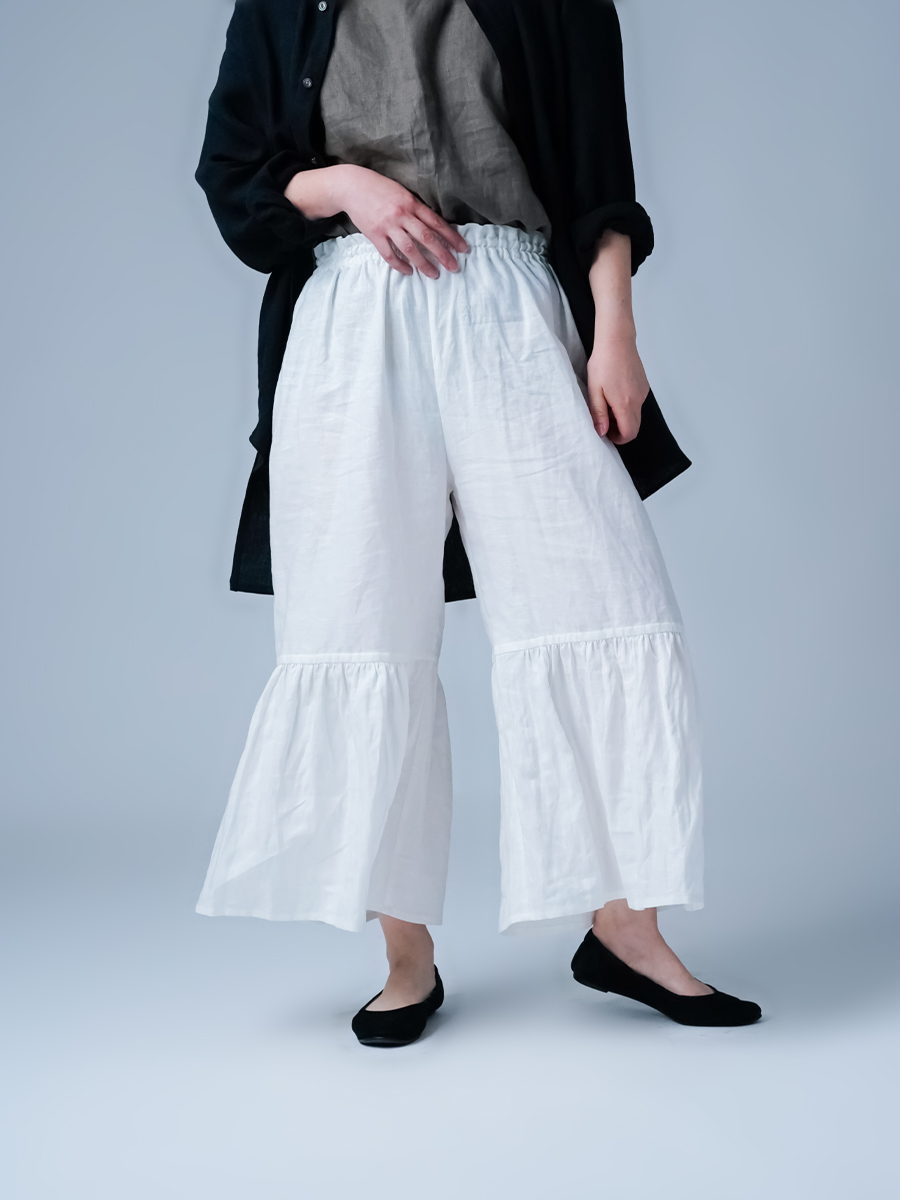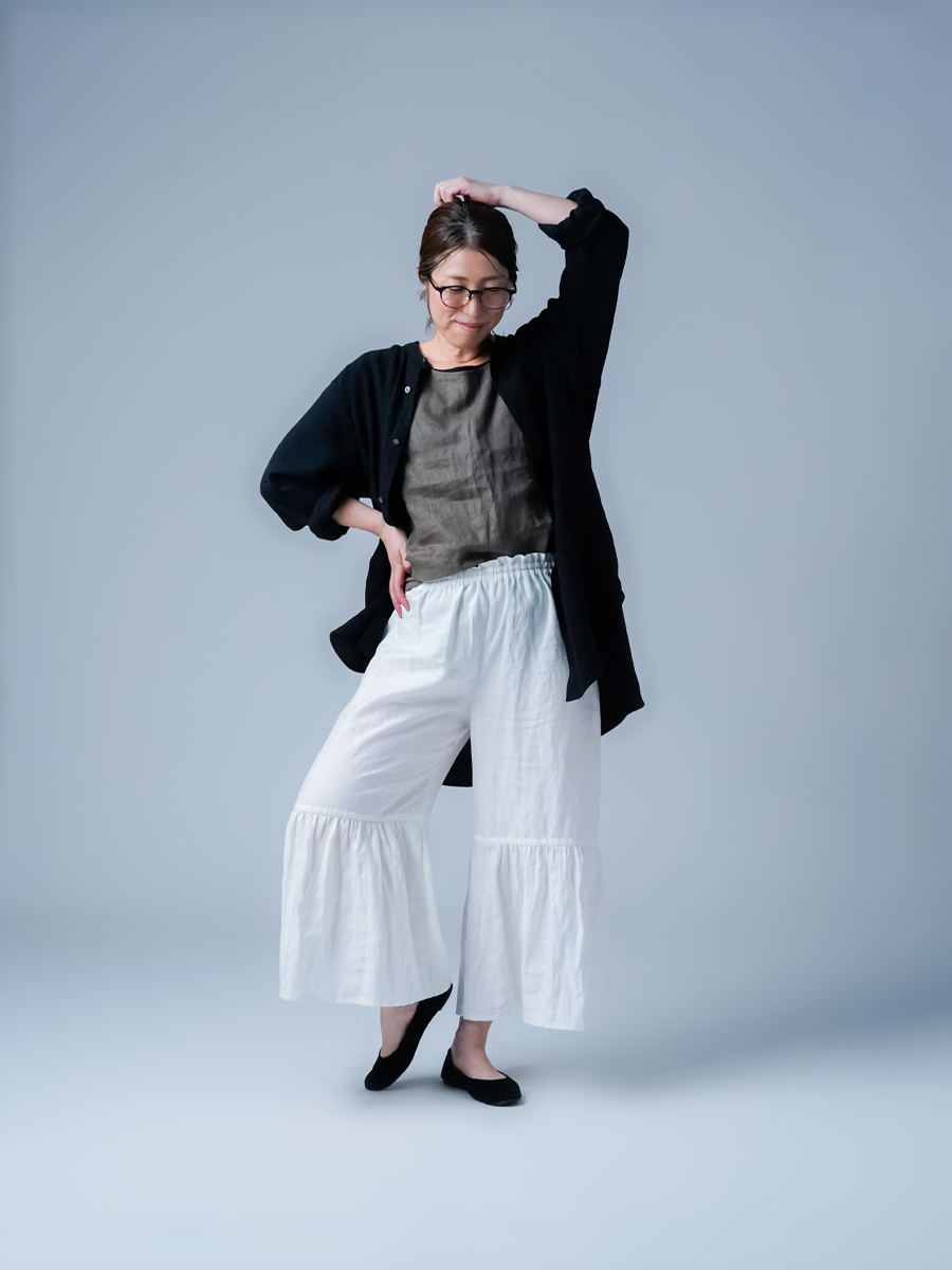 - ※生地工場の生産時期によって色味の濃淡が出ることがございます。セットアップでの着用の場合はご相談下さい。カラーリネンは最初色落ちや生地の性質上、毛羽落ちがある場合がございます。落ち着くまで数回は単品でのお洗濯を。最初は水通しをおすすめします。表面の毛羽立ちがとれて、肌への刺激が極端に少なくなります。リネン特有のネップ、節がございます。
