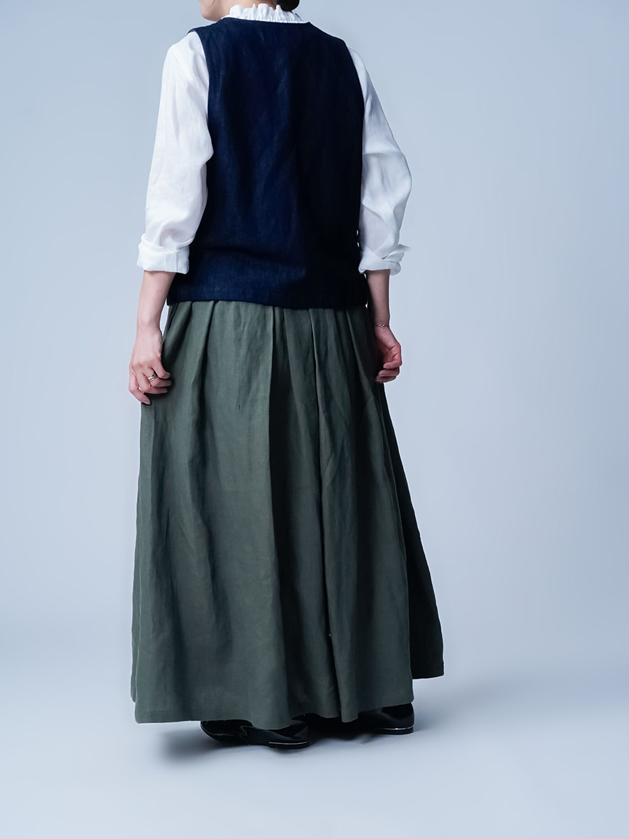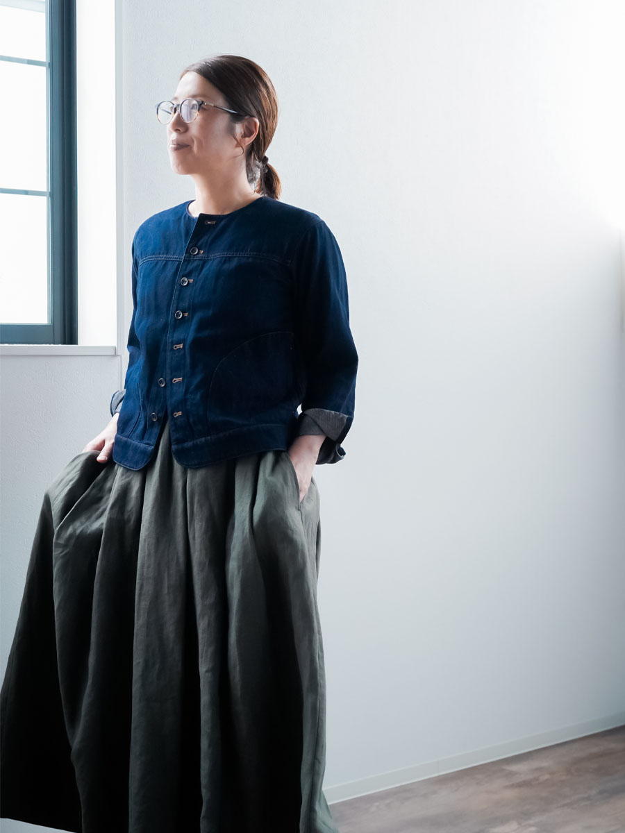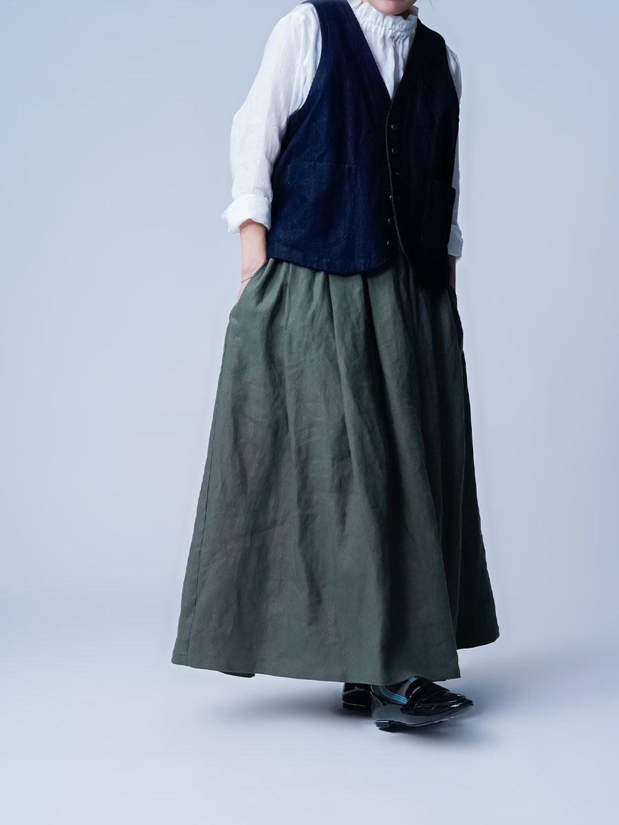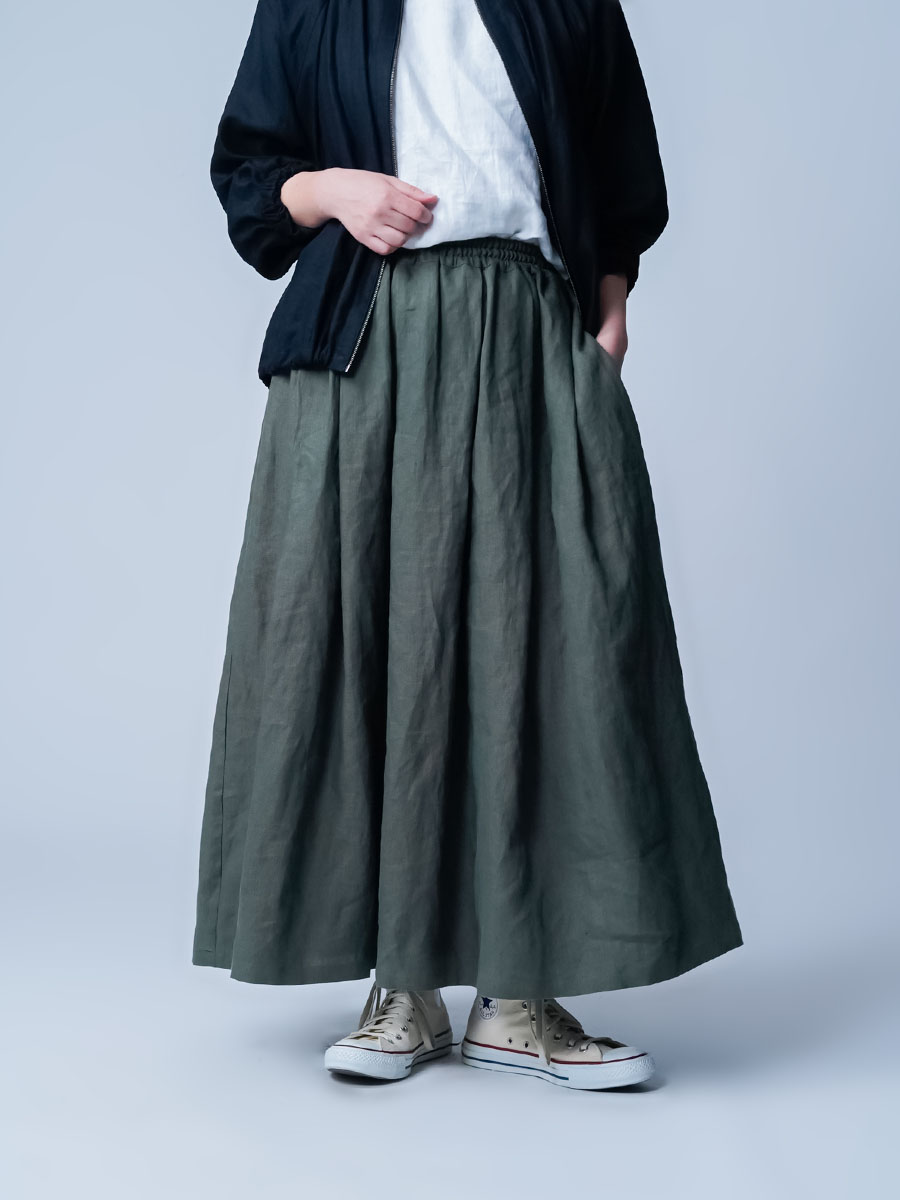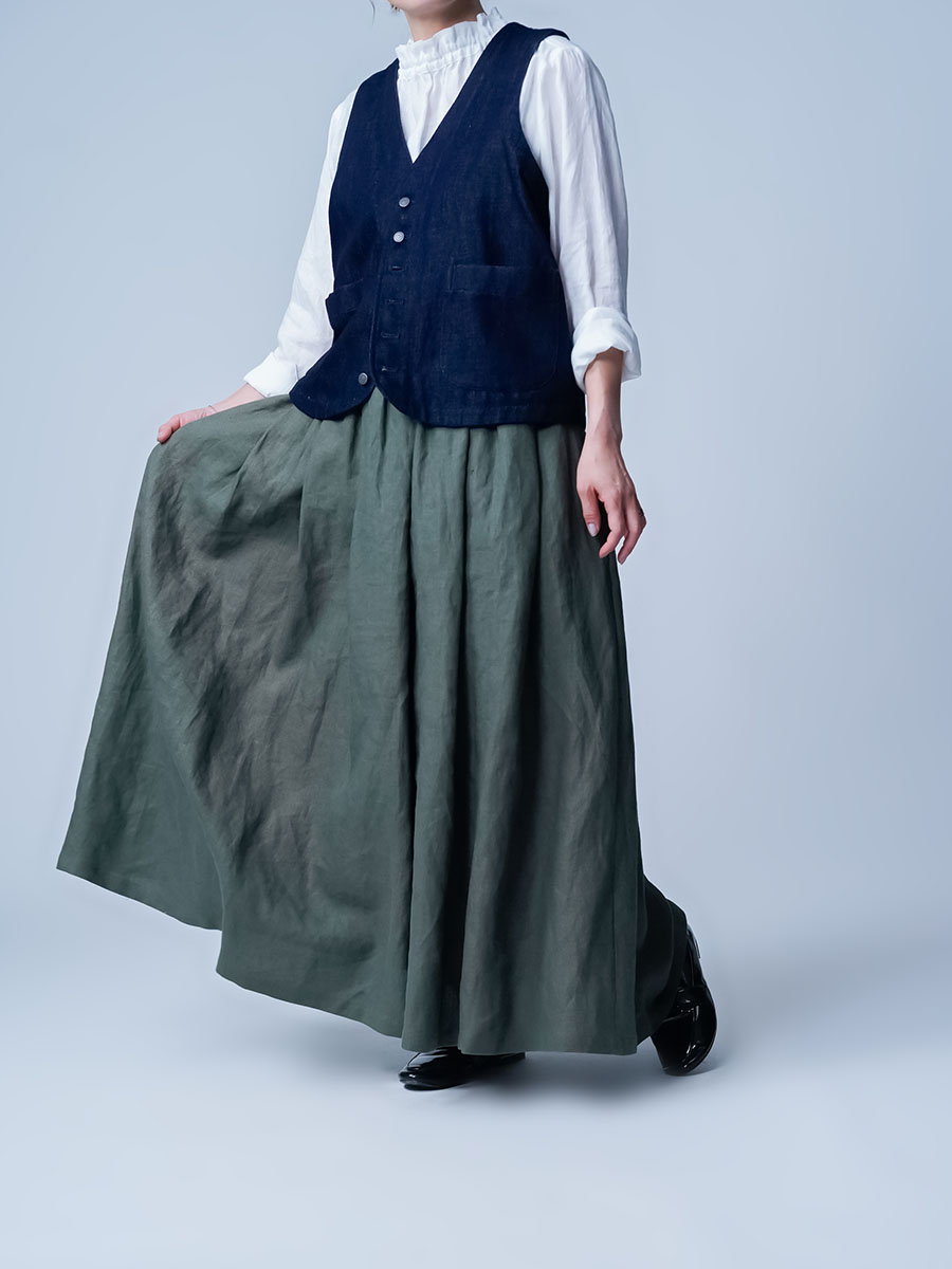 - ※生地工場の生産時期によって色味の濃淡が出ることがございます。セットアップでの着用の場合はご相談下さい。カラーリネンは最初色落ちや生地の性質上、毛羽落ちがある場合がございます。落ち着くまで数回は単品でのお洗濯を。最初は水通しをおすすめします。表面の毛羽立ちがとれて、肌への刺激が極端に少なくなります。リネン特有のネップ、節がございます。