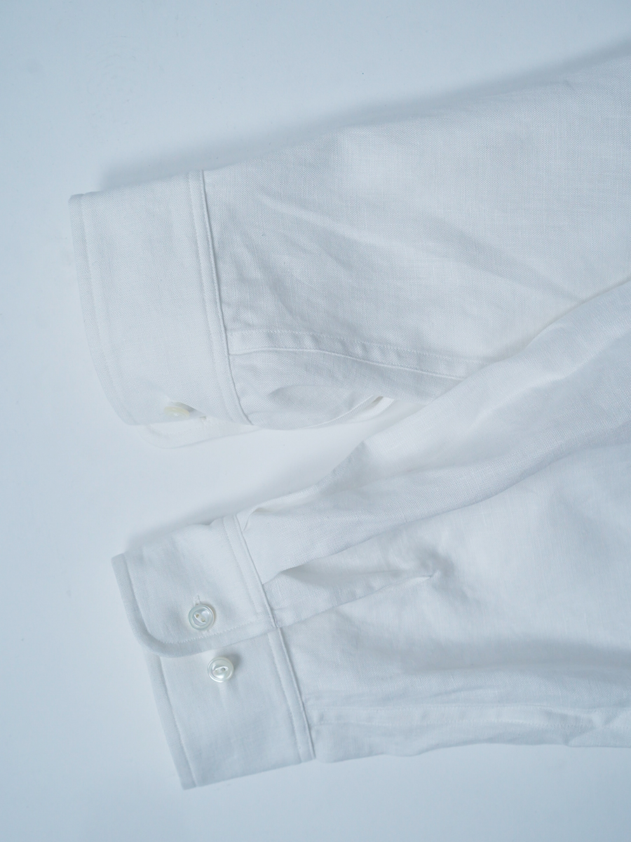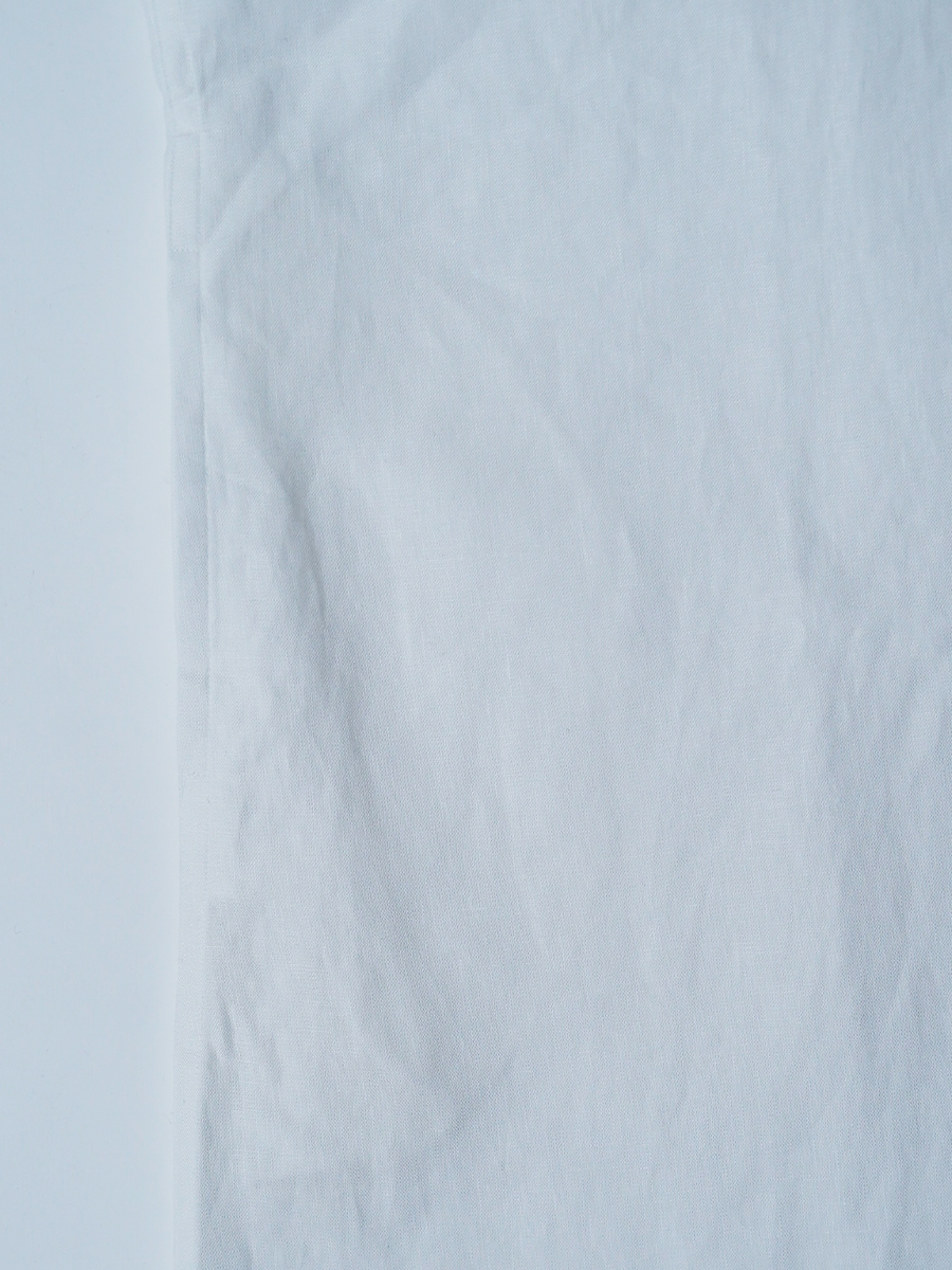 - ※生地工場の生産時期によって色味の濃淡が出ることがございます。セットアップでの着用の場合はご相談下さい。カラーリネンは最初色落ちや生地の性質上、毛羽落ちがある場合がございます。落ち着くまで数回は単品でのお洗濯を。最初は水通しをおすすめします。表面の毛羽立ちがとれて、肌への刺激が極端に少なくなります。リネン特有のネップ、節がございます。