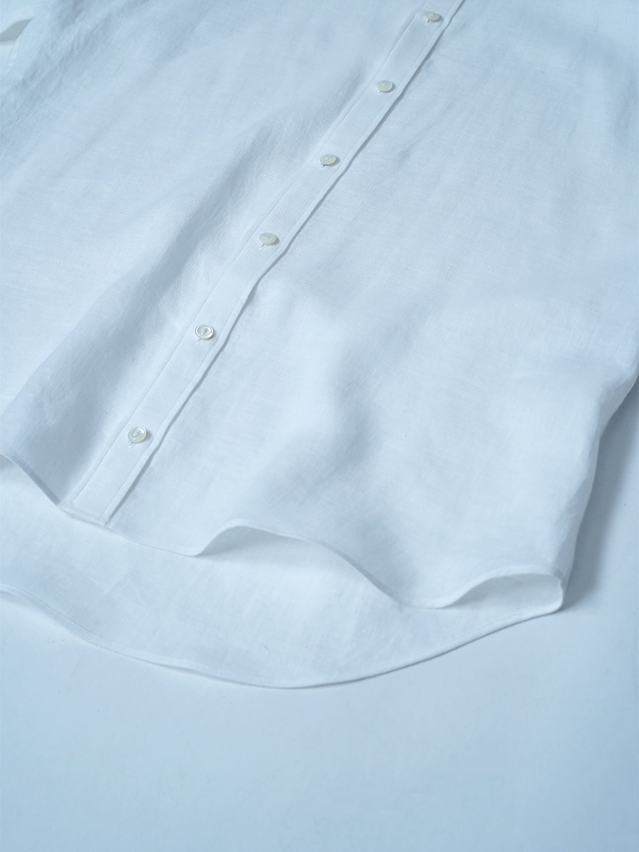 - ※生地工場の生産時期によって色味の濃淡が出ることがございます。セットアップでの着用の場合はご相談下さい。カラーリネンは最初色落ちや生地の性質上、毛羽落ちがある場合がございます。落ち着くまで数回は単品でのお洗濯を。最初は水通しをおすすめします。表面の毛羽立ちがとれて、肌への刺激が極端に少なくなります。リネン特有のネップ、節がございます。