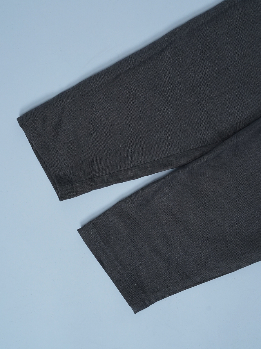 - ※生地工場の生産時期によって色味の濃淡が出ることがございます。セットアップでの着用の場合はご相談下さい。カラーリネンは最初色落ちや生地の性質上、毛羽落ちがある場合がございます。落ち着くまで数回は単品でのお洗濯を。最初は水通しをおすすめします。表面の毛羽立ちがとれて、肌への刺激が極端に少なくなります。リネン特有のネップ、節がございます。