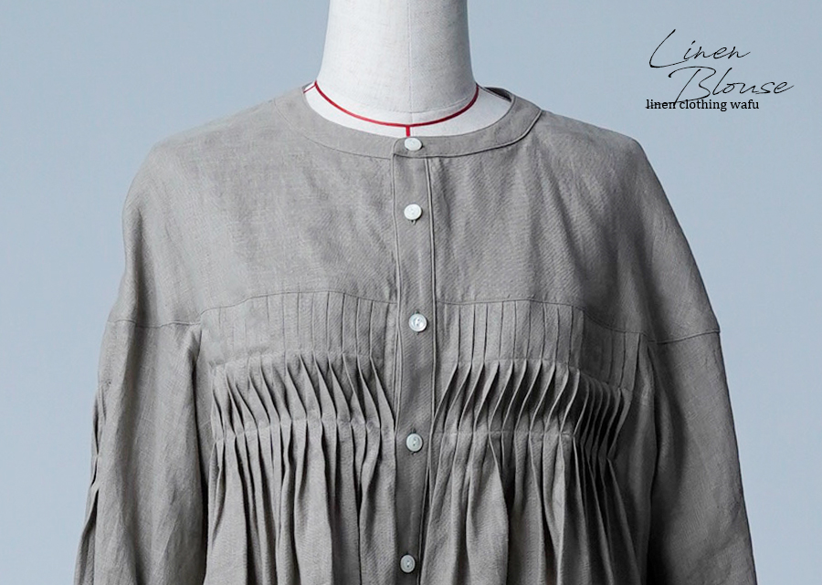 - ※生地工場の生産時期によって色味の濃淡が出ることがございます。セットアップでの着用の場合はご相談下さい。カラーリネンは最初色落ちや生地の性質上、毛羽落ちがある場合がございます。落ち着くまで数回は単品でのお洗濯を。最初は水通しをおすすめします。表面の毛羽立ちがとれて、肌への刺激が極端に少なくなります。リネン特有のネップ、節がございます。