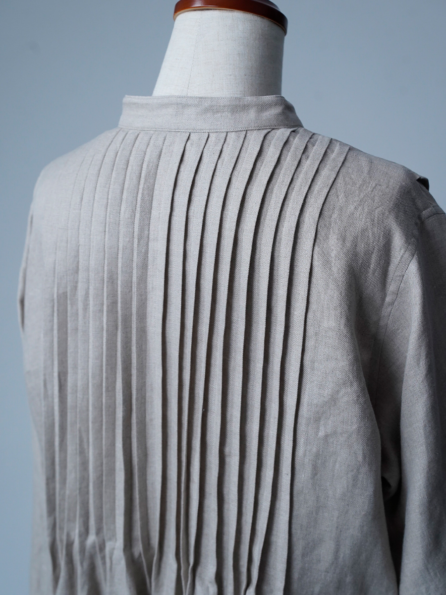 - ※生地工場の生産時期によって色味の濃淡が出ることがございます。セットアップでの着用の場合はご相談下さい。カラーリネンは最初色落ちや生地の性質上、毛羽落ちがある場合がございます。落ち着くまで数回は単品でのお洗濯を。最初は水通しをおすすめします。表面の毛羽立ちがとれて、肌への刺激が極端に少なくなります。リネン特有のネップ、節がございます。
