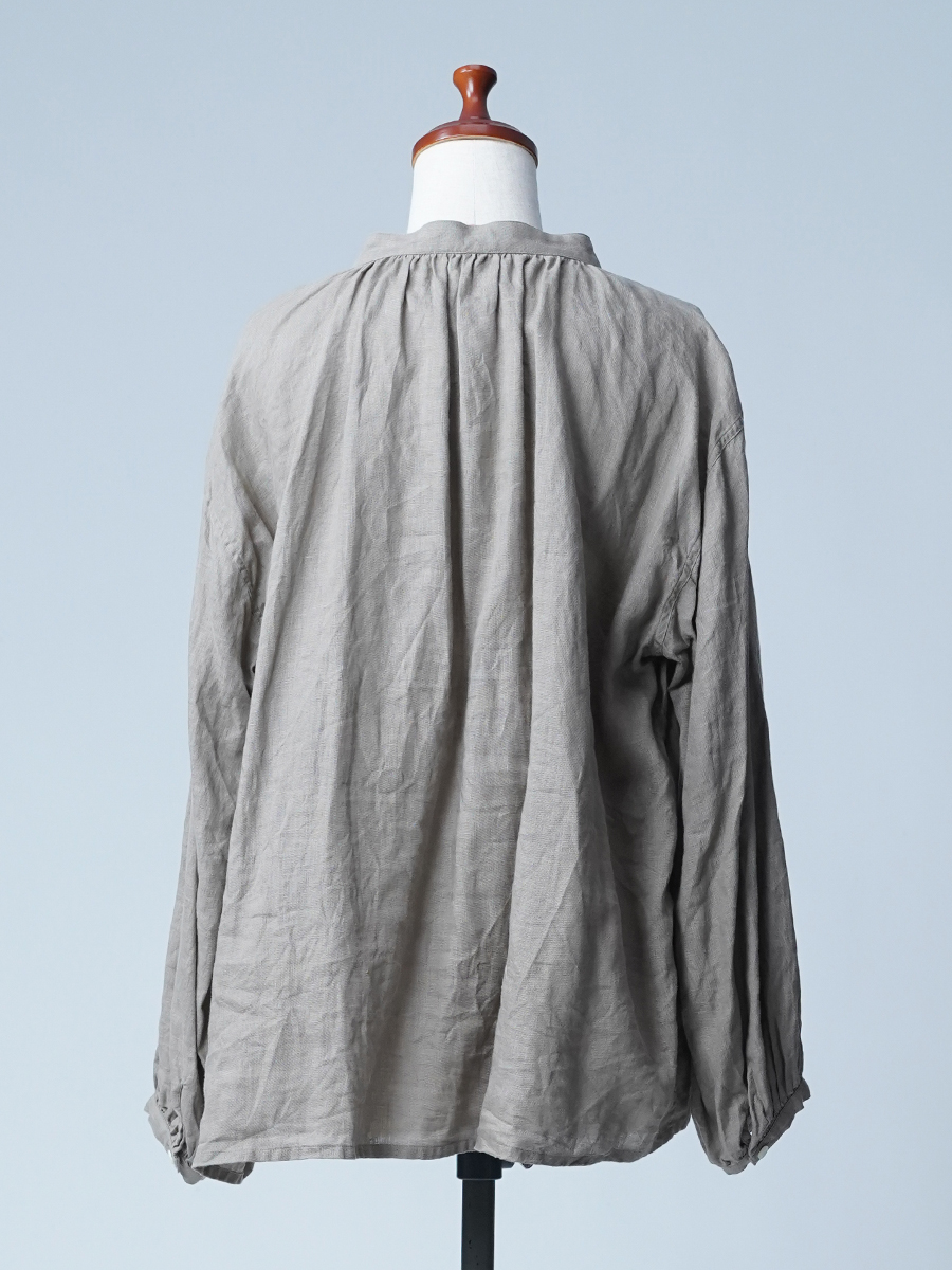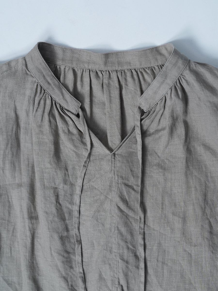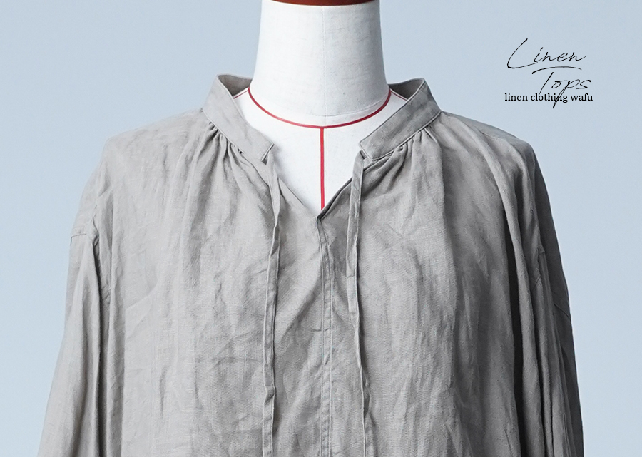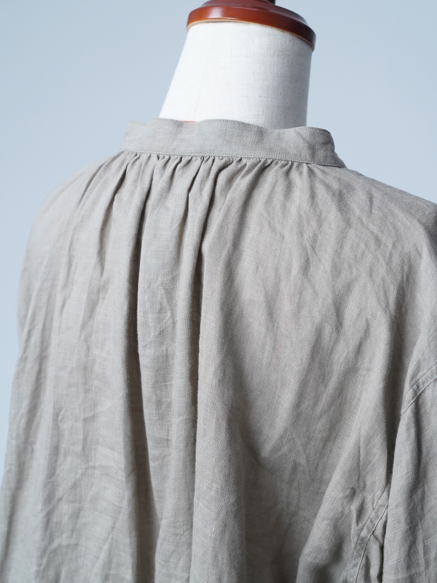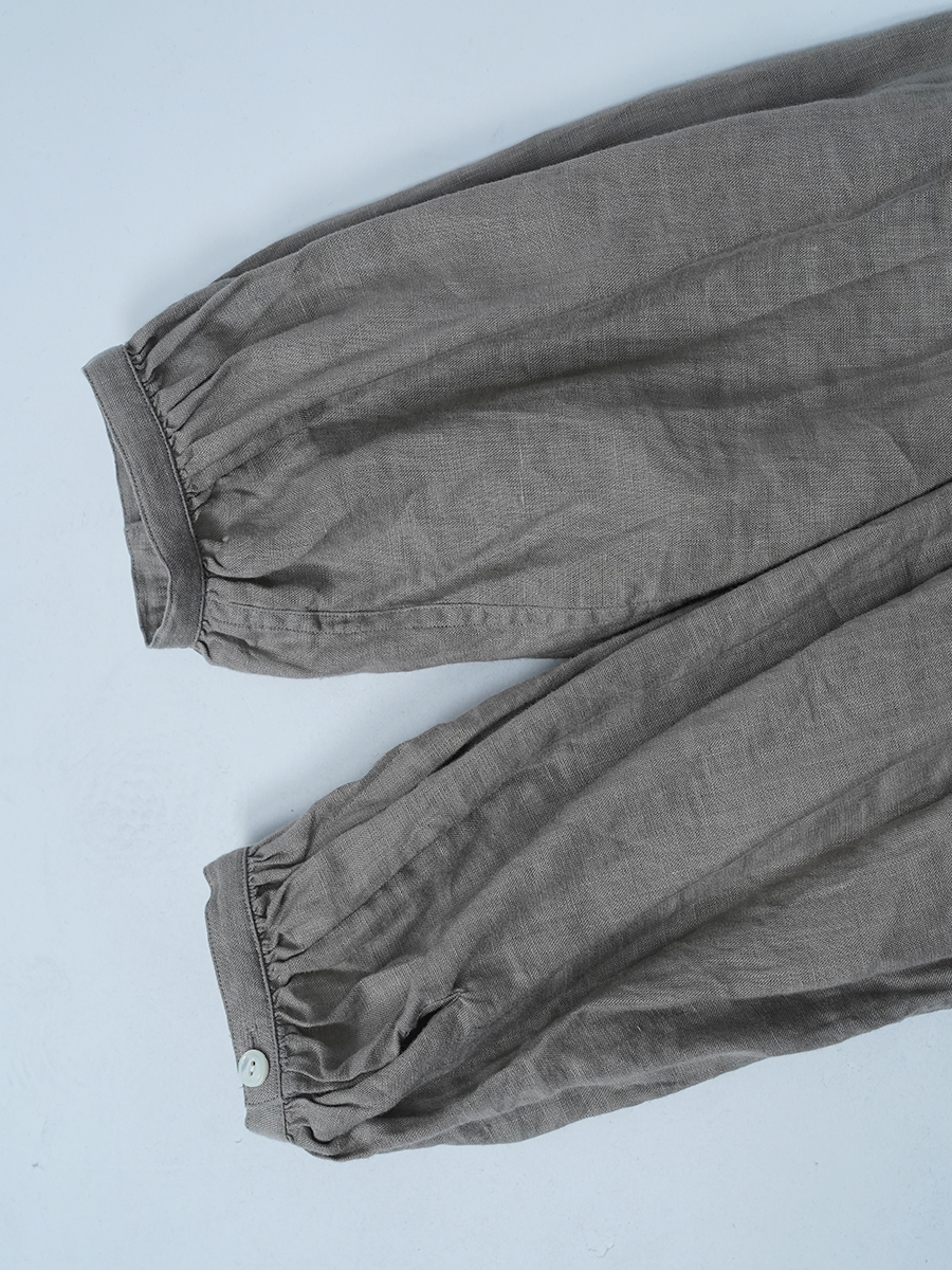 - ※生地工場の生産時期によって色味の濃淡が出ることがございます。セットアップでの着用の場合はご相談下さい。カラーリネンは最初色落ちや生地の性質上、毛羽落ちがある場合がございます。落ち着くまで数回は単品でのお洗濯を。最初は水通しをおすすめします。表面の毛羽立ちがとれて、肌への刺激が極端に少なくなります。リネン特有のネップ、節がございます。