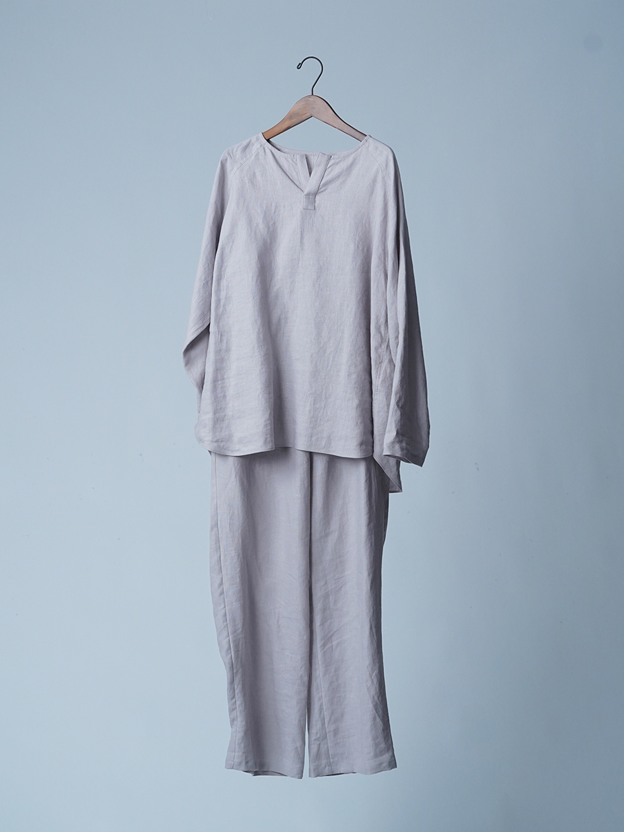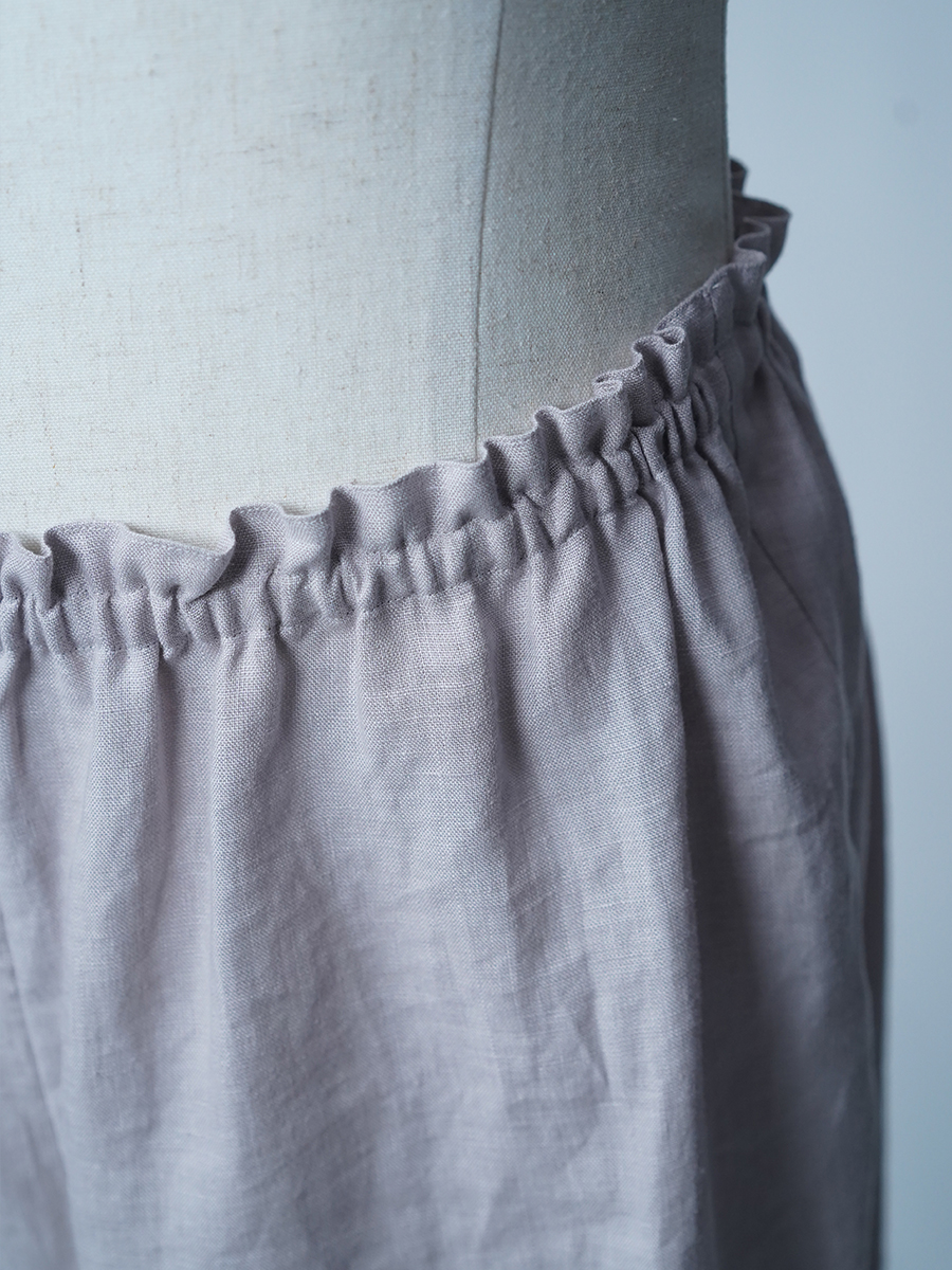 - ※生地工場の生産時期によって色味の濃淡が出ることがございます。セットアップでの着用の場合はご相談下さい。カラーリネンは最初色落ちや生地の性質上、毛羽落ちがある場合がございます。落ち着くまで数回は単品でのお洗濯を。最初は水通しをおすすめします。表面の毛羽立ちがとれて、肌への刺激が極端に少なくなります。リネン特有のネップ、節がございます。