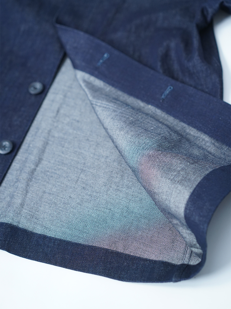 - ※生地工場の生産時期によって色味の濃淡が出ることがございます。セットアップでの着用の場合はご相談下さい。カラーリネンは最初色落ちや生地の性質上、毛羽落ちがある場合がございます。落ち着くまで数回は単品でのお洗濯を。最初は水通しをおすすめします。表面の毛羽立ちがとれて、肌への刺激が極端に少なくなります。リネン特有のネップ、節がございます。